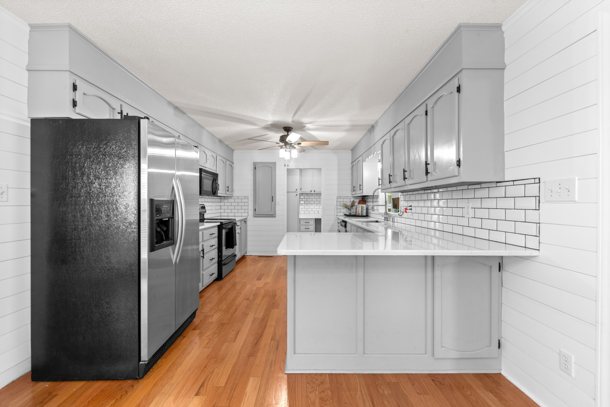 - AppliancesBuilt-In Electric Range, Dishwasher, Microwave, Refrigerator, Stainless Steel Appliance(s)