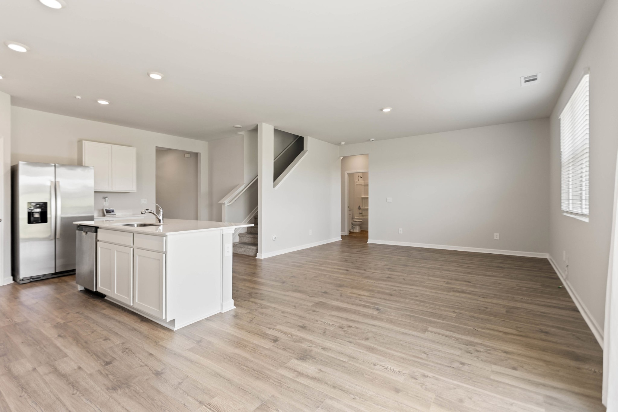 Beautiful 5-bedroom, 3 full-bathroom home built in 2024 and move-in ready! This house is situated in a quiet cul-de-sac with no back neighbors!! It features an open floor plan, with quartz countertops, a gas range, and a large kitchen island. On the main level, you'll find one bedroom and a full bathroom, making it perfect for guests. There is also a dedicated office space, ideal for remote work or studying. The upper level includes a loft area that offers a versatile space for leisure activities or play. The spacious primary suite features a private bathroom with a walk-in closet, along with three additional bedrooms and another full bathroom. Upgrades throughout the home include luxury vinyl plank flooring, window blinds, and a security system. This property is located in a great community with great amenities! Residents get to enjoy a pool, a playground for the kids, and walking trails!