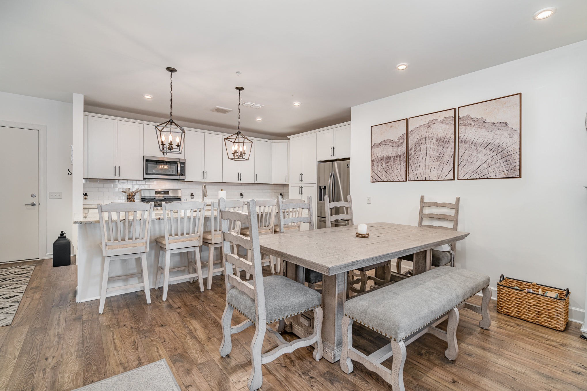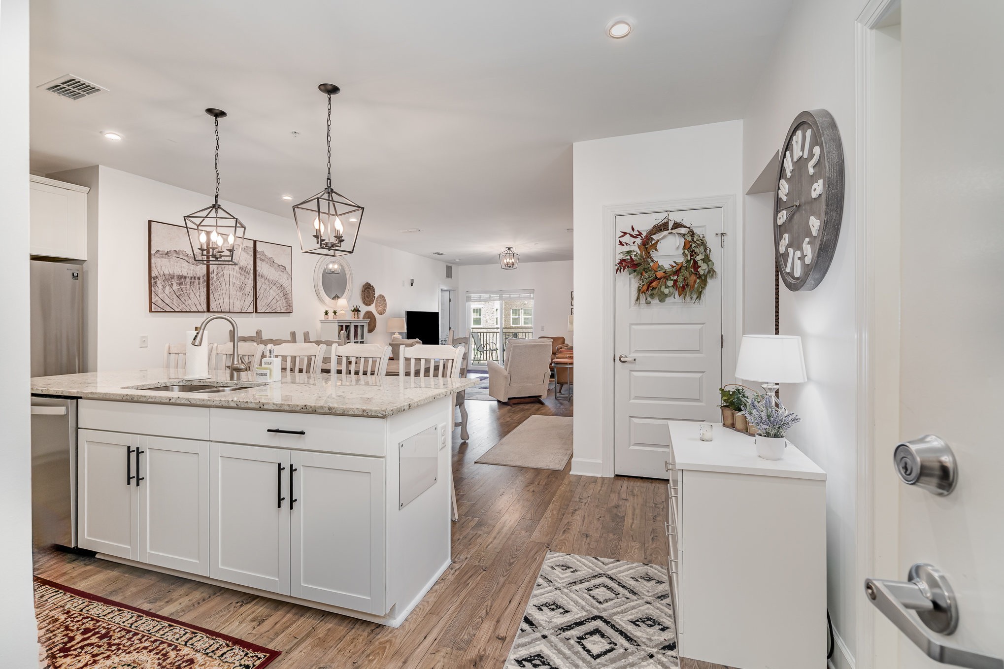 *Buyer Incentives: Washer, Dryer, Fridge, and Microwave will remain + $3,500 Lender Credit + Free Appraisal!* The Gathering is for adults 55+ with NO stairs to get to unit is perfect blend of style, convenience, and low-maintenance living. This beautifully designed 2 bed / 2 bath condo offers an open concept layout. Enjoy a sizable kitchen with extended island, granite countertops, and stainless steel appliances! Hardwood floors flow throughout the unit adding extra warmth. This condo has an additional office space with a built-in desk. This unit has ample storage for easy organization. Unit features one of the largest garages in the community. This move-in-ready condo is part of a thoughtfully designed community offering an array of amenities to enrich your lifestyle. Inside the community, residents enjoy access to inviting common areas, a modern mailroom, a stylish lobby, and a versatile conference/shared space complete with private offices—perfect for social or professional gatherings. An outdoor entertainment area with a grilling station provides an ideal setting for hosting friends and neighbors. Additional conveniences include 24-hour secure building access and daily valet trash removal, ensuring comfort, security, and ease every day. The Gathering is across from Hendersonville Greenway including walking trails and a desirable park. This 55 plus community is perfect for active adults. Explore a wealth of shopping, dining, and entertainment options just steps from your door.