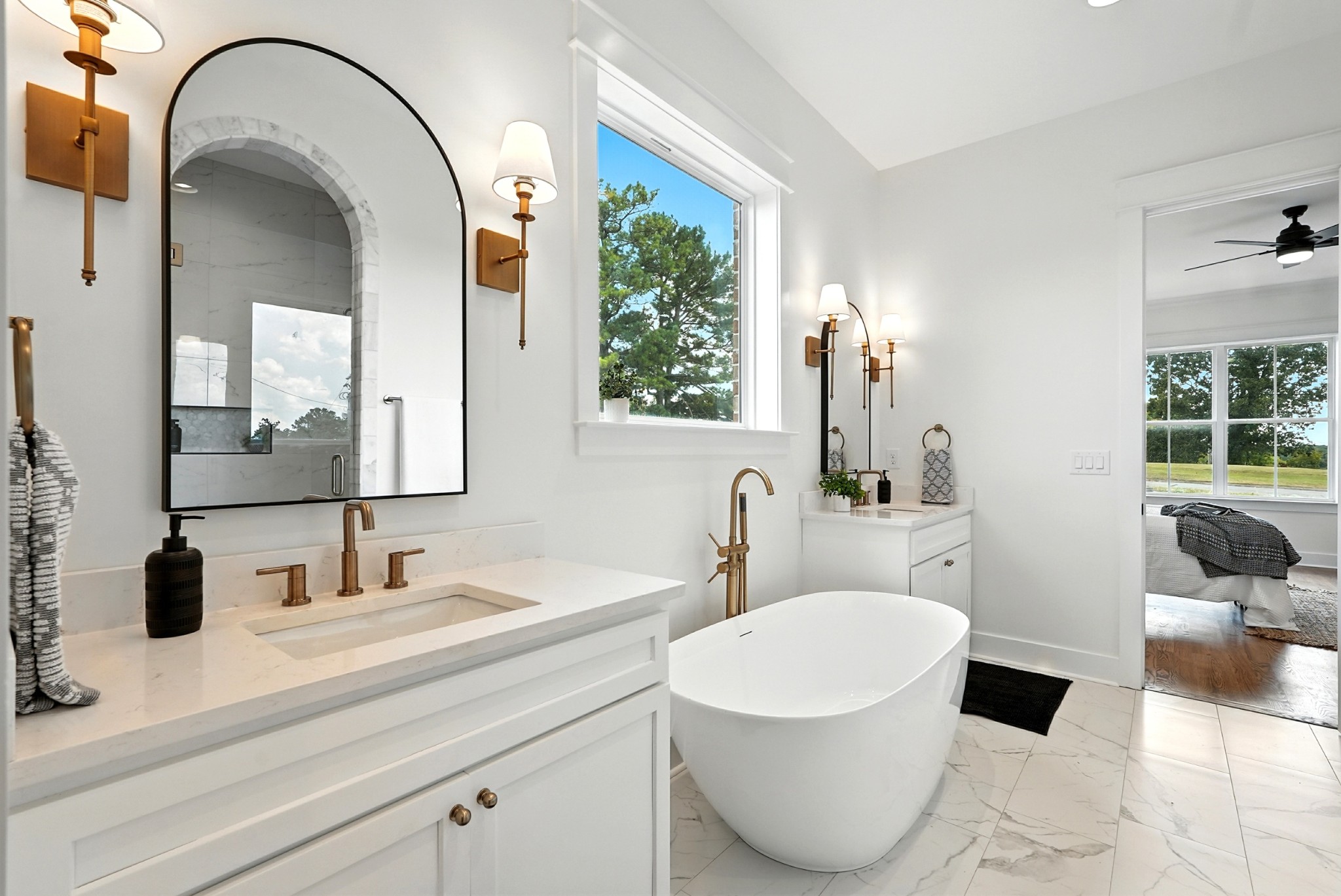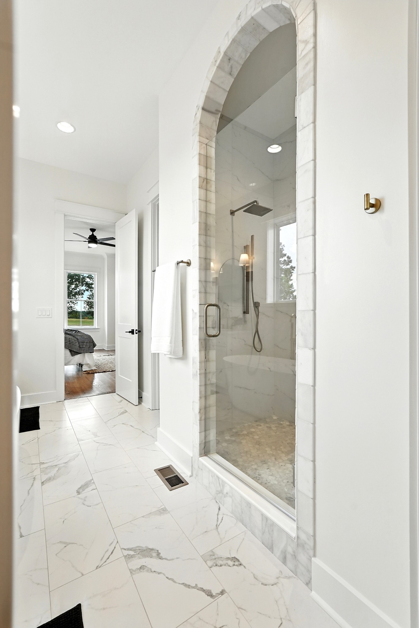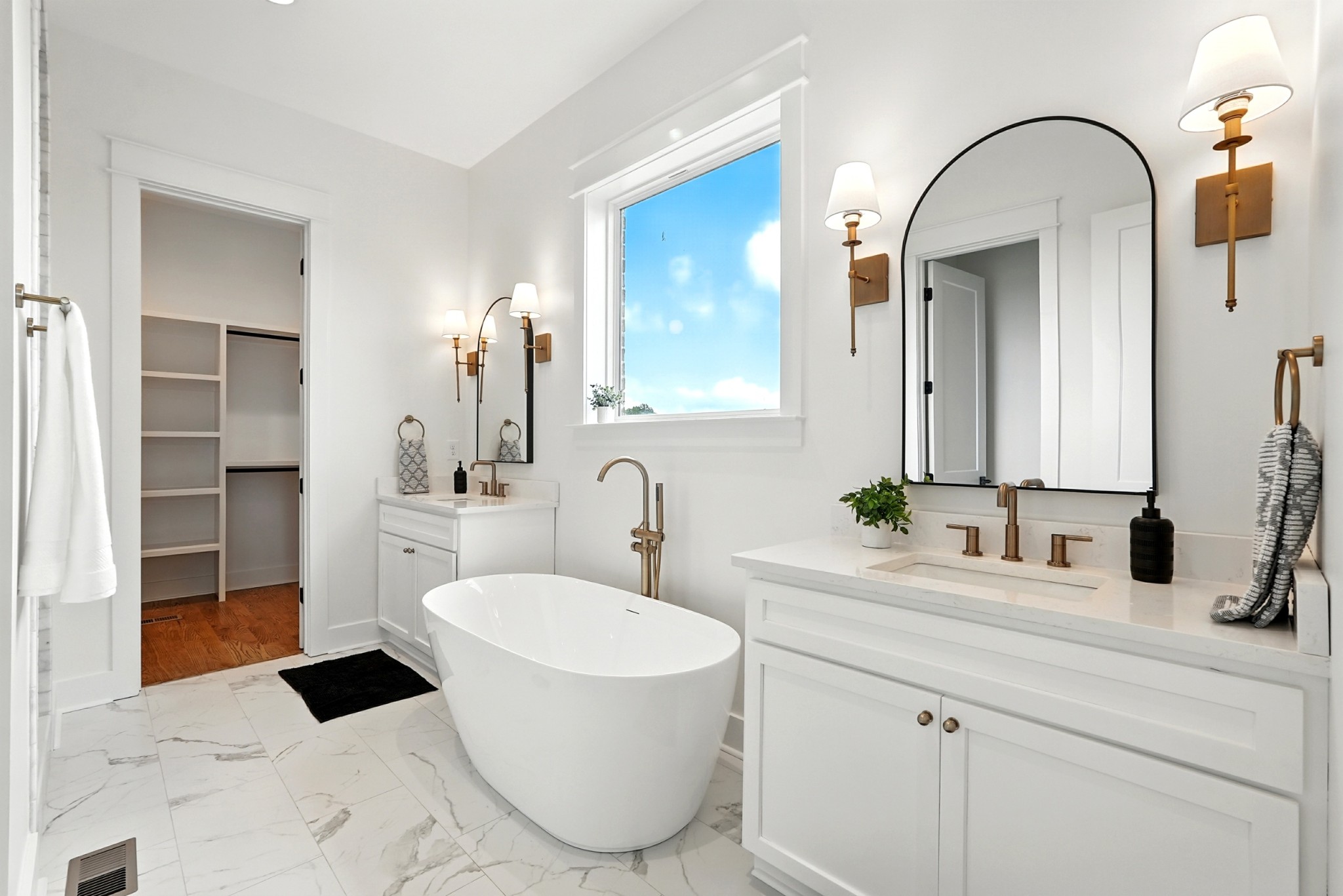 IF EVER YOU WANTED IT ALL~~~THIS HOME HAS IT! New Construction in a GATED SUBDIVISION backing up to Henslee Park~~~ miles of walking trails, splash pad and all the sights and sounds of nature within walking distance of downtown! This home feels more spacious because the park functions like an extension of the yard, green space without upkeep * this home has a timeless and classic all brick exterior and winding aggregate driveway * a CHEF'S KITCHEN with 48" commercial stove top and oven, custom hood, pot filler, quartz counter tops, custom cabinets, large island, built in island microwave, tile and a straight herringbone tile backsplash, glass front cabinet doors and a butler's pantry with shelving and cabinet storage * joining the chef's kitchen is a DINING ROOM with tall COFFERED CEILINGS and beautiful recessed panel wainscoting* PRIVATE OFFICE with glass pane doors * OPEN FLOOR PLAN LIVING SPACE with LEATHERED GRANITE FIREPLACE SURROUND * the PRIMARY SUITE has a SPA INSPIRED BATHROOM with gold and black hardware, SCONCE LIGHTING, double vanitites, free standing tub and an arched shower with marble entry tile and ceramic tile interior, seamless glass door and a rainfall shower head, private toilet closet and LARGE WALK-IN CLOSET ~wood shelving * solid stair newel posts, plant ledge window sills, TANKLESS WATER HEATER~~~EVERYTHING YOU NEED ON THE GROUND LEVEL but so much FLEX SPACE UPSTAIRS AND DOWNSTAIRS * OVER 1110 SQ FT OF STORAGE/STORM SHELTER SPACE