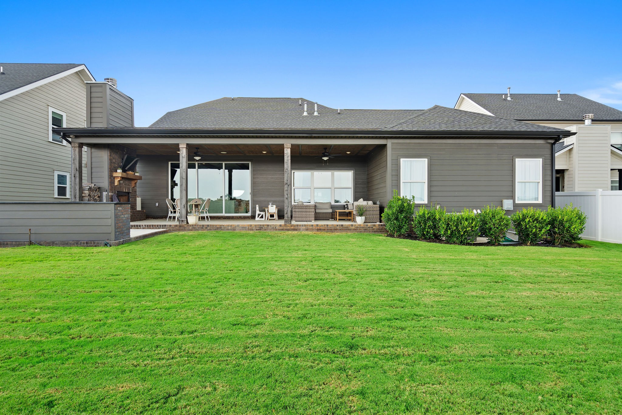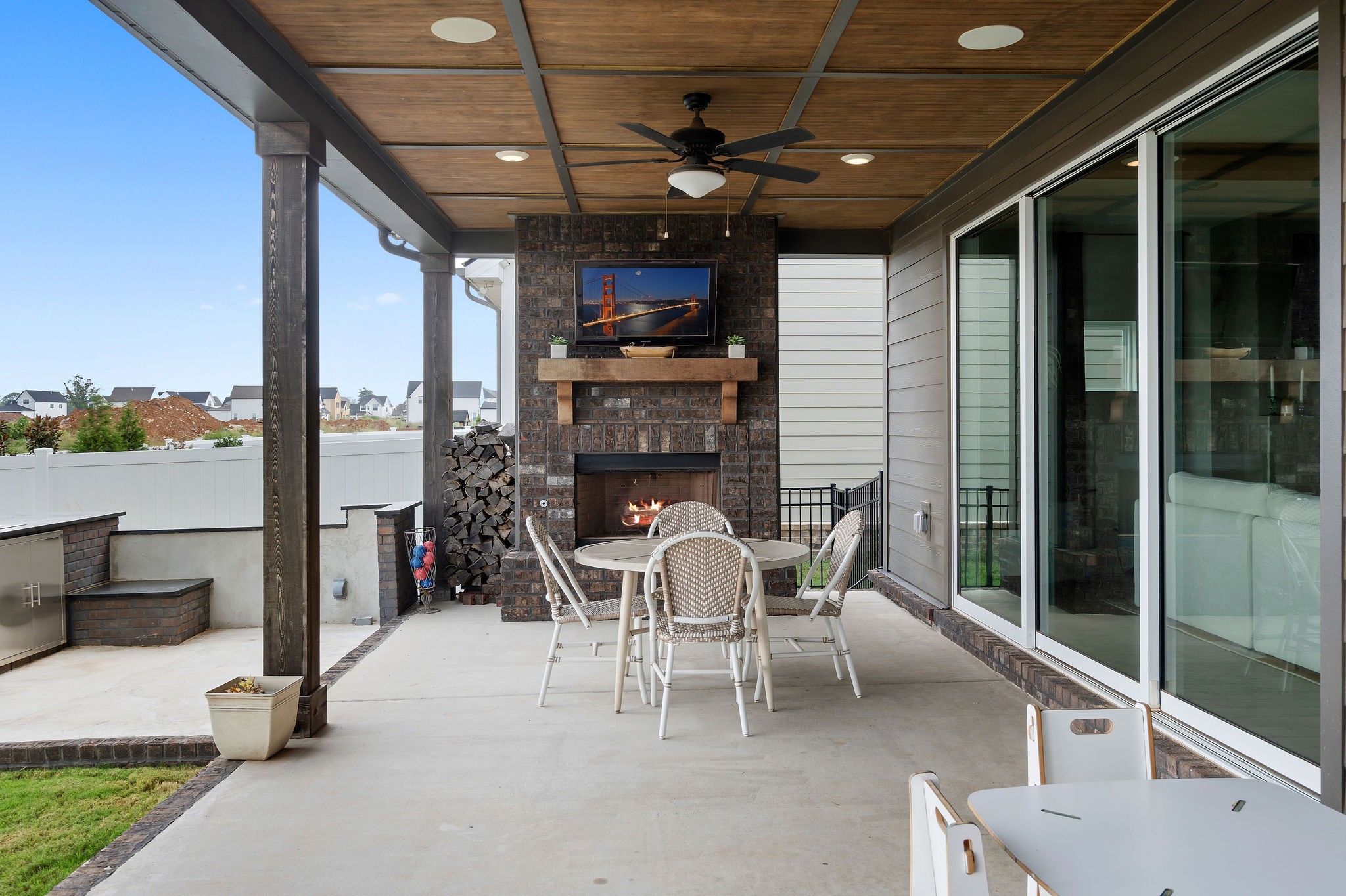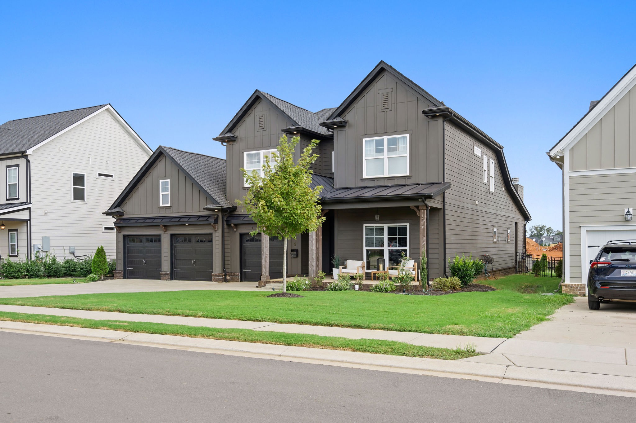 Luxury Fully-furnished Executive Home in Shelton Square! This stunning home offers everything you need for comfort and entertainment in a walkable neighborhood with top-tier amenities, including a resort-style pool, clubhouse, gym, playground, dog park, basketball court, fishing pond, and walking trails. The open layout features triple sliding doors that connect seamlessly to a spacious back patio with a wood-burning fireplace, outdoor grilling kitchen, and upgraded features worth over $100,000. The 3-car garage includes a workshop and refrigerator for added convenience. The outdoor space is perfect for entertaining, with a fully-fenced yard, kegerator, expanded covered deck, TV, and seating area. The primary suite delights with coffered ceilings, a freestanding tub, and his-and-hers closets. The formal entry includes a powder room, while the bourbon room/flex space downstairs can serve as a 5th bedroom. A gas fireplace, cedar beam ceiling, and large glass sliders create an inviting atmosphere for gatherings. Upstairs, you'll find 3 bedrooms (one with an ensuite), a large bonus room, and walk-in attic storage. Conveniently located near Franklin, Nashville, and downtown, this home combines luxury and practicality in one incredible package.