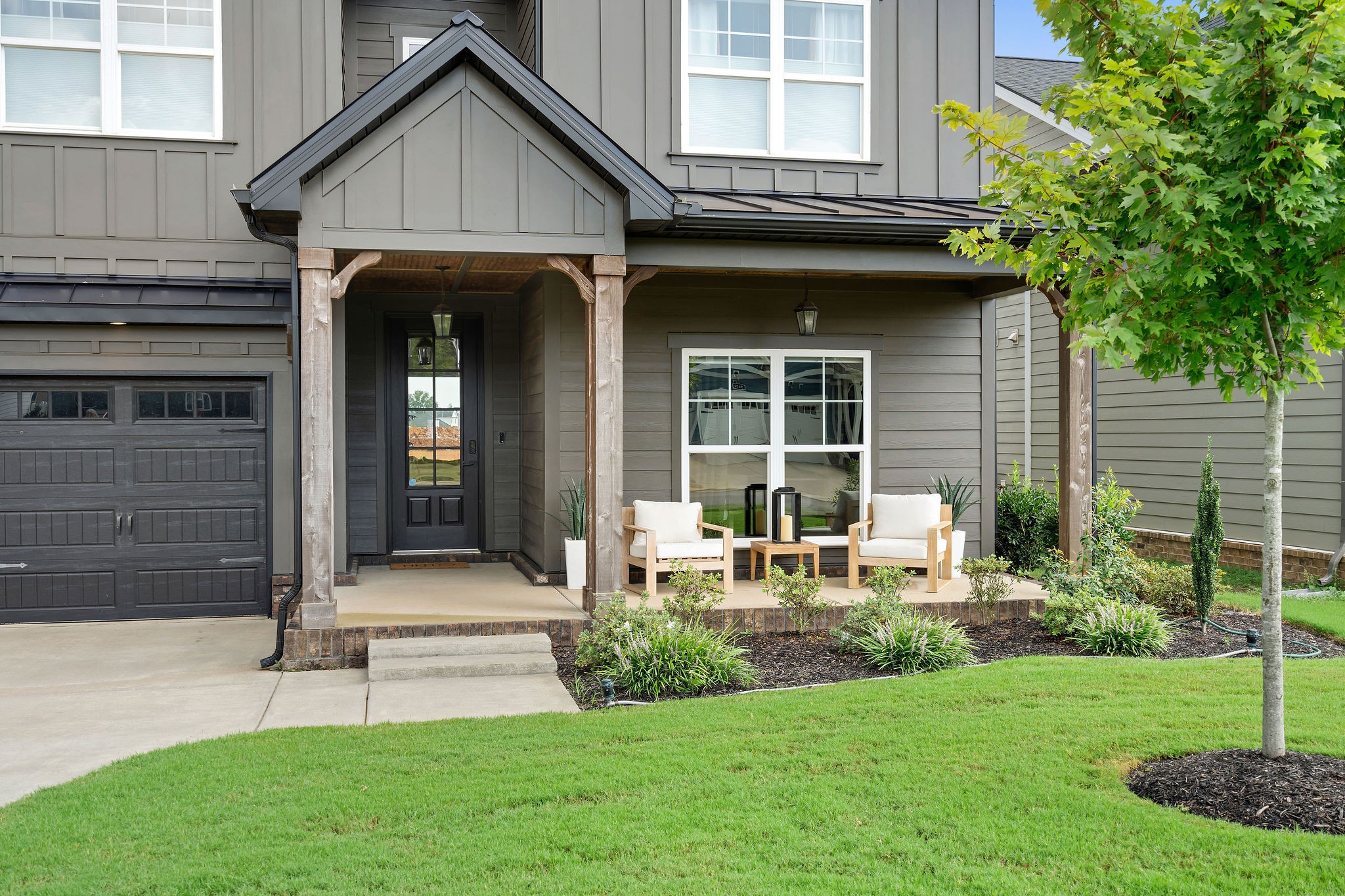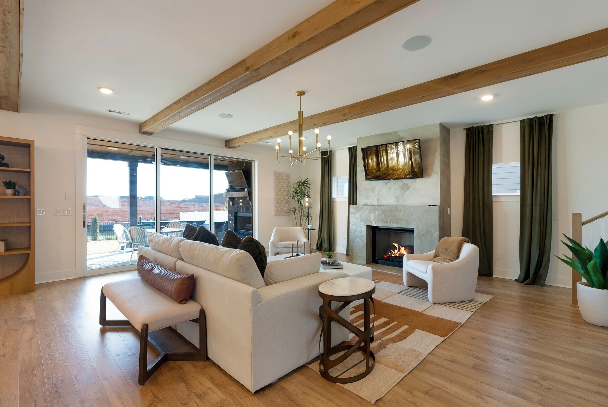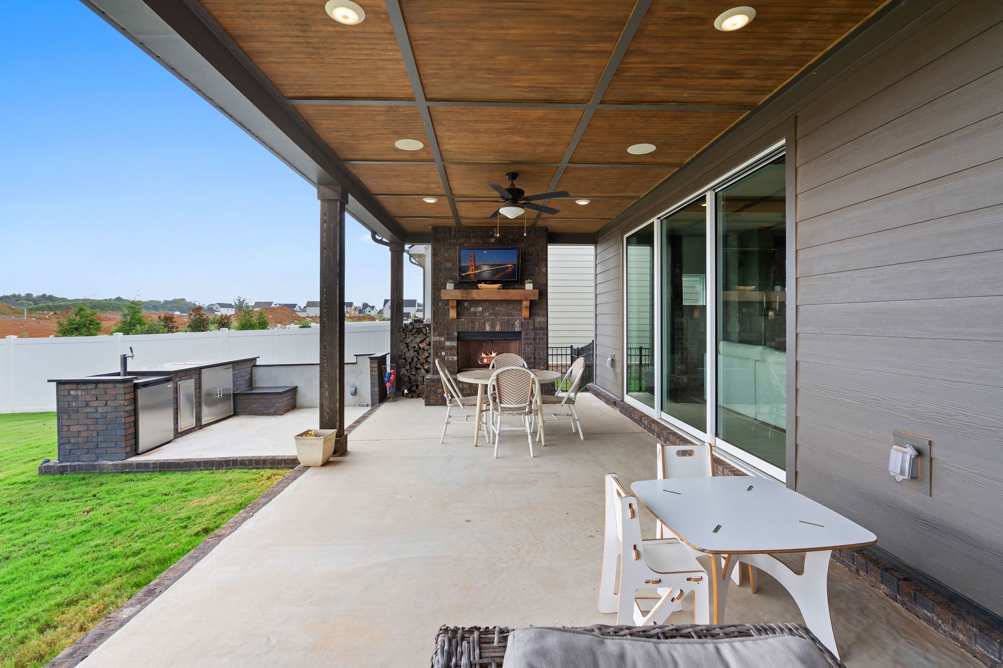 Luxury Fully-furnished Executive Home in Shelton Square! This stunning home offers everything you need for comfort and entertainment in a walkable neighborhood with top-tier amenities, including a resort-style pool, clubhouse, gym, playground, dog park, basketball court, fishing pond, and walking trails. The open layout features triple sliding doors that connect seamlessly to a spacious back patio with a wood-burning fireplace, outdoor grilling kitchen, and upgraded features worth over $100,000. The 3-car garage includes a workshop and refrigerator for added convenience. The outdoor space is perfect for entertaining, with a fully-fenced yard, kegerator, expanded covered deck, TV, and seating area. The primary suite delights with coffered ceilings, a freestanding tub, and his-and-hers closets. The formal entry includes a powder room, while the bourbon room/flex space downstairs can serve as a 5th bedroom. A gas fireplace, cedar beam ceiling, and large glass sliders create an inviting atmosphere for gatherings. Upstairs, you'll find 3 bedrooms (one with an ensuite), a large bonus room, and walk-in attic storage. Conveniently located near Franklin, Nashville, and downtown, this home combines luxury and practicality in one incredible package.