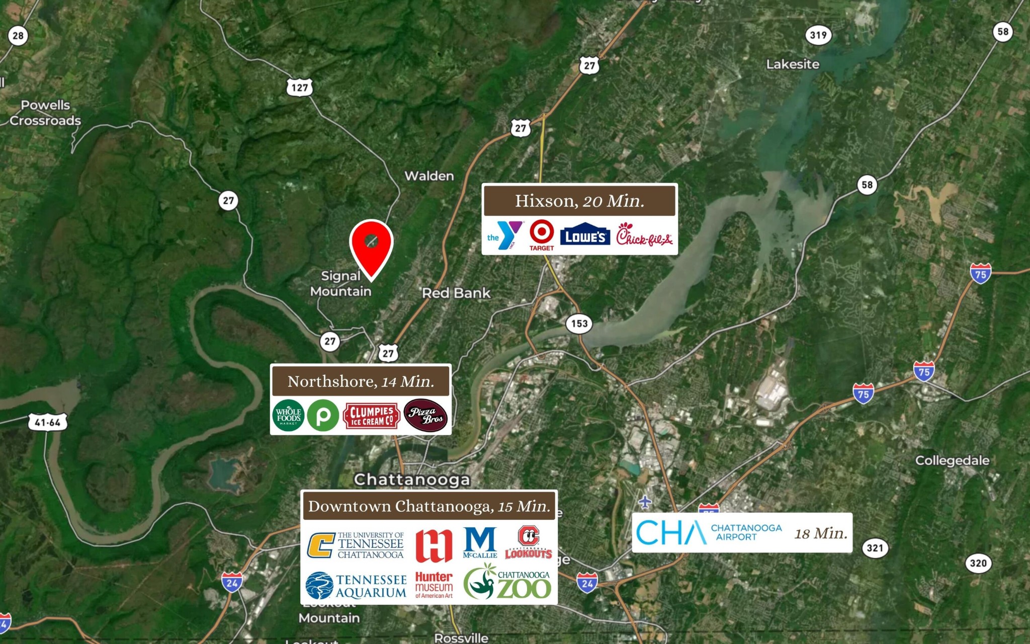 WATCH VIDEO: https://bit.ly/browview - Beautiful 4 bedroom mountain home with exceptional OUTDOOR LIVING! Brow View Neighborhood is a boutique, cul-de-sac community nestled between Taft Highway and the Signal Mountain brow and within 15 minutes of downtown Chattanooga. Enjoy a dramatic entry with spiral staircase, vaulted ceilings, hardwood floors, and abundant natural light through plantation shutters. HOME OFFICE is perfectly positioned for remote work, and the spacious dining room is prime for gatherings. The living room features large windows framing the backyard, built-in bookshelves, and cozy gas log FIREPLACE. The chef's kitchen boasts granite countertops, custom cabinetry, cabinet-depth SUB-ZERO refrigerator, Bosch gas range, and GE Profile stainless double oven, microwave, and dishwasher. An adjacent breakfast nook and laundry room add daily functionality. MAIN LEVEL PRIMARY suite is a peaceful retreat with a jacuzzi tub, separate shower, double vanities, and oversized walk-in closet. Upstairs are 3 additional bedrooms (two with walk-in closets), 2 full baths, versatile BONUS ROOM, and walk-out attic for storage or expansion. Additional features include a tankless gas water heater and whole-house water filter/softener. Outside, a newly renovated flagstone patio offers wood-burning and gas firepits, updated landscaping with irrigation, elegant lighting, and hookups for gas, power, and water. Walk to popular Pruett's Market, shops, restaurants, and the athletic complex. Award-winning schools, city services, and easy access to The W Road and US 127 for a quick 15-minute drive to downtown Chattanooga. Schedule your tour today!