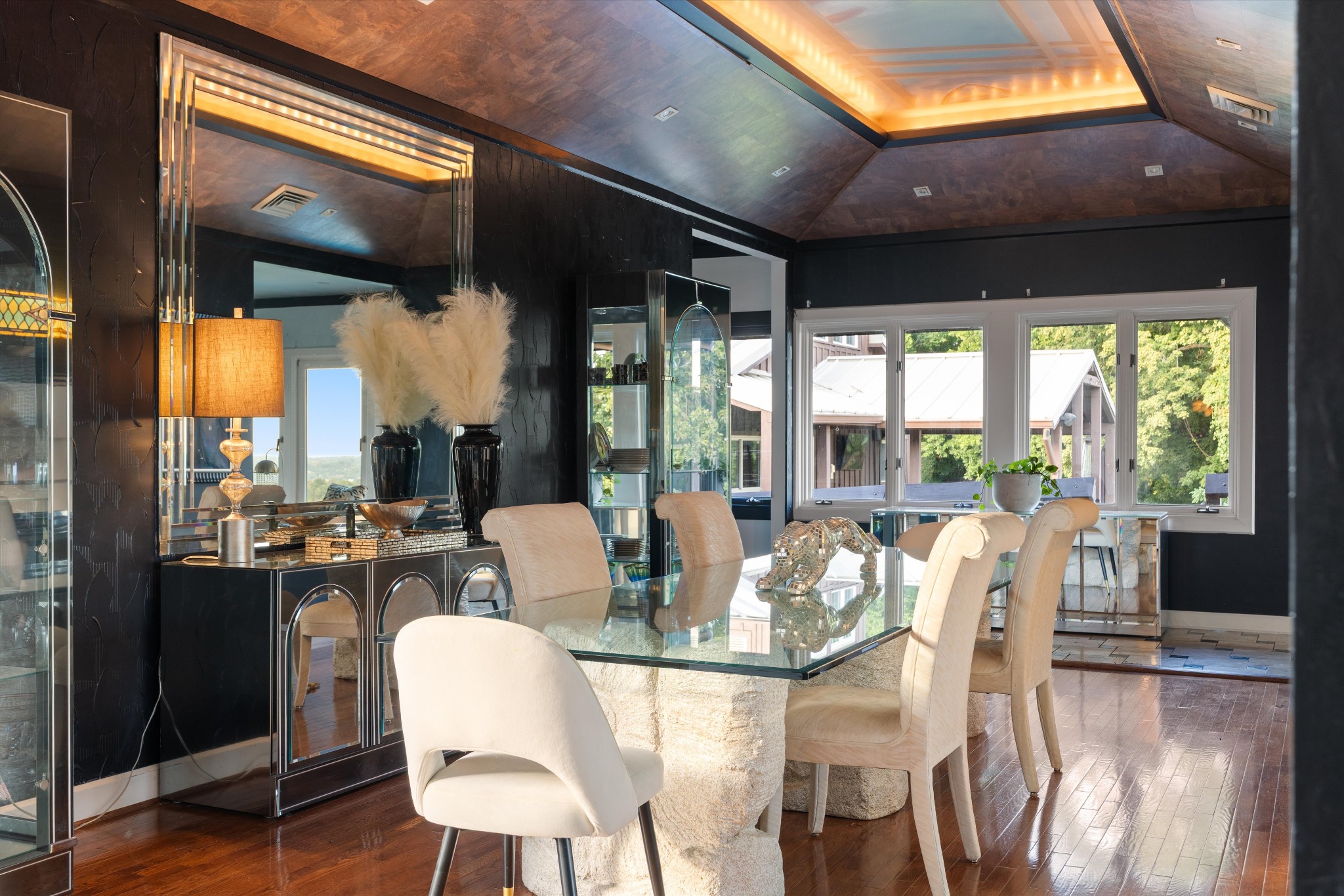 With solid bones and plenty of space, its current Contemporary architecture could lend itself to many directions. Think…a Mid Century Modern masterpiece with walls of glass? Take a side-by-side or put on some hiking shoes and explore the wooded property on its cut trails. Relax at the pool, entertain under the stars, and make an organic garden; the opportunities are endless.
