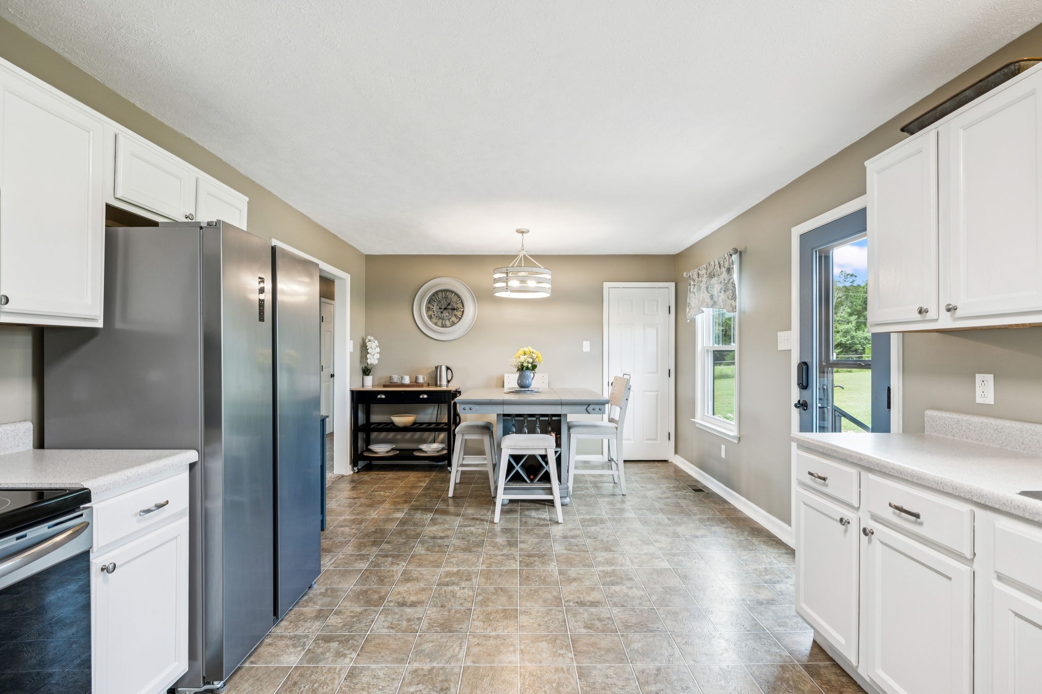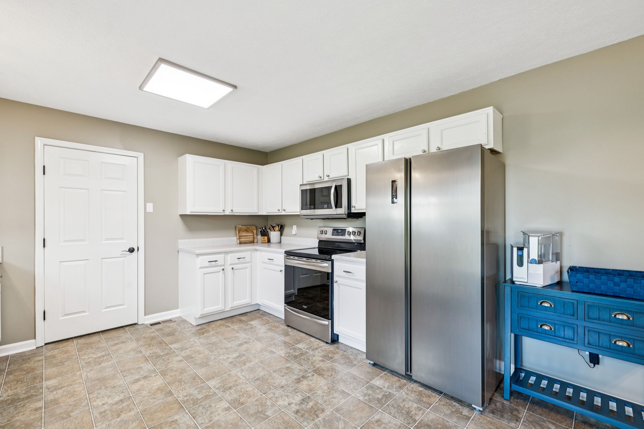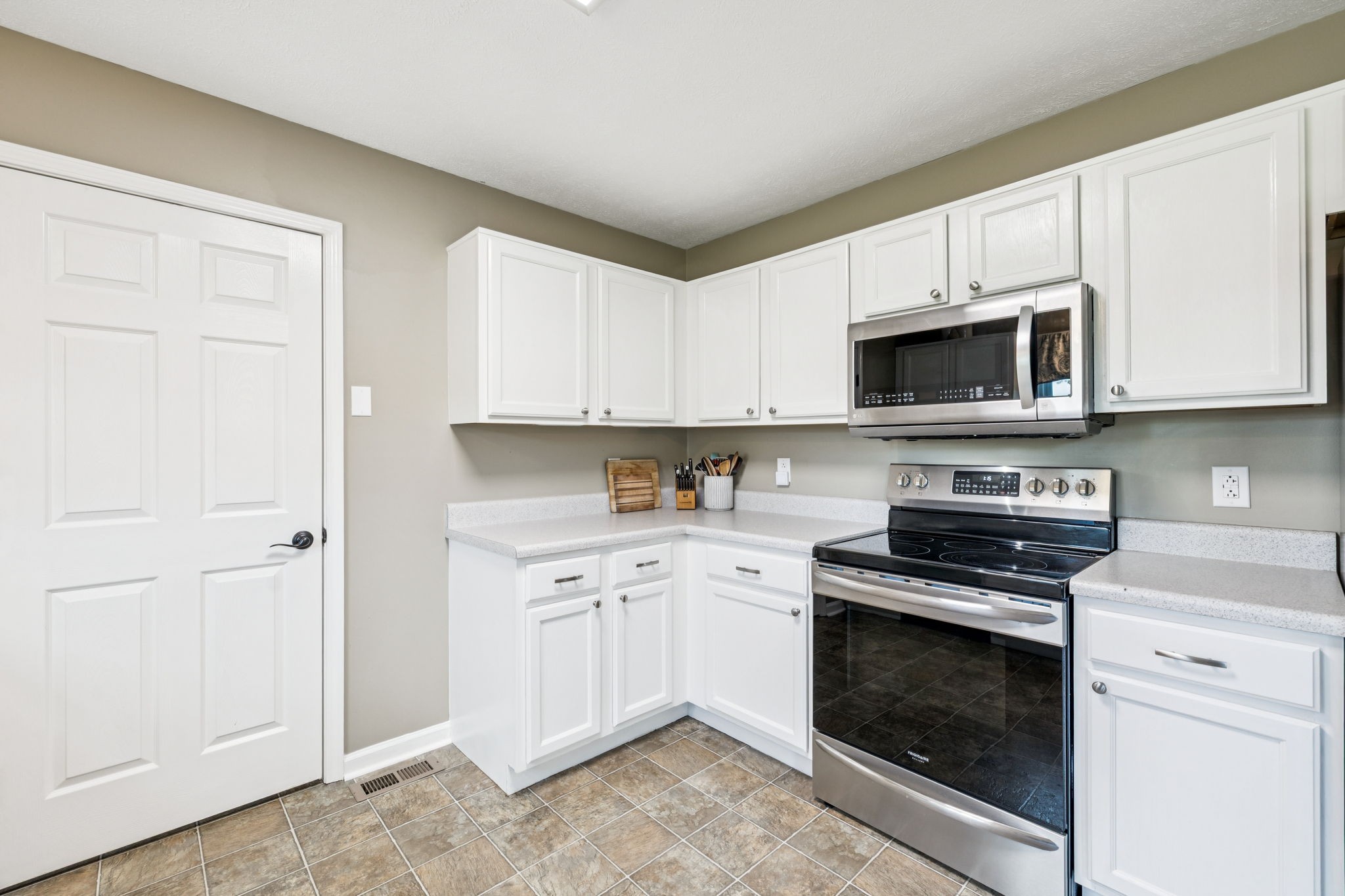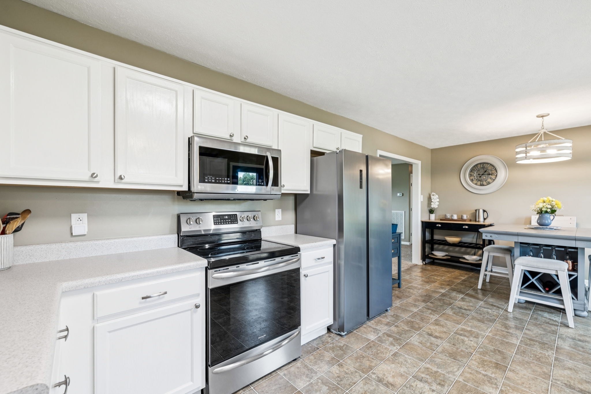 - AppliancesBuilt-In Electric Range, Dishwasher, Microwave, Refrigerator, Stainless Steel Appliance(s)
