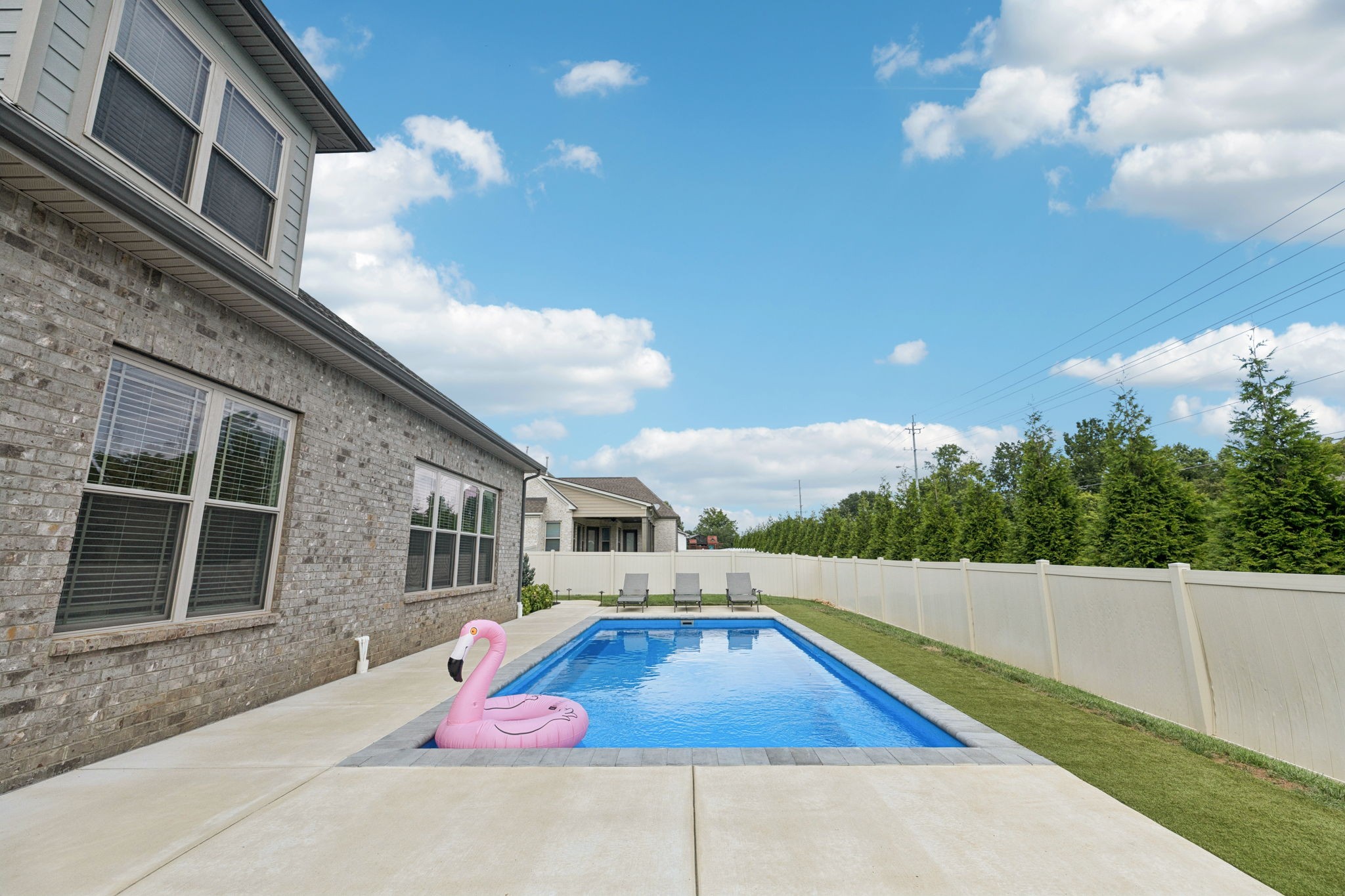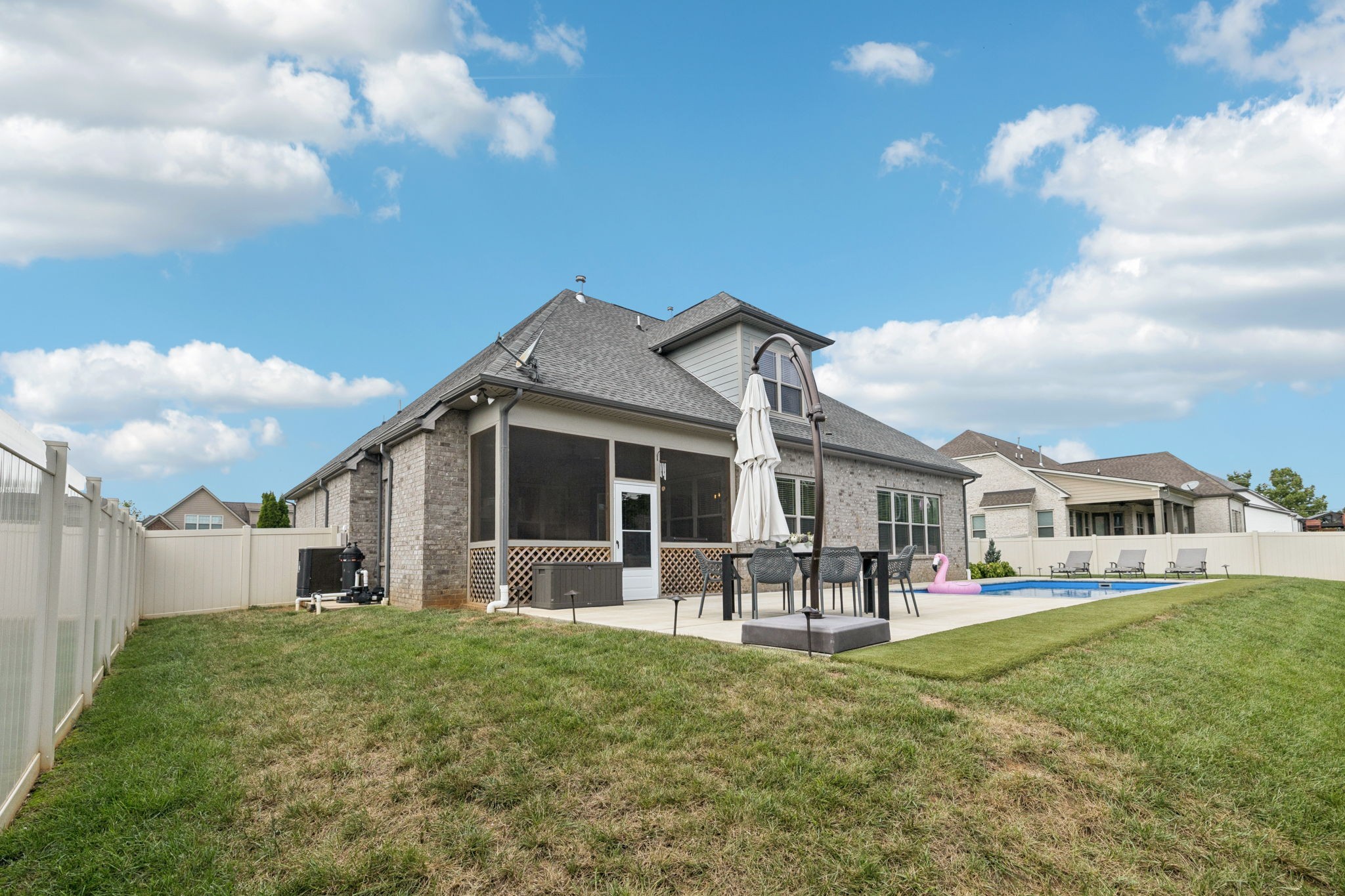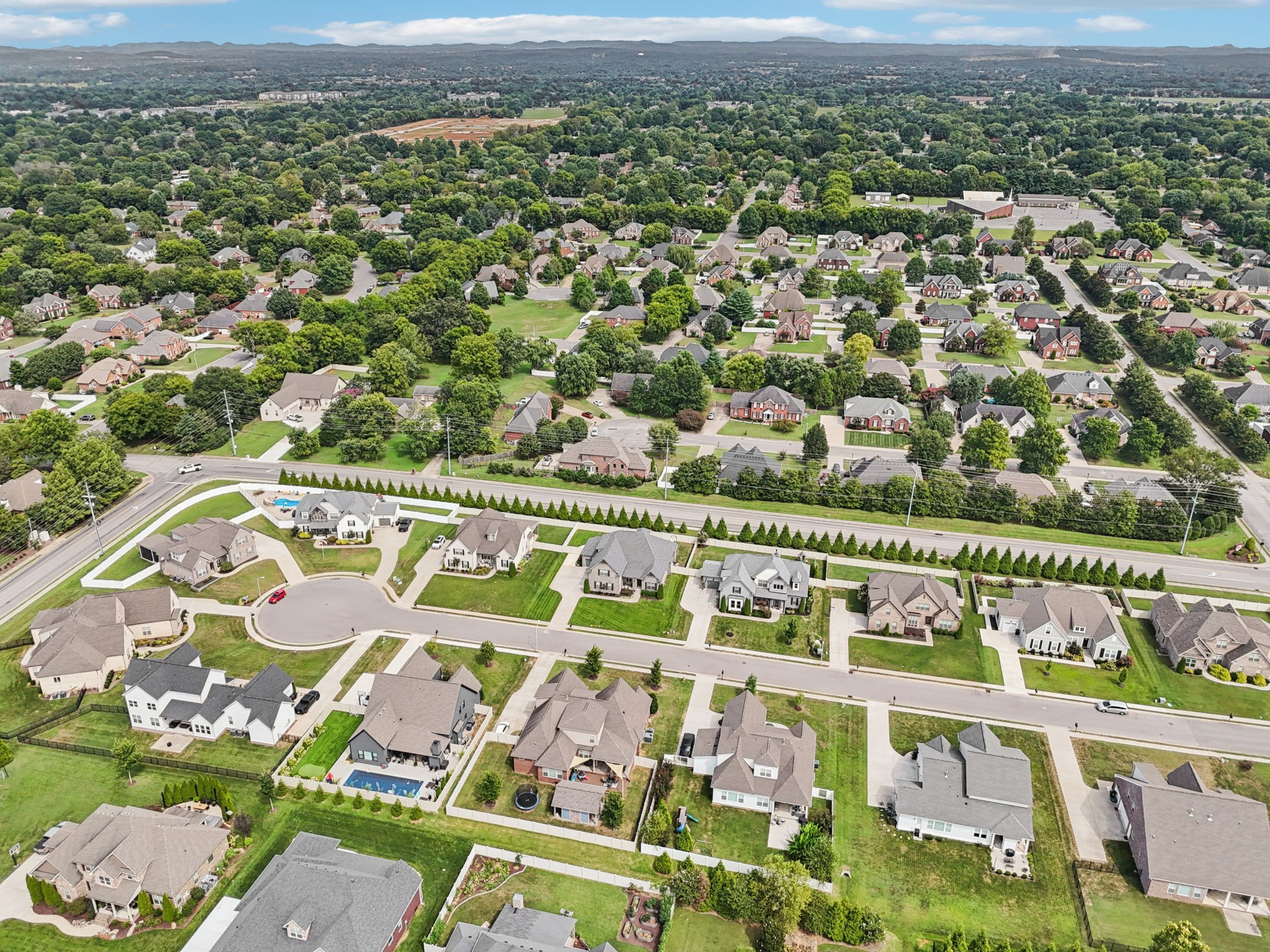 Come see this all-brick 2019 home in Murfreesboro’s desirable Wynthrope Hall community. This 4-bedroom, 4-bath residence offers nearly 3,700 sq ft of thoughtfully designed living space with timeless finishes and modern upgrades. The gourmet kitchen features GE Profile appliances, a gas range, and an open layout connecting to the spacious living room with gas fireplace. The laminate primary suite includes a spa-like bath with double vanities, separate tub and shower, and his/hers walk-in closets. Upstairs, two additional bedrooms and a large rec room provide flexible living space. Custom pully system drapes, soaring ceilings, and a Vivint smart home system controlling locks, HVAC, and cameras enhance both elegance and peace of mind. The highlight of this property is the private backyard retreat: a heated, app-controlled pool with multicolor LED lighting, a safety ledge perfect for keeping the kids safe, and professional landscaping with path and uplighting. A 6-zone irrigation system keeps the grounds pristine, while multiple covered porches and a screened back patio w/ a fireplace invite year-round outdoor enjoyment. Additional features include a 3-car side-entry garage, perfect for a home gym, energy-efficient systems, and community amenities like sidewalks and underground utilities. Located on a quiet cul-de-sac and zoned for highly desired schools, this home is a perfect blend of luxury, comfort, and lifestyle! Home is currently Pending w/ a home to sale contingency in place.