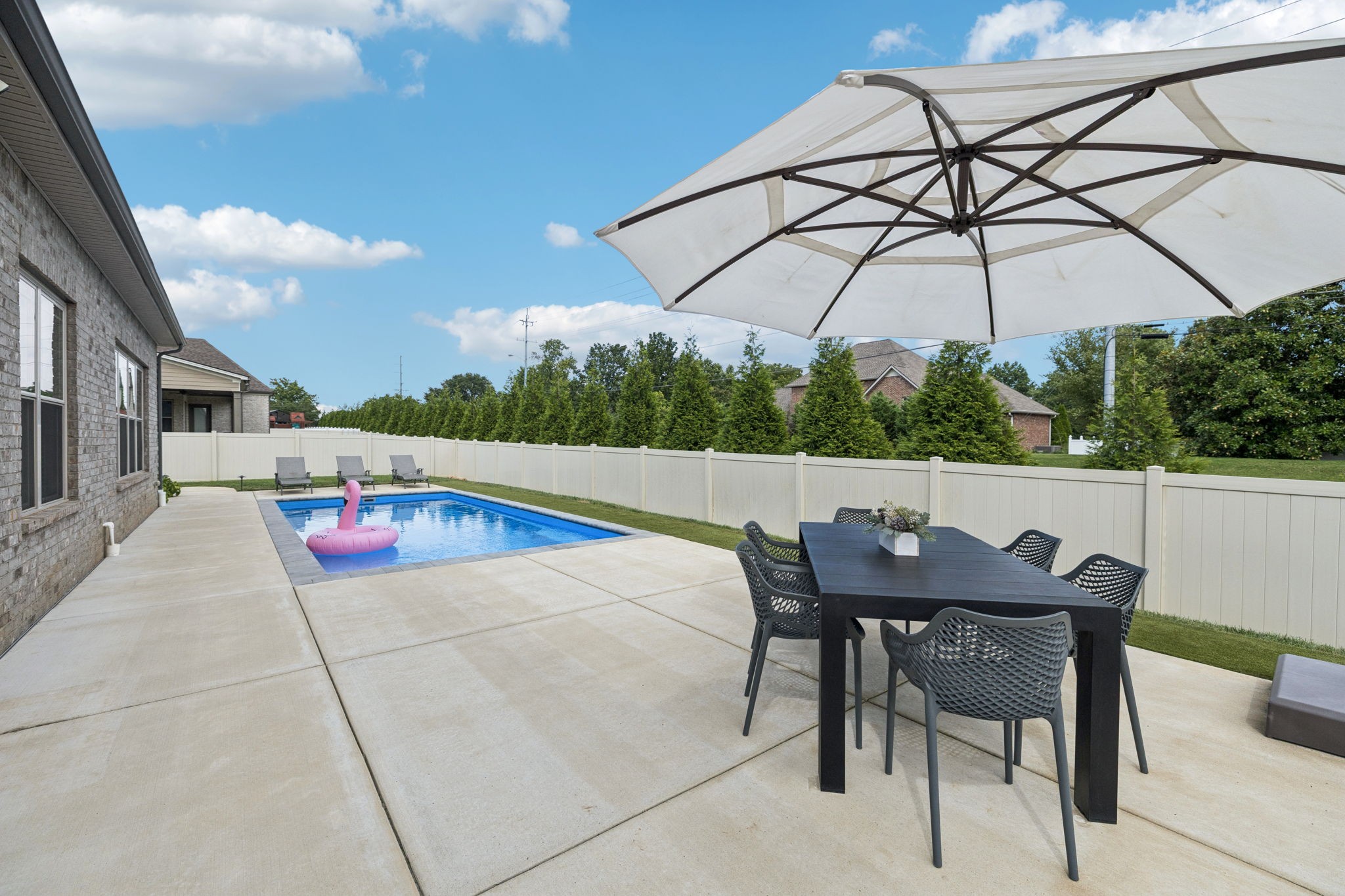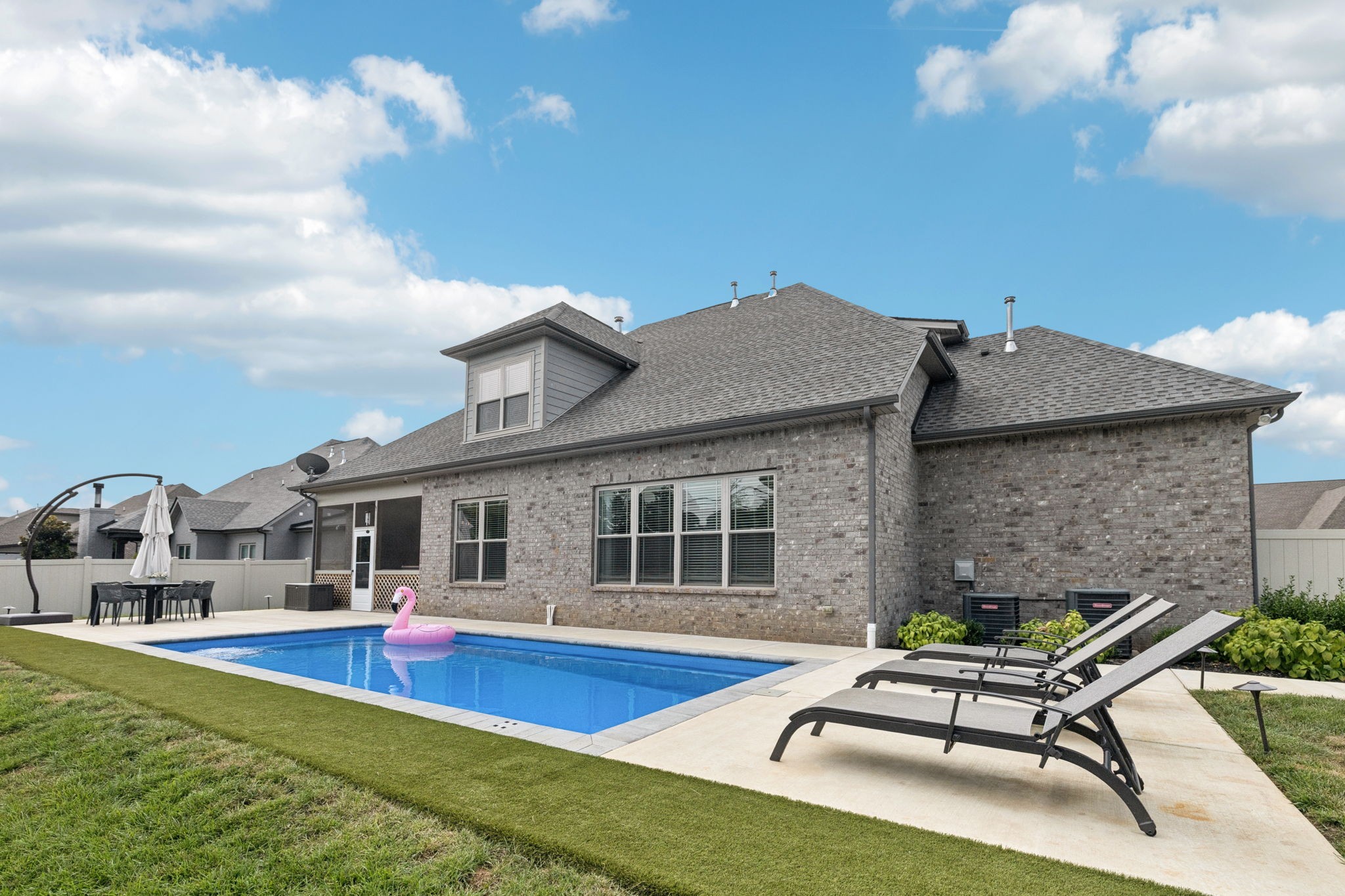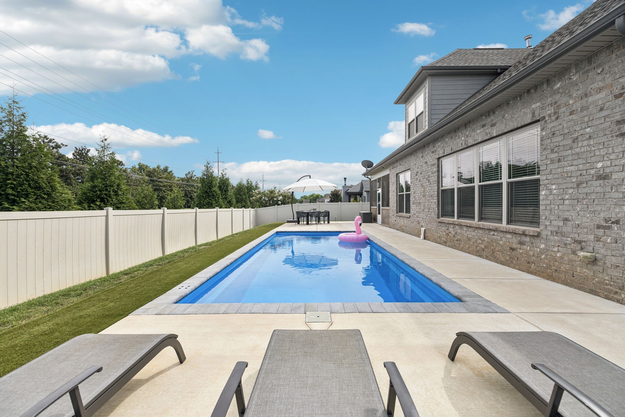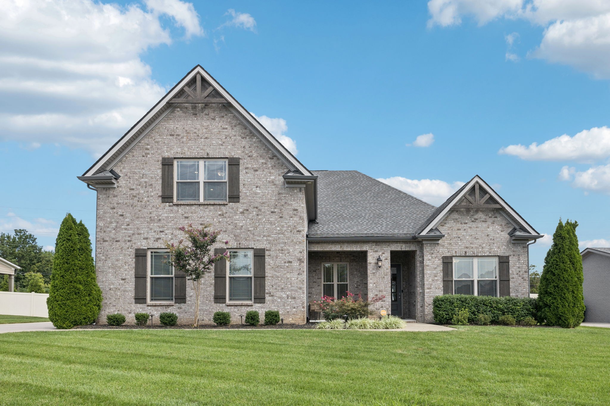 Come see this all-brick 2019 home in Murfreesboro’s desirable Wynthrope Hall community. This 4-bedroom, 4-bath residence offers nearly 3,700 sq ft of thoughtfully designed living space with timeless finishes and modern upgrades. The gourmet kitchen features GE Profile appliances, a gas range, and an open layout connecting to the spacious living room with gas fireplace. The laminate primary suite includes a spa-like bath with double vanities, separate tub and shower, and his/hers walk-in closets. Upstairs, two additional bedrooms and a large rec room provide flexible living space. Custom pully system drapes, soaring ceilings, and a Vivint smart home system controlling locks, HVAC, and cameras enhance both elegance and peace of mind. The highlight of this property is the private backyard retreat: a heated, app-controlled pool with multicolor LED lighting, a safety ledge perfect for keeping the kids safe, and professional landscaping with path and uplighting. A 6-zone irrigation system keeps the grounds pristine, while multiple covered porches and a screened back patio w/ a fireplace invite year-round outdoor enjoyment. Additional features include a 3-car side-entry garage, perfect for a home gym, energy-efficient systems, and community amenities like sidewalks and underground utilities. Located on a quiet cul-de-sac and zoned for highly desired schools, this home is a perfect blend of luxury, comfort, and lifestyle! Home is currently Pending w/ a home to sale contingency in place.