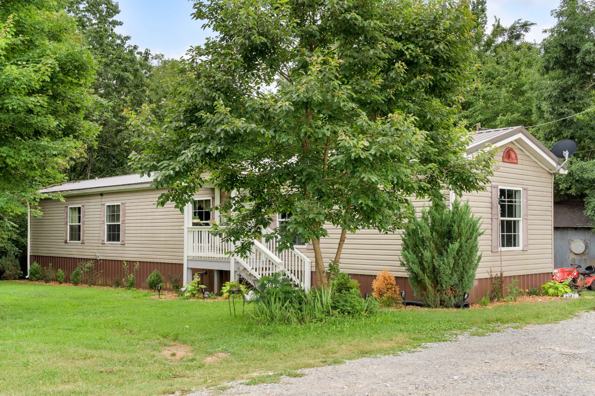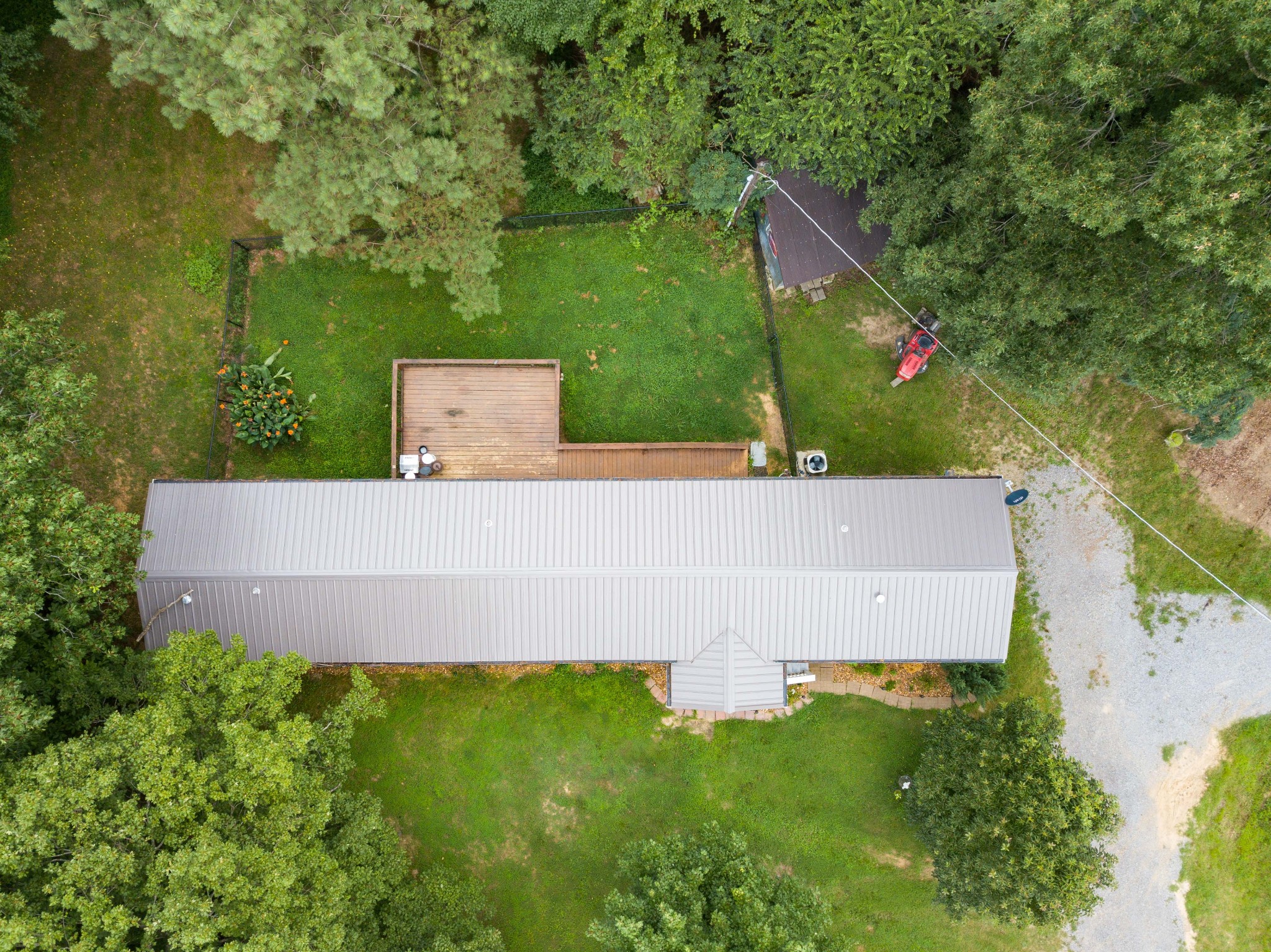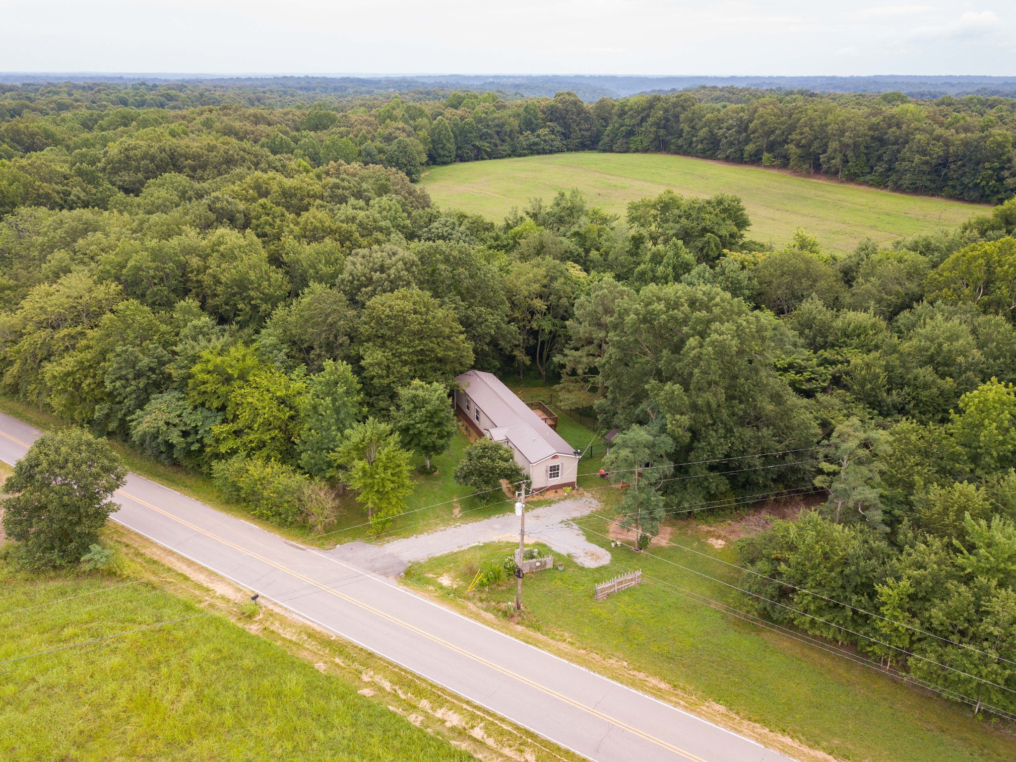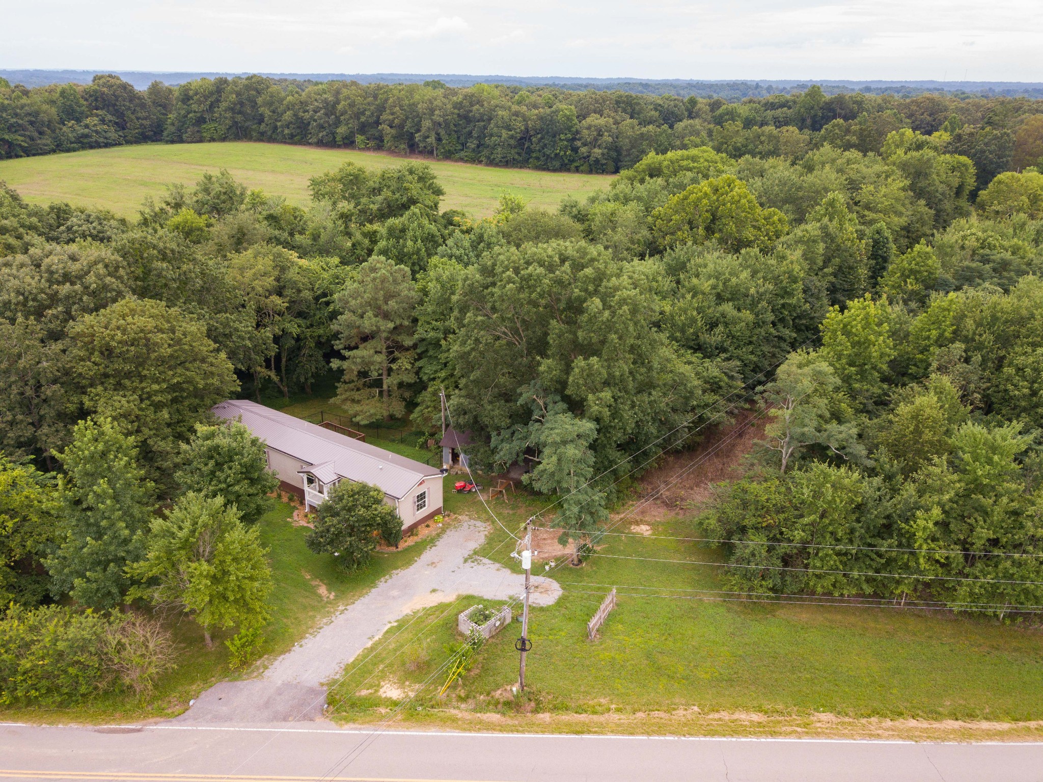 The land is complemented by a 3-bedroom, 2-bath mobile home with recent updates, including a new tin roof, heavy-duty gutters, and a large wheelchair-accessible back deck. Outbuildings include a multipurpose storage structure with carport/garage space and dual driveways for easy access.