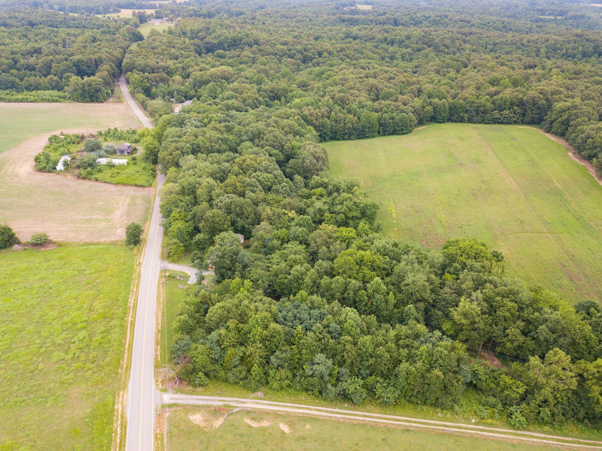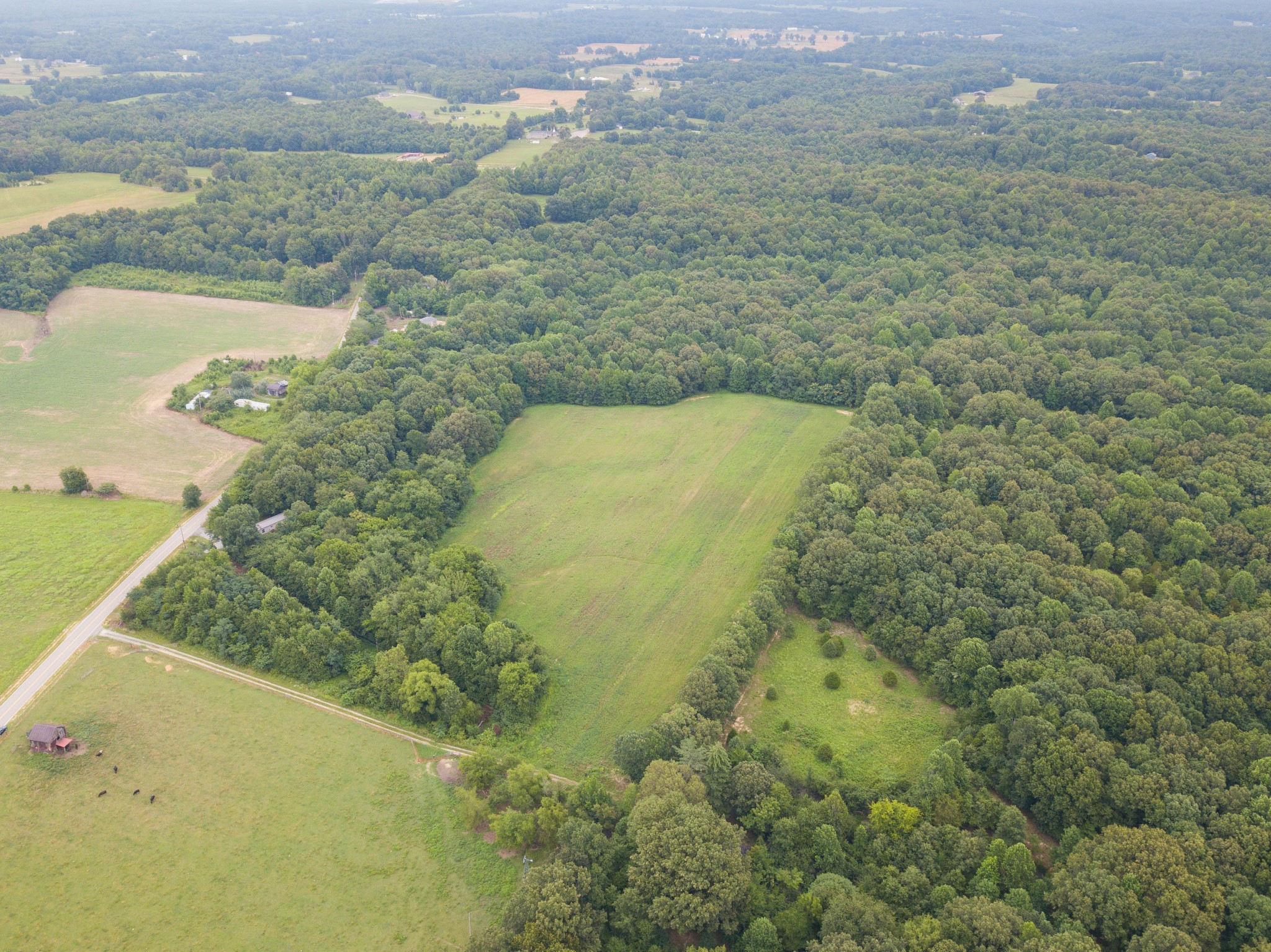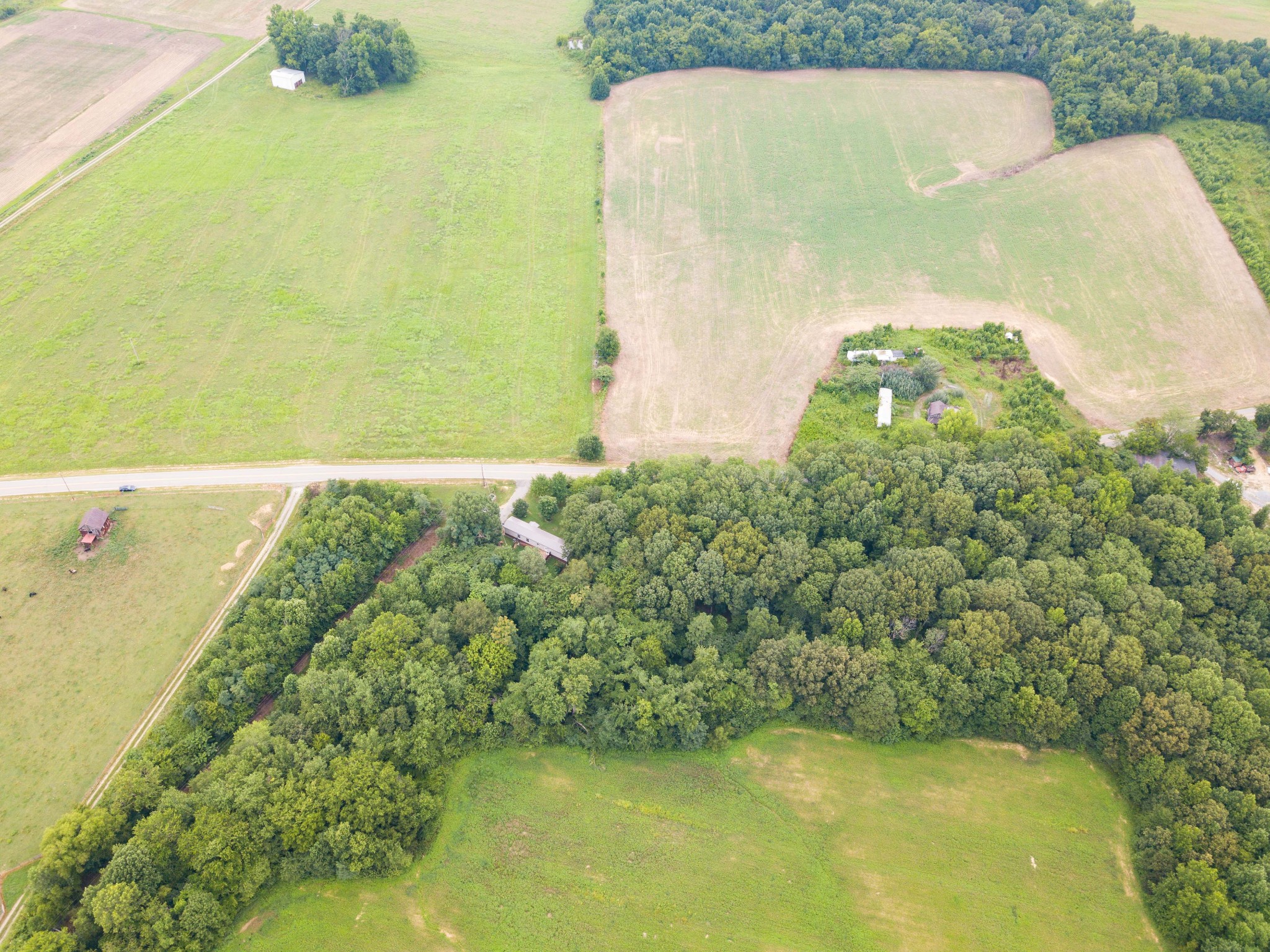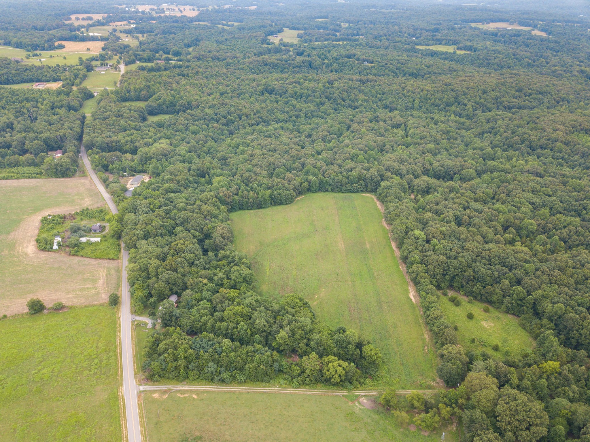 The acreage features mature timber, providing excellent wildlife habitat. Up front, over 8 acres of level ground is currently in tobacco but could easily transition to row crops or pasture. Deeper within the property lies a secluded 1+ acre field—an ideal food plot location. A year-round creek runs through the tract, offering a natural water source and enhancing the property’s appeal for deer, turkey, and other game.