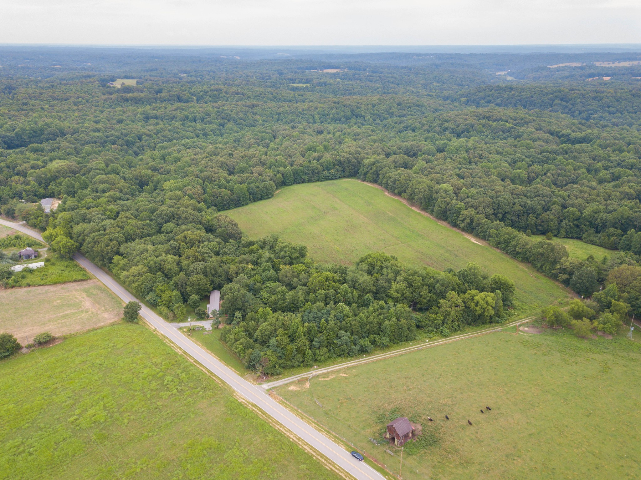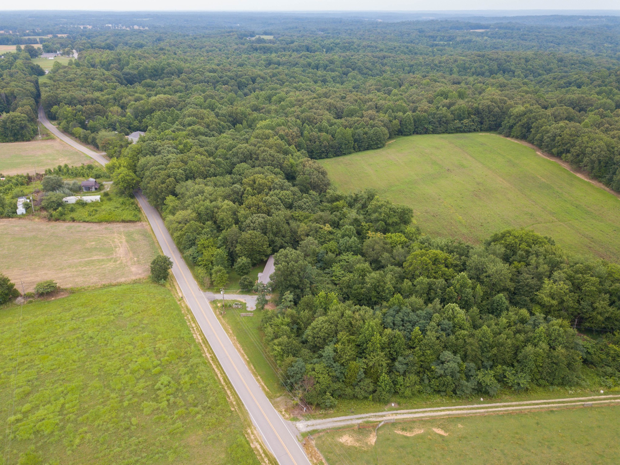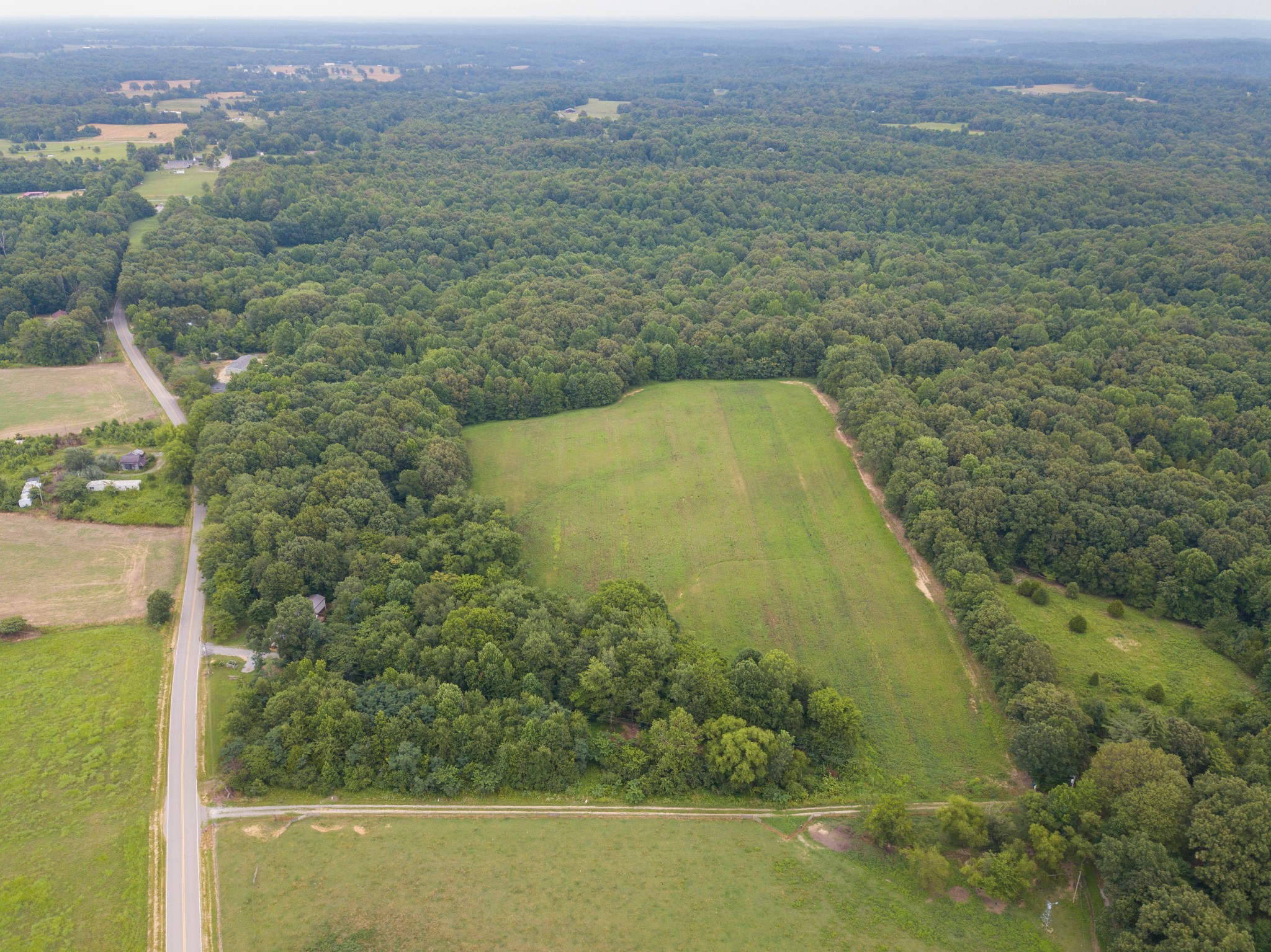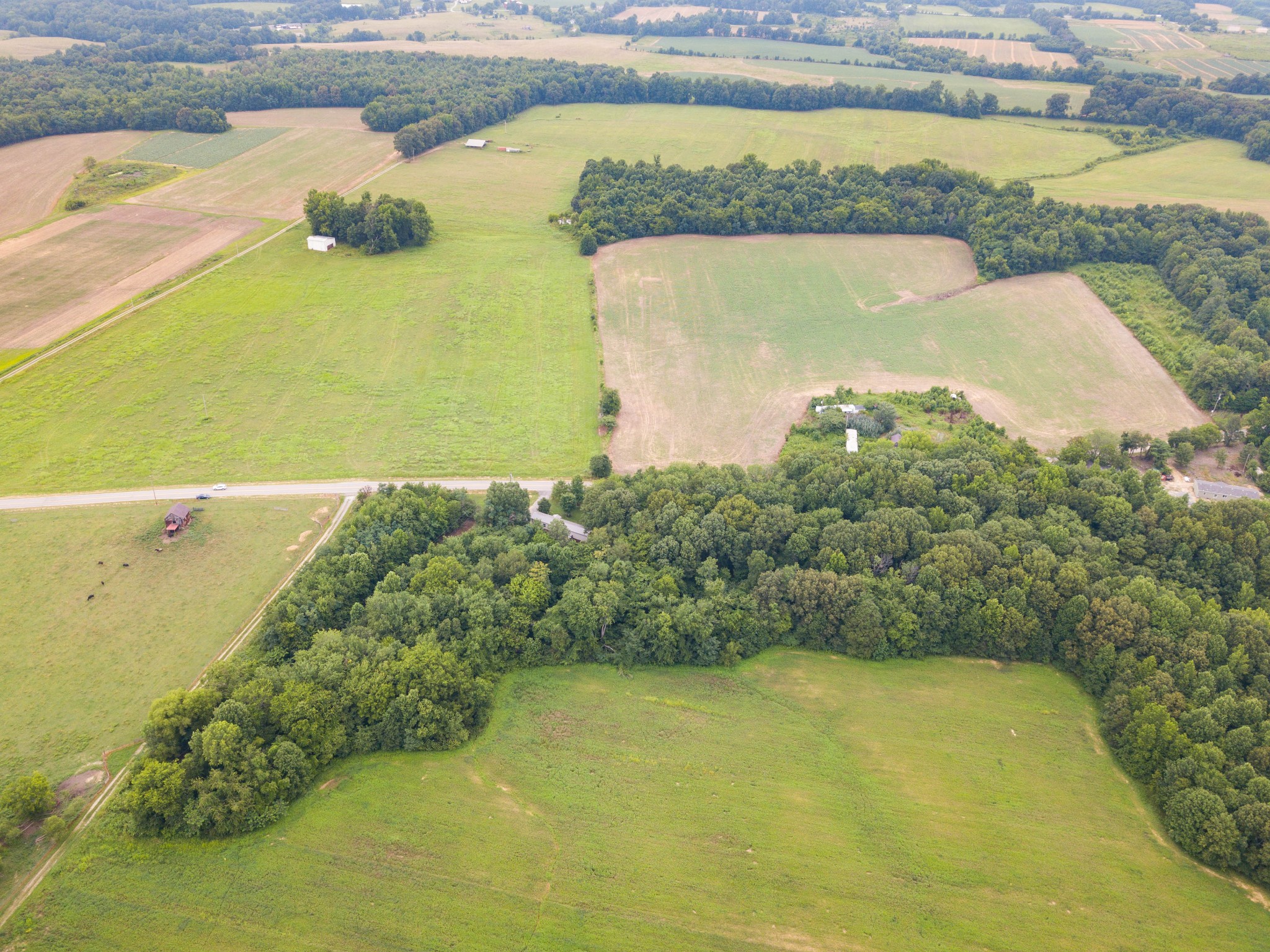 The acreage features mature timber, providing excellent wildlife habitat. Up front, over 8 acres of level ground is currently in tobacco but could easily transition to row crops or pasture. Deeper within the property lies a secluded 1+ acre field—an ideal food plot location. A year-round creek runs through the tract, offering a natural water source and enhancing the property’s appeal for deer, turkey, and other game.