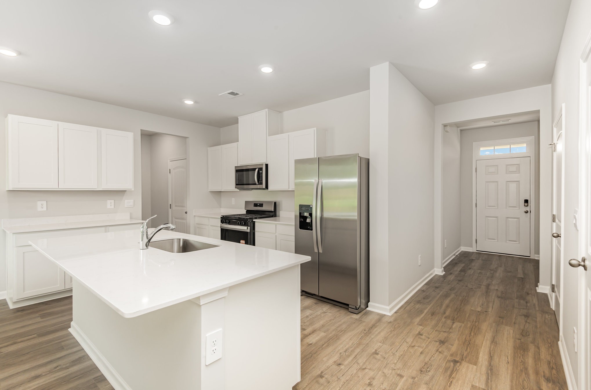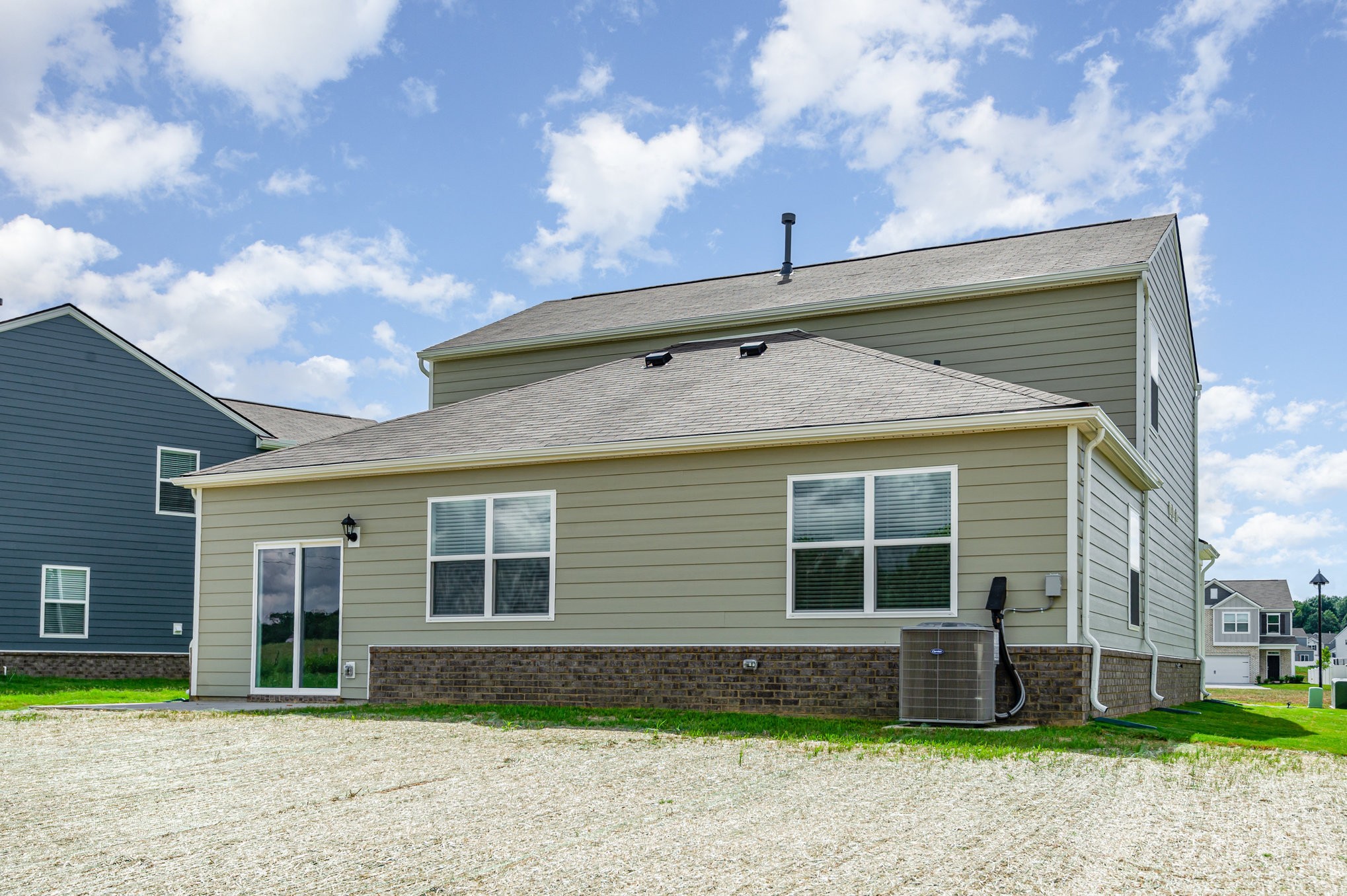 Be the first to live in this spacious 4-bedroom, 2.5-bath home! Features include a modern kitchen with quartz countertops, an island, and stainless-steel appliances, a first-floor primary suite with double vanity and walk-in closet, an upstairs flex/loft area, and a backyard patio. Washer and dryer are included. This home backs up to a common area for added privacy. Community amenities feature a resort-style pool, playground, and walking trails. Conveniently located minutes from highways, shopping, and more. Pets allowed with fees.