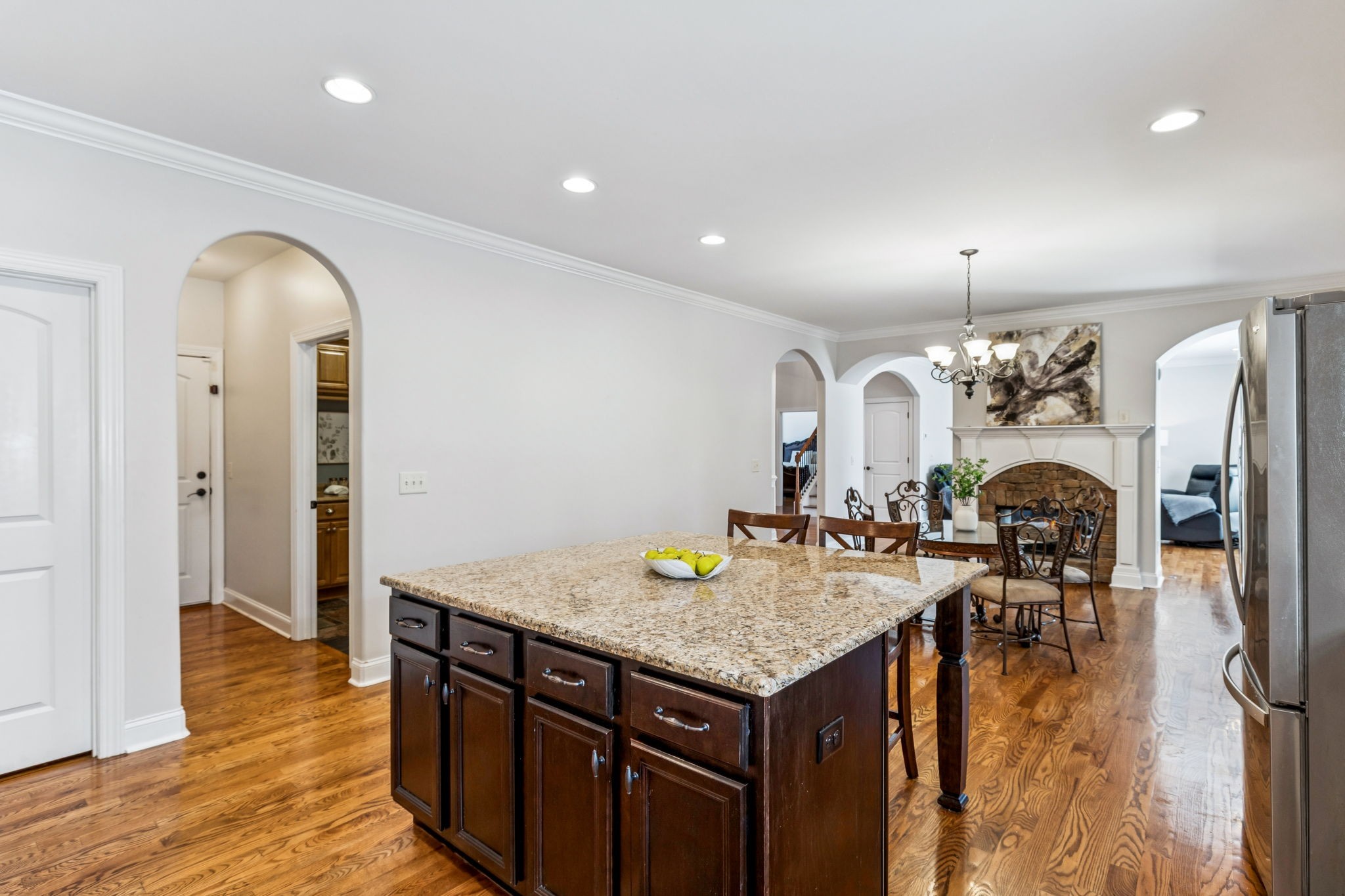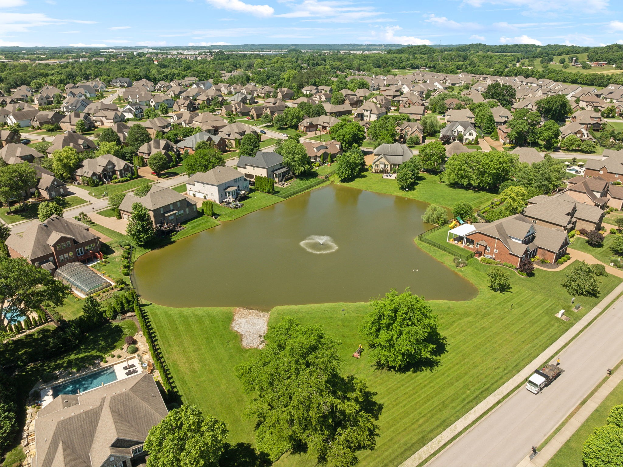Tucked inside Autumn Ridge, one of Spring Hill’s most sought-after communities, this true custom-built home offers the space, style, and neighborhood charm you’ve been waiting for. Zoned for the Williamson County School system and located on a quiet, non-through street with a serene, front porch pond view, it’s the perfect blend of comfort, convenience, and a peaceful setting. Step into a spacious two-story foyer with sand-and-finish hardwoods throughout the entire main floor. Extensive, tasteful trim details are found throughout the home. The open kitchen features extensive counter space, a massive island, stainless appliances that remain with the home, and a large walk-in pantry. A nearby utility room includes cabinetry, counter space, and a built-in sink for functional ease. The kitchen flows into the breakfast area and living room, joined by a two-sided fireplace that adds warmth and character. Upstairs there is a flexible den, study, library, media room, or something else, you choose! This offers space for work, hobbies, or a quiet retreat. Down the hall, you'll find a connected 2 part bonus room. A wet bar sits on the upper landing area of the room with a a step-down area that feels like its own private retreat - perfect for movie nights, entertaining, a guest area, or creative flex space. Bedrooms 2 and 3 share a Jack & Jill bath, while Bedroom 4 includes a private hobby room. Outside, enjoy mature landscaping, lighting, full irrigation, and a screened porch overlooking more gorgeous landscaping and your private backyard. A 3-car garage, generous storage, and custom closets throughout complete the home. Community amenities include a pool, clubhouse, fishing pond, neighborhood events, and what many call the best fireworks display in Spring Hill. Come see what makes this home - and Autumn Ridge - so special!