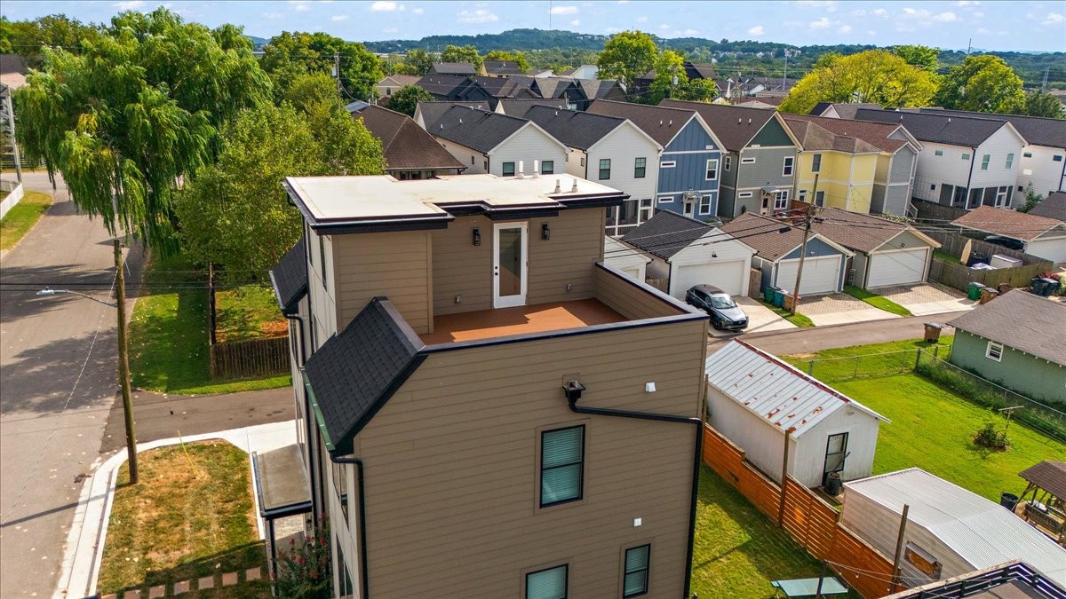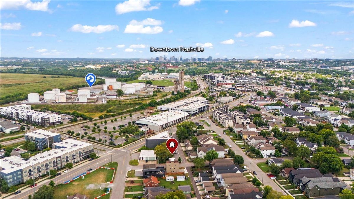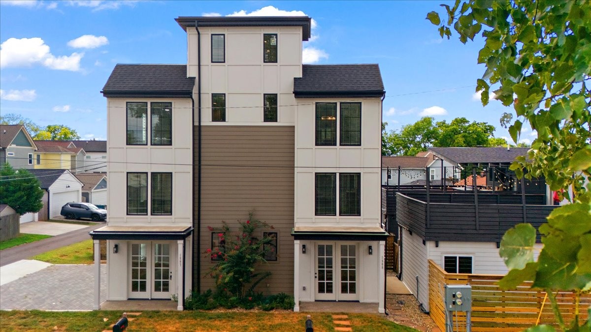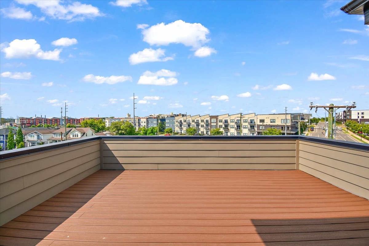 NOOSTR 1509 55th Ave N, Nashville, TN — The Nations: Modern 2 bed, 2.5 bath home with a private rooftop deck showcasing a sweeping view—perfect for golden-hour hangs, morning coffee, and effortless entertaining. The main level offers an easy, open flow for living, dining, and cooking, with a convenient half bath for guests. Upstairs, both bedrooms feature en-suite baths, giving everyone privacy and flexibility for roommates, guests, or a home office. Expansive rooftop deck with great view, 2 en-suite bedrooms + main-level powder bath, Set in the heart of The Nations, you’re moments from neighborhood cafés, breweries, parks, and the 51st Ave corridor—close to everything yet tucked on a quiet street. The property is zoned to allow STR/Airbnb per seller/zoning info—buyer/agent to verify all permits, licensing, and HOA/Metro restrictions prior to closing.