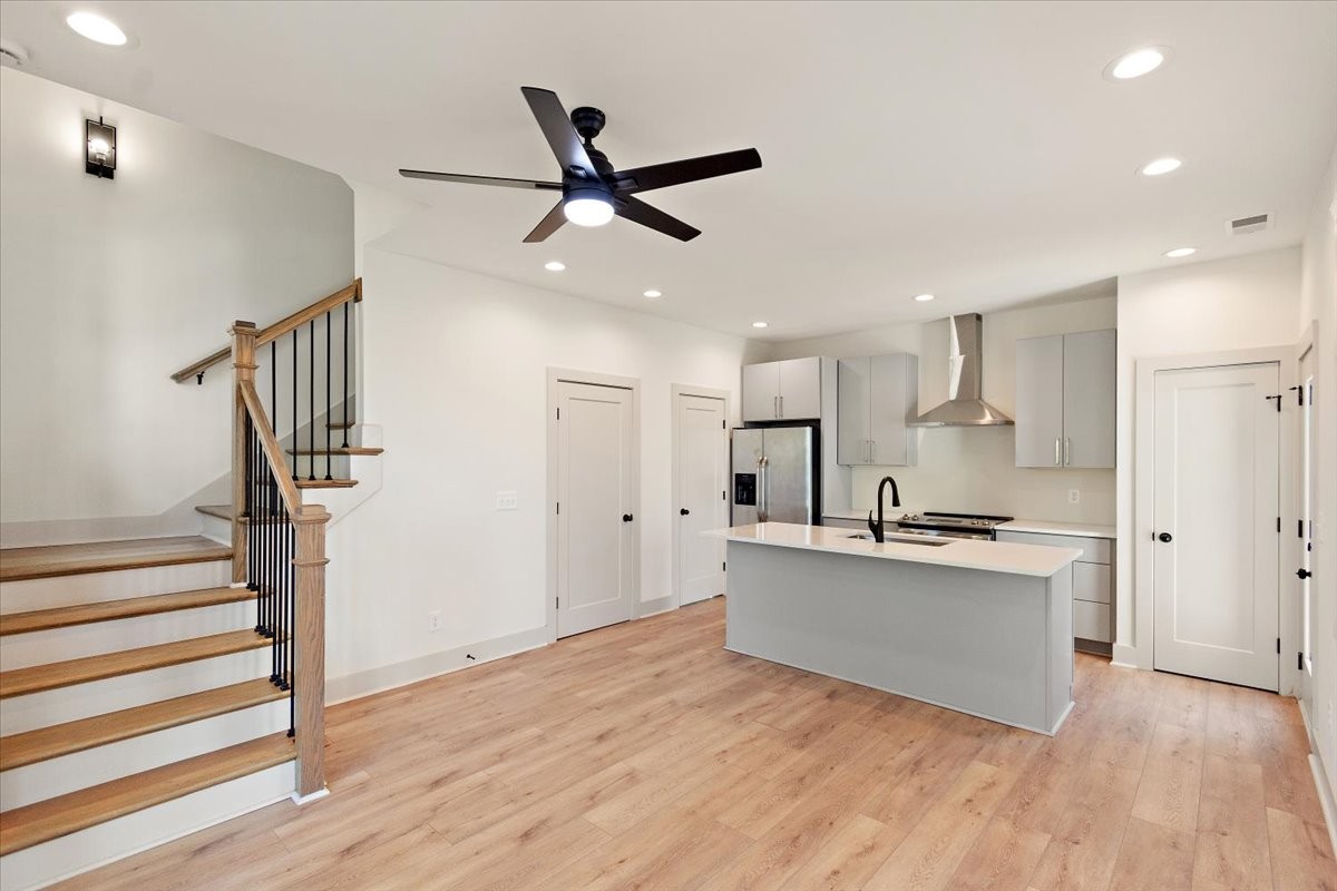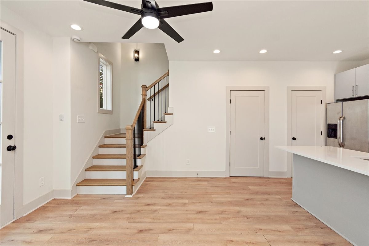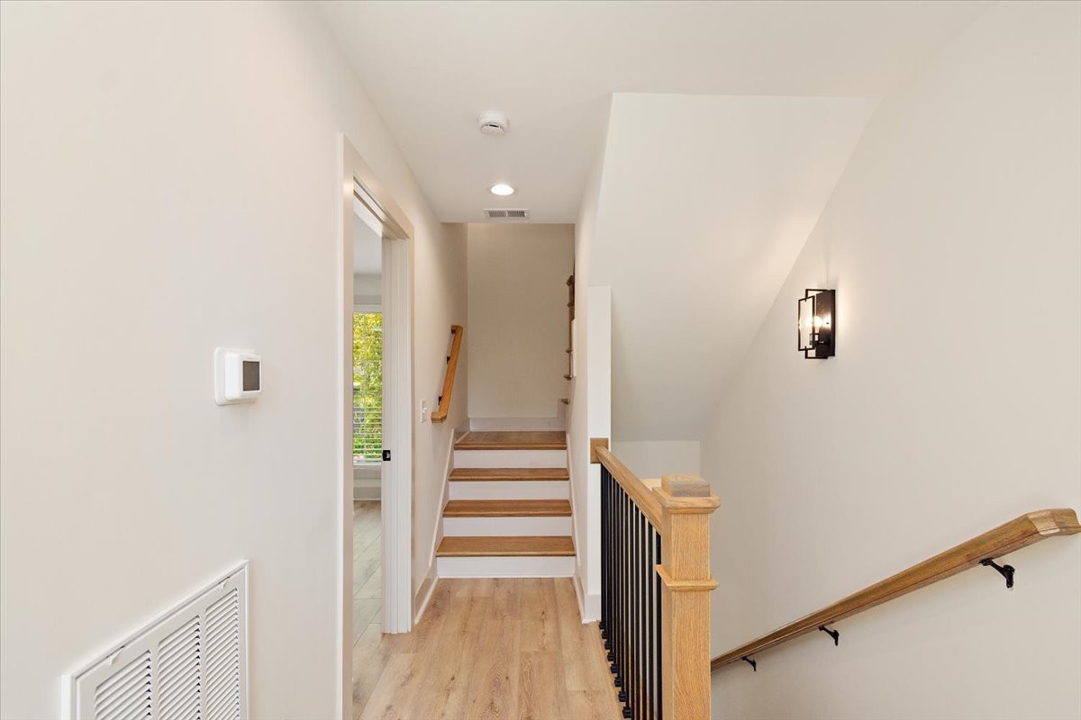 NOOSTR 1509 55th Ave N, Nashville, TN — The Nations: Modern 2 bed, 2.5 bath home with a private rooftop deck showcasing a sweeping view—perfect for golden-hour hangs, morning coffee, and effortless entertaining. The main level offers an easy, open flow for living, dining, and cooking, with a convenient half bath for guests. Upstairs, both bedrooms feature en-suite baths, giving everyone privacy and flexibility for roommates, guests, or a home office. Expansive rooftop deck with great view, 2 en-suite bedrooms + main-level powder bath, Set in the heart of The Nations, you’re moments from neighborhood cafés, breweries, parks, and the 51st Ave corridor—close to everything yet tucked on a quiet street. The property is zoned to allow STR/Airbnb per seller/zoning info—buyer/agent to verify all permits, licensing, and HOA/Metro restrictions prior to closing.