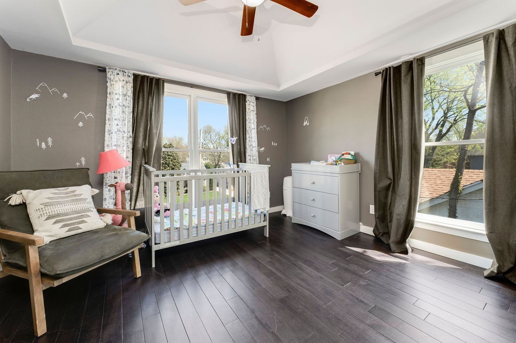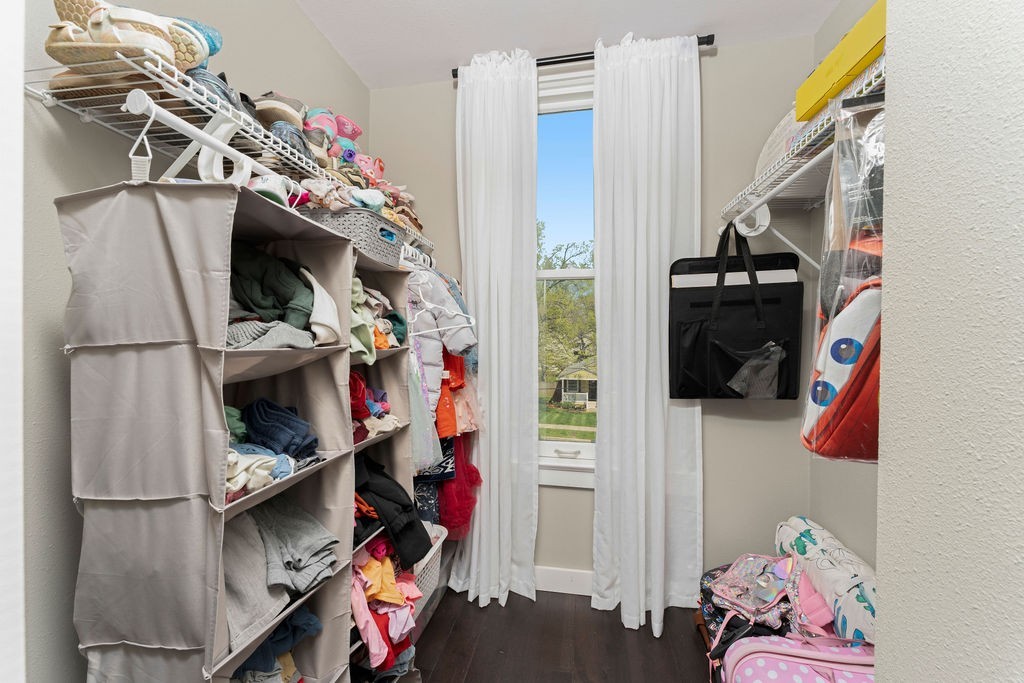 The spacious primary suite offers a true retreat with its own walk-in closet, while two additional bedrooms also feature generous walk-in storage. The fourth bedroom is perfect for guests, an office, or a nursery, and includes a standard closet.