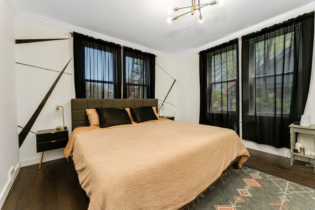 Inside, you’ll find a blend of historic character and thoughtful updates—warm, hardwood-style floors, exposed brick, cozy fireplaces, and a renovated kitchen that brings together charm and functionality with stainless appliances and timeless finishes.