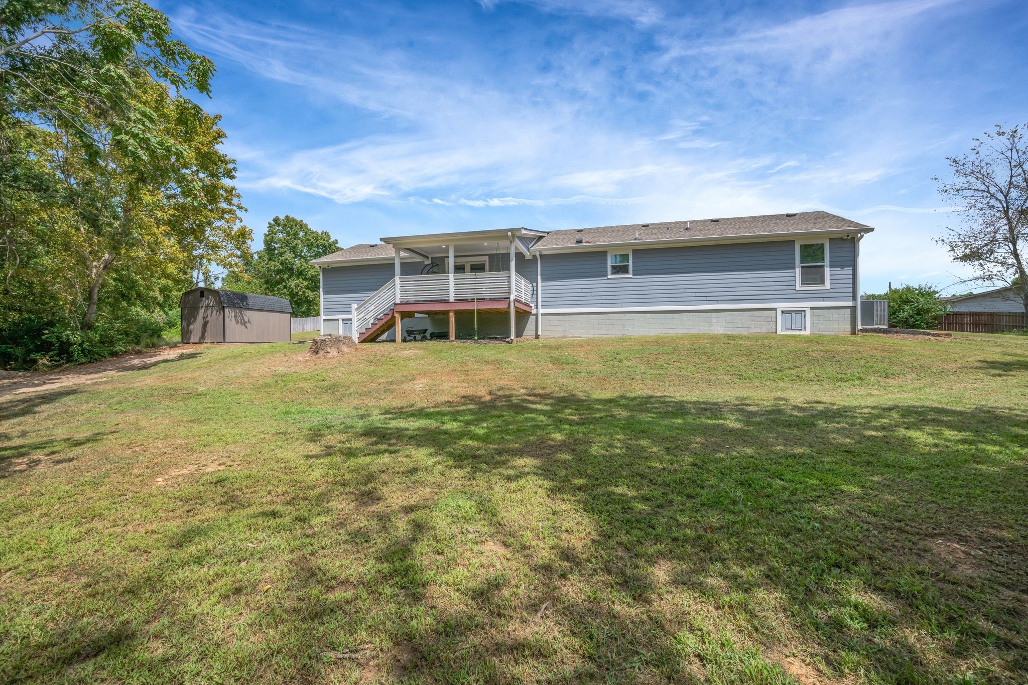 The property is partially fenced and also offers a covered porch and deck, perfect for entertaining or relaxing.