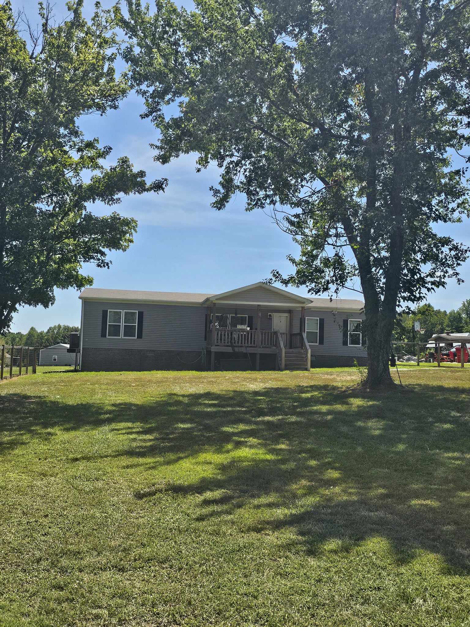 Beautiful home in a nice country atmosphere. Home sits back off the road with large fenced in front yard with mature trees for shade from that summer heat. Covered front porch leads you to spacious open floor plan with large kitchen island. Great floor plan to entertain guest in. Home offers split bedroom floor plan with large master bedroom with gorgeous master suite on one side and two bedrooms and office on the other side. Don't need an office this flex space with closet offers multiple purposes. The level back yard offers a blank slate for anything you can imagine. Current owners have already had a slab poured for a detached garage. Property also features a paved driveway.