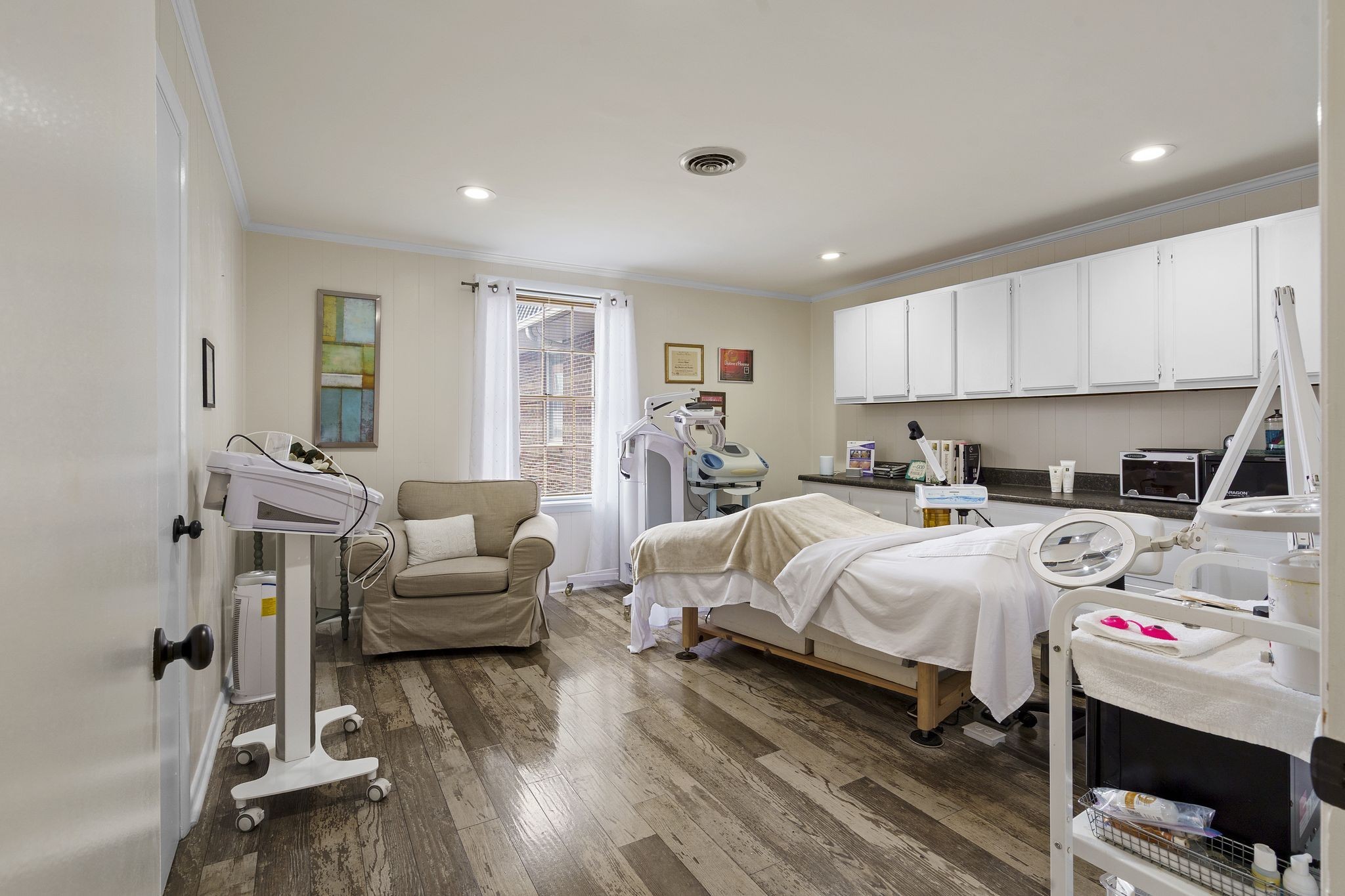 Investment Opportunity: Unique chance to own income-producing space in a high-visibility downtown location. Ideal for investors or owner-operators. Prime commercial property available in the heart of downtown Springfield, Tennessee. This versatile building offers excellent visibility and a flexible layout that can be divided to accommodate multiple tenants or used as one business. 2 separate businesses currently occupy the main level space. The South Wing (current use-law office) with 8 large private offices, waiting room, conference room, 1/2 bathroom, kitchenette and storage room. The East Wing (current use-Med Spa) with 3 medical treatment rooms, reception/waiting room, additional 1/2 bath, utility room with washer/dryer connection. 12 space private parking lot. The second floor includes a two-bedroom, one-bath apartment with both interior and private exterior access, providing additional rental income or live/work opportunities with potential rental income of $1800-$2000 per month. One block from the historic city square and municipal offices and just steps away from the city greenway trail. The property is not under an active lease, allowing for immediate occupancy. Property can be easily divided for multiple tenants or configured for a single business. Shown by appointment only (do not disturb current occupants) For zoning questions, please contact the City of Springfield at 615-382-2200.