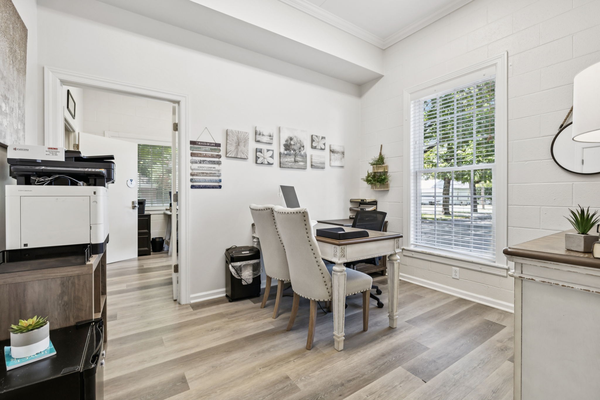 This charming and beautifully renovated building has so many extras including a slate roof, copper gutters and gorgeous landscaping! Let your imagination guide you, as this building has so many opportunities! It is zoned Office General/Residential with many options included! This well maintained building has 9 offices and/or bedrooms, a large meeting room, reception area, kitchen, 1 full and 2 half baths, sinks in some rooms and an awesome private outdoor area surrounded by a high wood fence! A great plus is the large adjoining .26 acre parking lot! Conveniently located in downtown Murfreesboro and within walking distance to MTSU and the Murfreesboro Square and all of its restaurants, groceries, Saturday Market and Friday Night Live concerts! Corner lot with convenient ingress and egress to each street. Layout of building in the pictures.This one has it all and so much more!