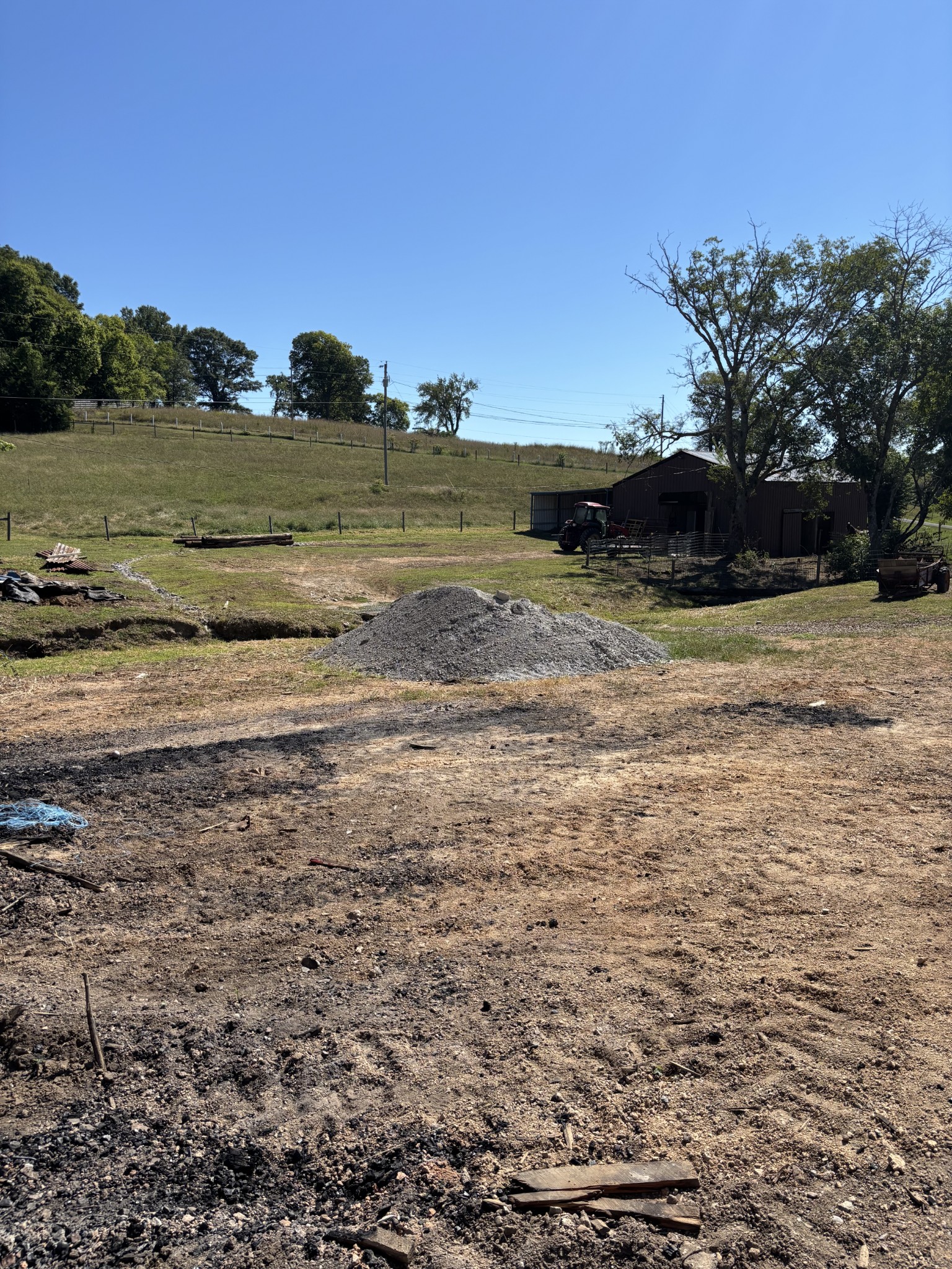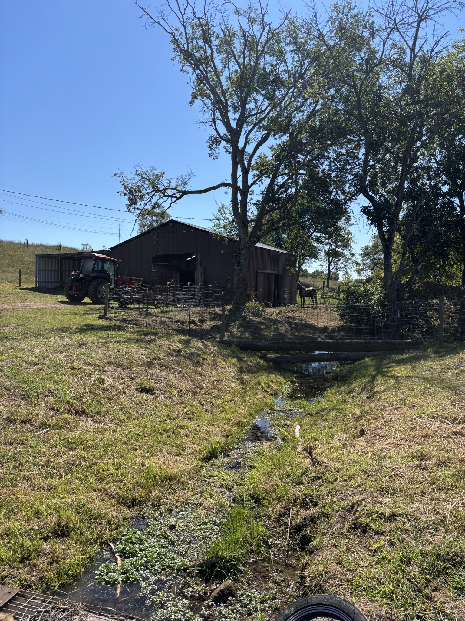 9.9 Acres in a Prime Location! Nice 2 Stall Horse Barn w/ Wash Bay, Work Area and Tack Room/Office; Water available for Barn from creek at road (Buyer will need to put in new sump pump); Preliminary Soils Work has been completed (see attached High Intensity Soil Map). Soil Area is Marked with Post and Yellow Ribbon; Buyer to purchase Permit from Health Department; City Water available at road, Buyer to purchase water tap from Lewisburg Water; Creek runs through Land on both sides of Property at Road;