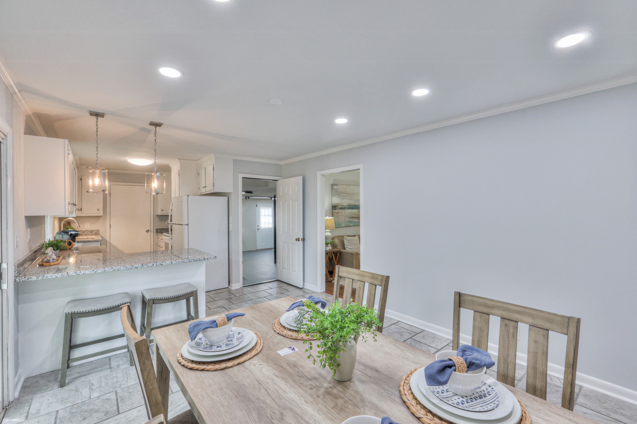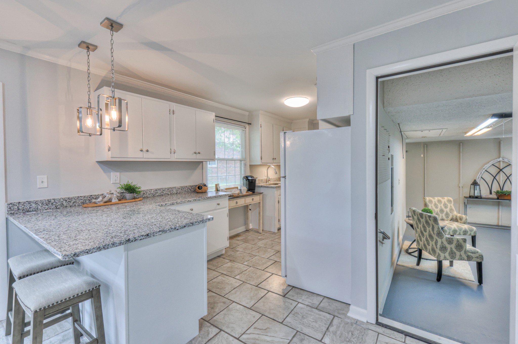 Charming one-level brick ranch on a spacious fenced corner lot with mature trees! This 3 bedroom, 2 bath home is in an established Smyrna neighborhood with quick access to I-24, I-840, Nissan, and Sam Ridley Parkway. Recent updates include a NEW roof, NEW gutters, fresh interior paint, granite countertops, updated cabinets, fixtures, and disposal. HVAC replaced in 2020. Easy-care laminate and tile flooring throughout—no carpet! The utility room offers a pantry and cabinetry for extra storage. Enjoy the rocking chair front porch, large backyard, and brand-new storage building. Convenient to parks, shopping, dining, and more!