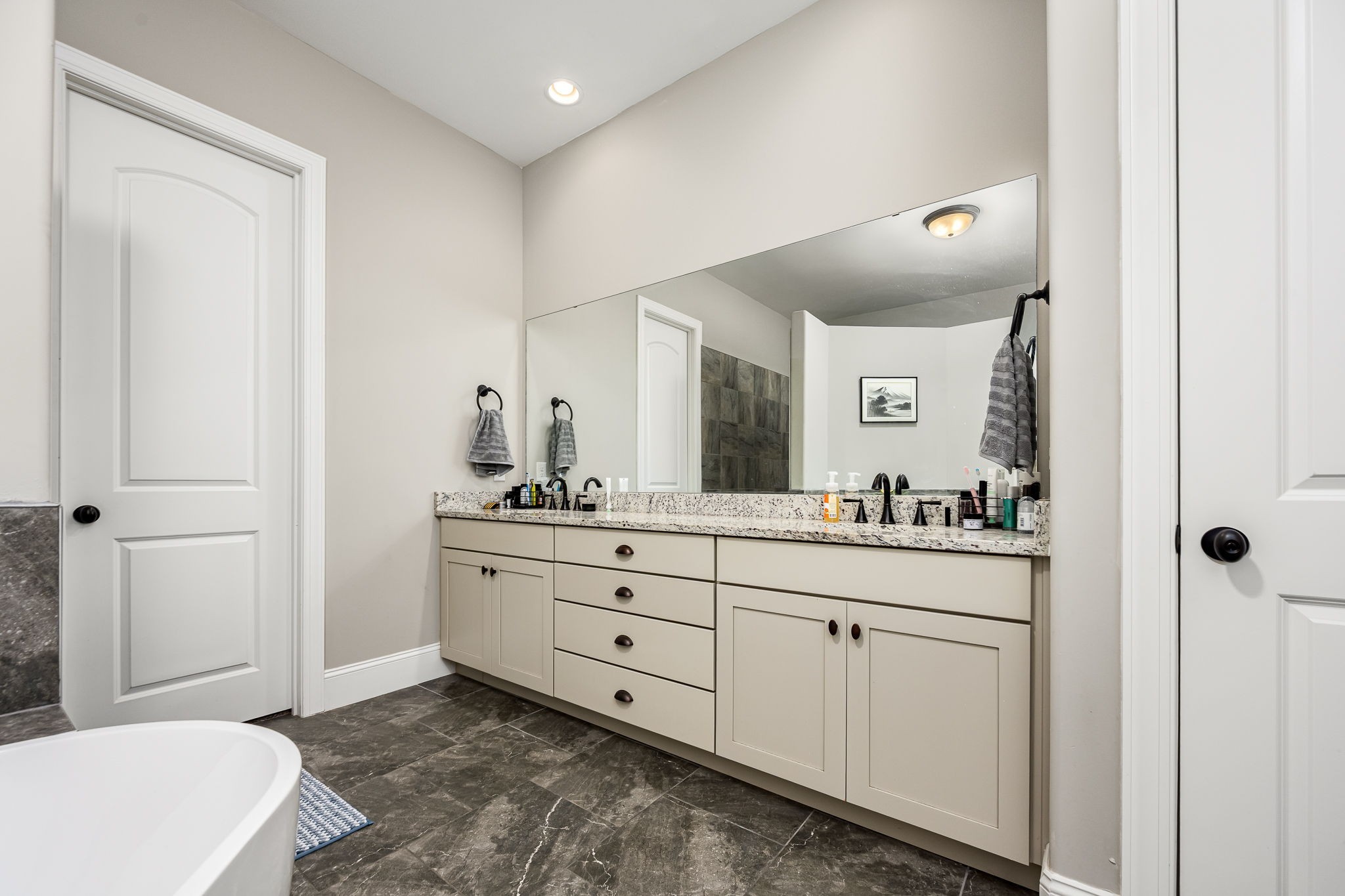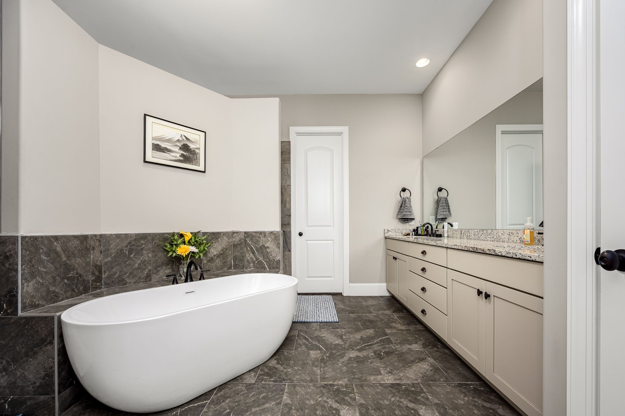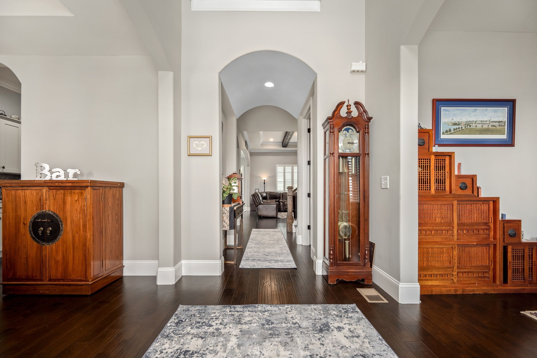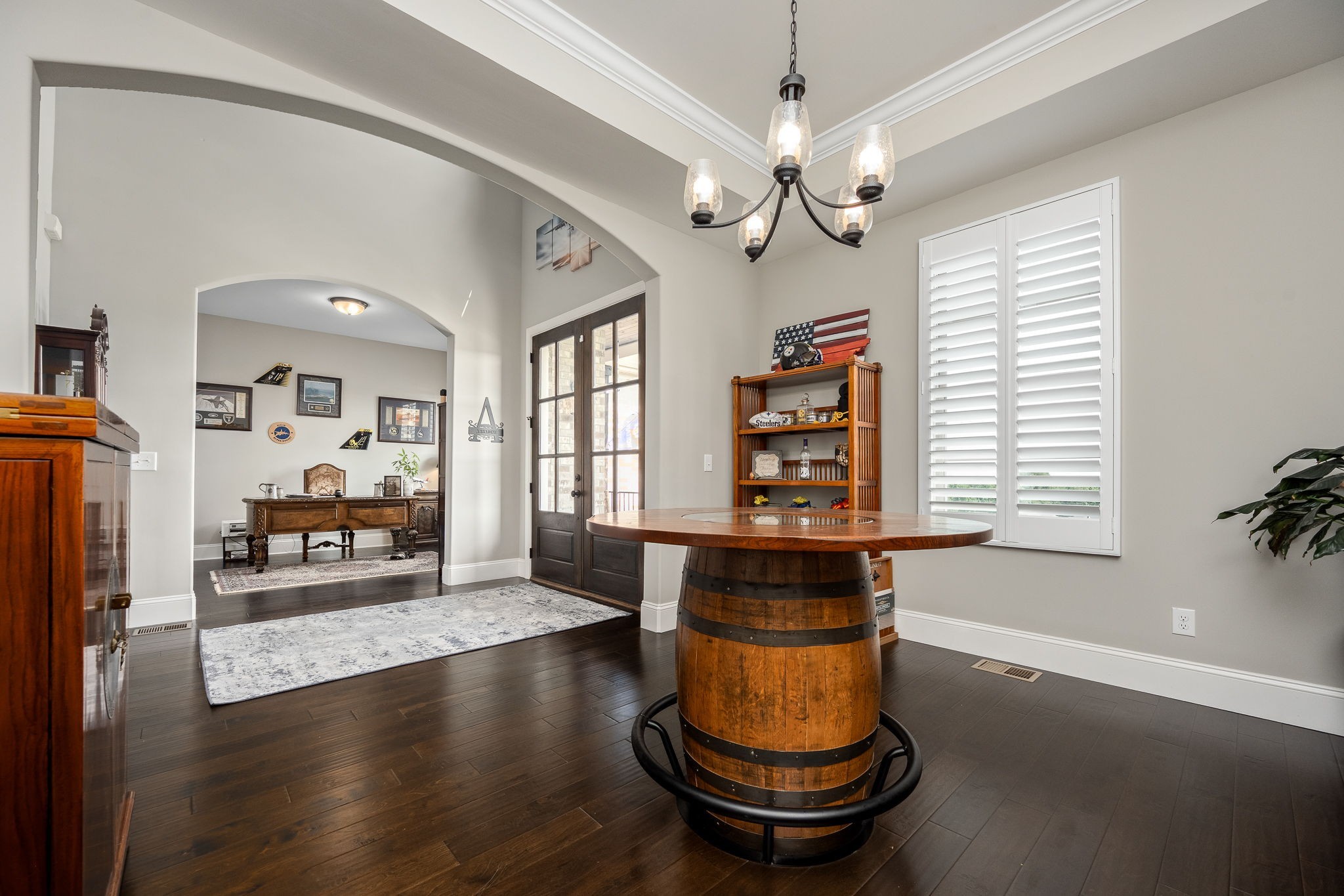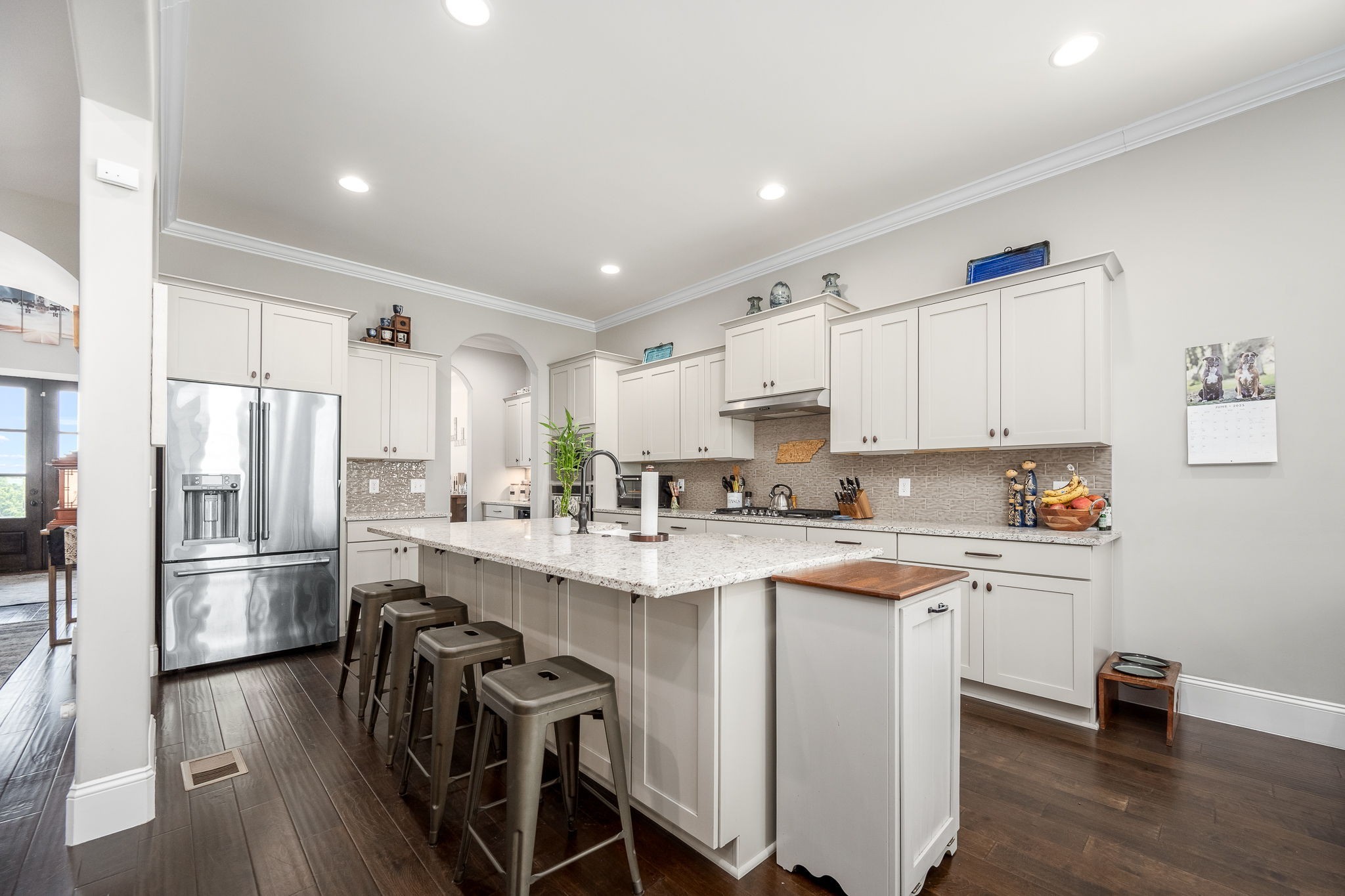 Upstairs, an open loft offers versatile space, perfect for a playroom or media area. The attached 2-car garage has a vertical lift door and provides ample space for your vehicles and hobbies. There is also a tandem 3rd garage.