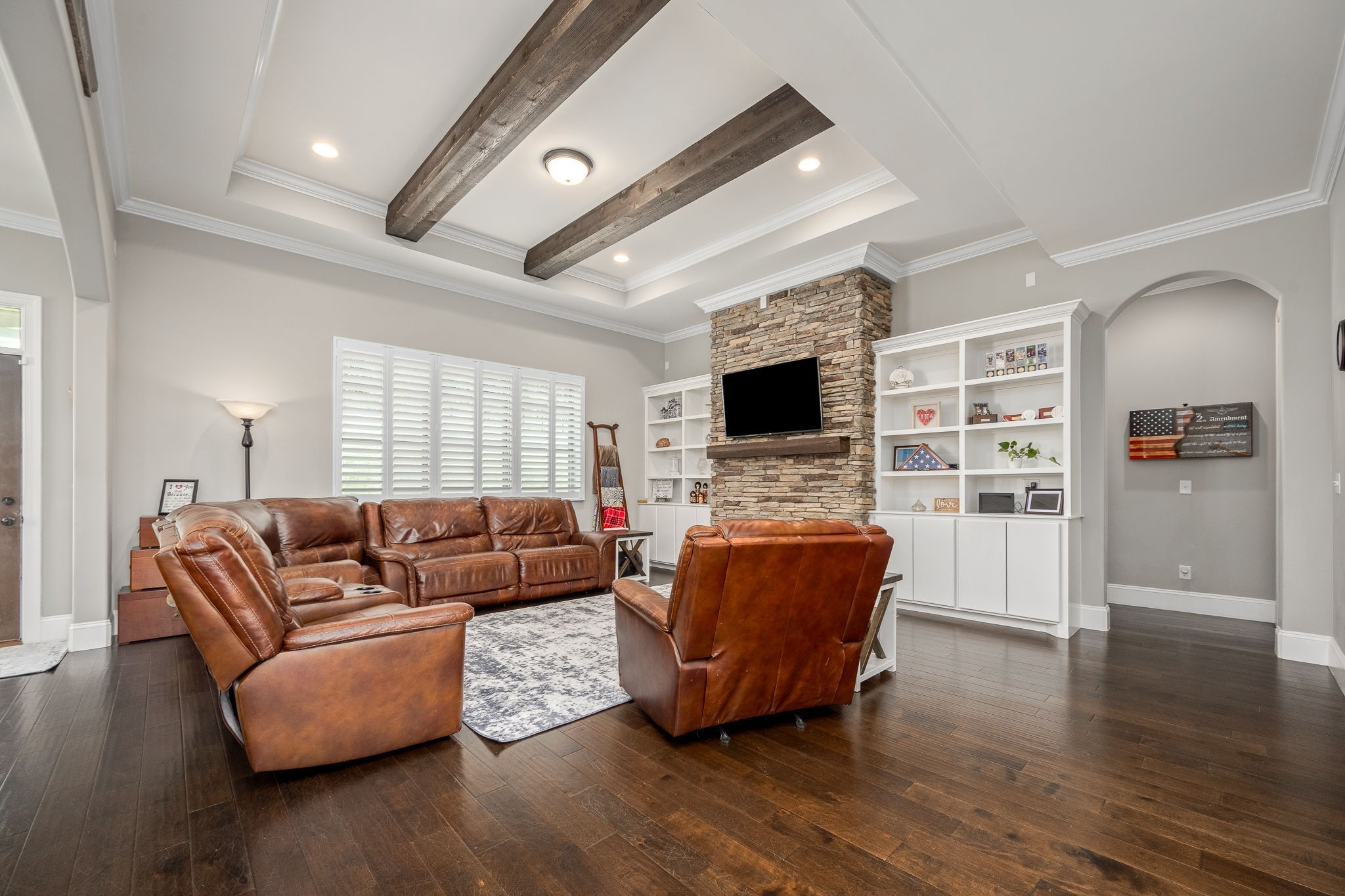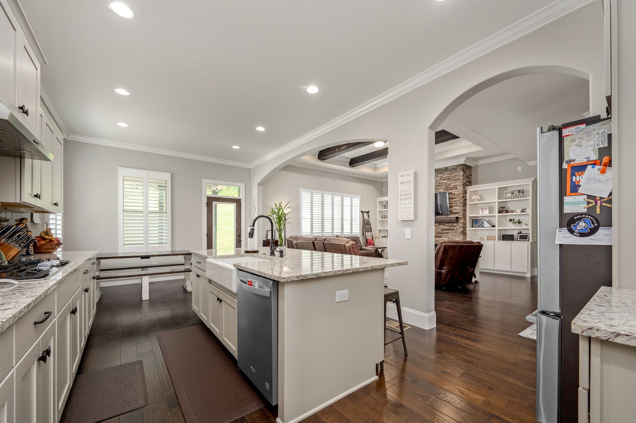 $10K PRICING IMPROVEMENT + $10K TOWARD BUYER CLOSING COSTS!! Welcome to your dream home nestled in the picturesque Nolensville hills. GORGEOUS views in every direction! Largest lot in neighborhood! Downtown historic Nolensville is only minutes away! This stunning 4-bedroom, 3.5-bath residence boasts 3,763 square feet of luxurious living. Step inside and be captivated by the open-concept design, where the inviting greatroom features a charming stone fireplace, cedar beams, and elegant built-ins. The gourmet kitchen is a chef's delight with granite countertops, beautiful tile backsplash, a gas stove, built in oven and microwave, and a butler pantry that has space for a wine fridge. Enjoy family meals in the breakfast area, or the formal dining room. Enjoy working from home in the tranquil study. Large primary bedroom boasts a massive en suite with 2 walk in closets, beautiful soaking tub and extra large walk in shower with double shower heads.