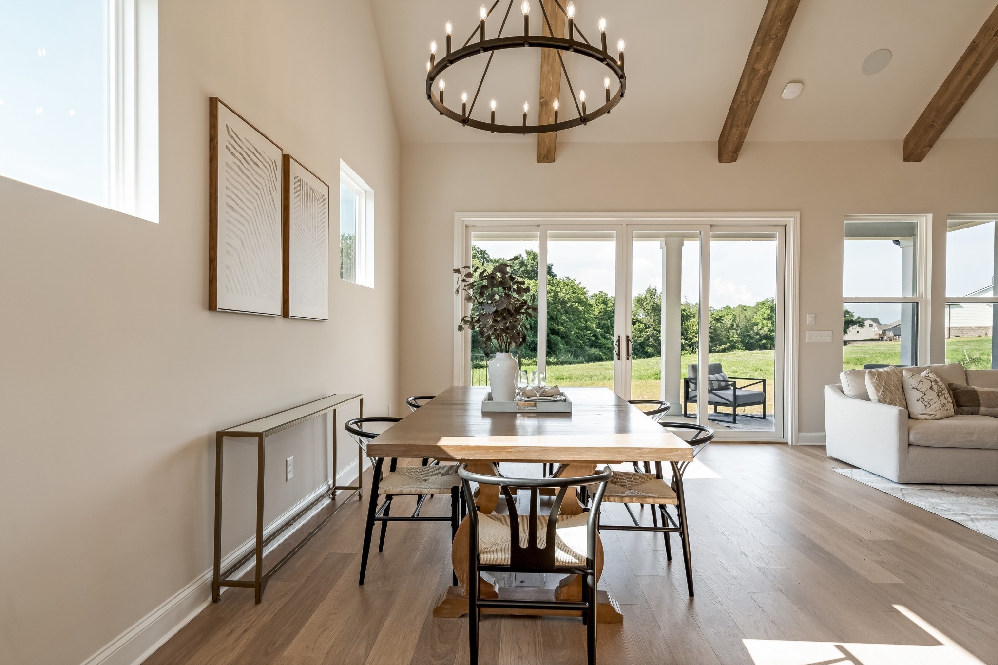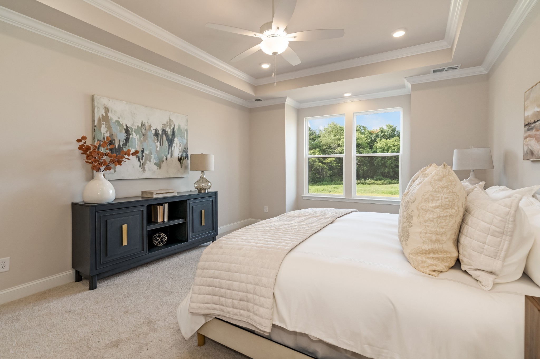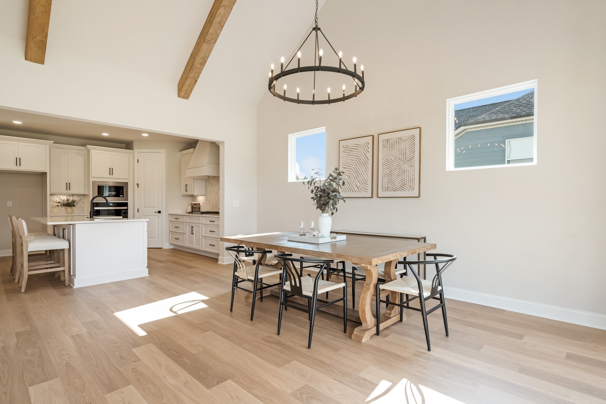 Welcome Home in the private cul-de-sac of Harvest Point! This Celebration Home Designer Mosley floorplan has everything you want in a New Build! This stunning 4 bedroom, 3.5 -bath with study spans over 2,970 sq ft and offers luxurious living with high-end upgrades throughout! Nestled on a cul-de-sac lot backing up to serene green space, this house ensures privacy and tranquility. Soaring 15' vaulted ceilings with stained mitered beams in the great room create a dramatic focal point, enhanced by the gas fireplace wrapped in stylish shiplap. The enlarged primary bedroom is on the main level that comes equipped with a bay sitting area, perfect for the morning coffee as you look out onto the treelined greenspace, The Owner's Bath includes raised double vanities w/ 8" wide spread upgraded plumbing, an enlarged freestanding tub & fully tiled walk-in shower. The kitchen boasts upgraded plumbing, 42" custom cabinets, upgraded quartz tops, Kohler farmhouse sink, 30" gas cooktop along with stainless Whirlpool appliances, perfect for the chef who likes to entertain! Upstairs you'll find a spacious loft ,computer area nook ,3 large bedrooms and 2 full baths, of which one bedroom has it's own ensuite bath which can serve as a 2nd primary. This home comes complete with a security system, upgraded home speaker system, tankless water heater and 3rd car garage. Don't let this New Celebration Home get away! Make sure and ask about our Builder Incentives tied to our preferred lender, Encompass Lending.