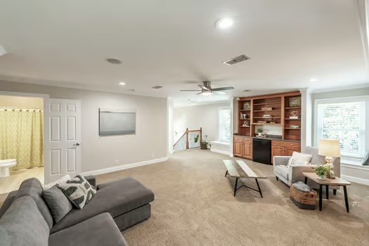 Located in Inglhame Farms- one of Brentwood’s most sought after neighborhoods, this updated 5-bedroom, 5.5-bath home offers ideal space and layout for modern living. Zoned for top-rated Williamson County schools- Kenrose Elementary, Woodland Middle and Ravenwood High, this home is also just minutes from Smith Park, I-65, and the neighborhood clubhouse and pool. Every bedroom has its own full en suite bathroom and walk in closet with two bedrooms located on the main level, perfect for guests or multi-generational living. Recent updates include fresh paint inside and out, new quartz countertops with matching quartz backsplash in the kitchen and butlers pantry, updated lighting throughout, and beautifully maintained hardwood floors. The spacious primary suite features a cozy fireplace, two walk-in closets, and a large private bath. The soundproofed home theater room comes fully equipped and includes a large adjacent storage closet. A three-car garage with built-in storage provides plenty of room for vehicles and extras. The backyard is private and fully equipped for outdoor enjoyment, with a screened porch, gas fireplace, patio with gas line for grilling, and a full-yard irrigation system. Located in an upscale community with easy access to parks, schools, shopping, and dining, this home combines thoughtful design, great amenities and an unbeatable location.