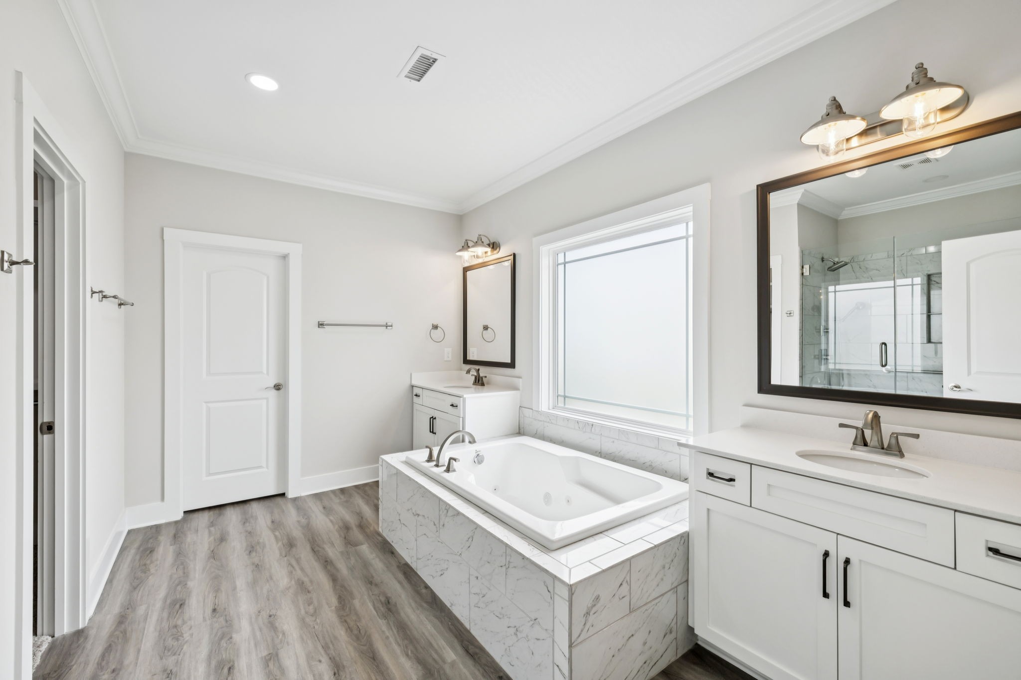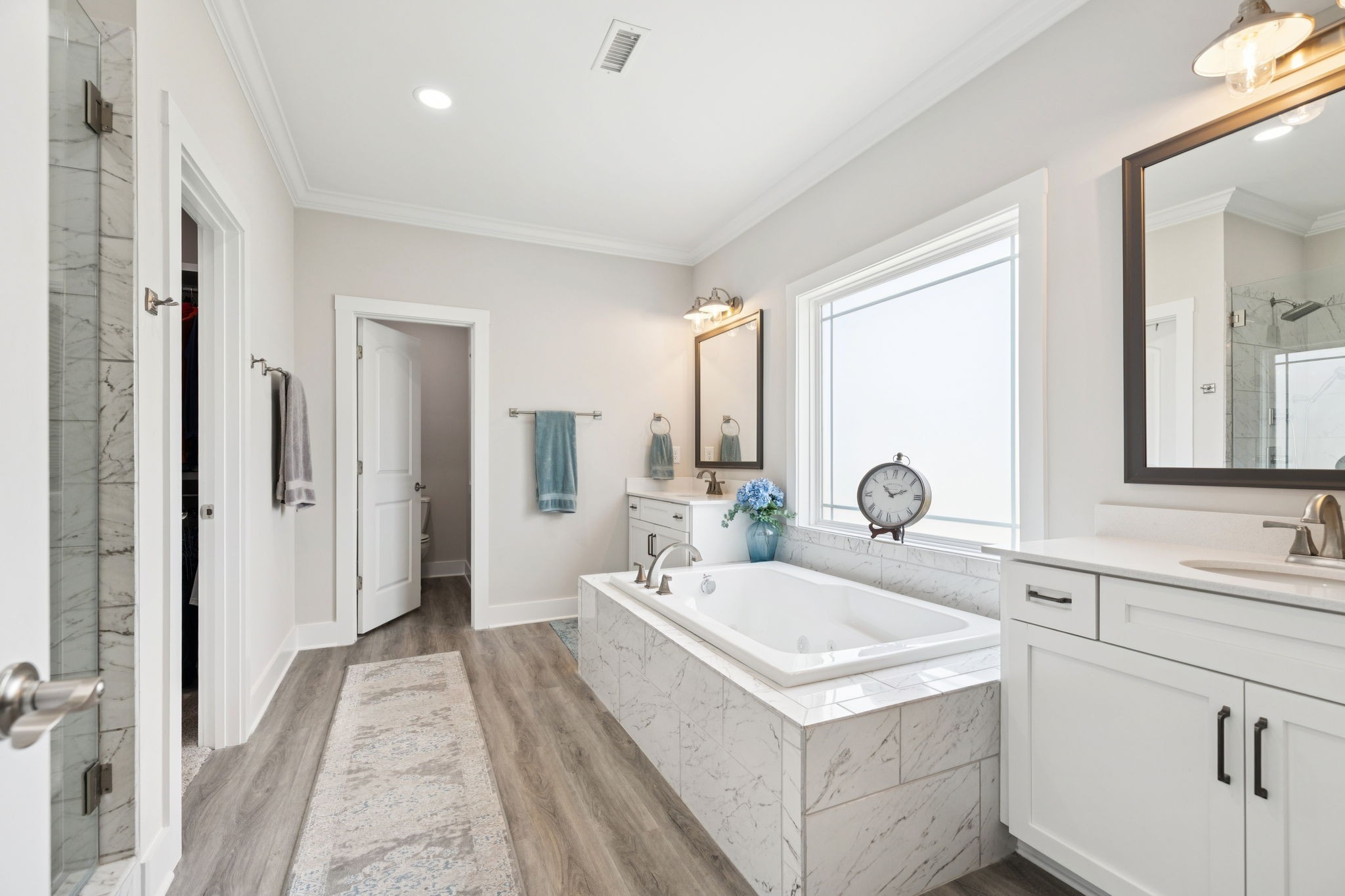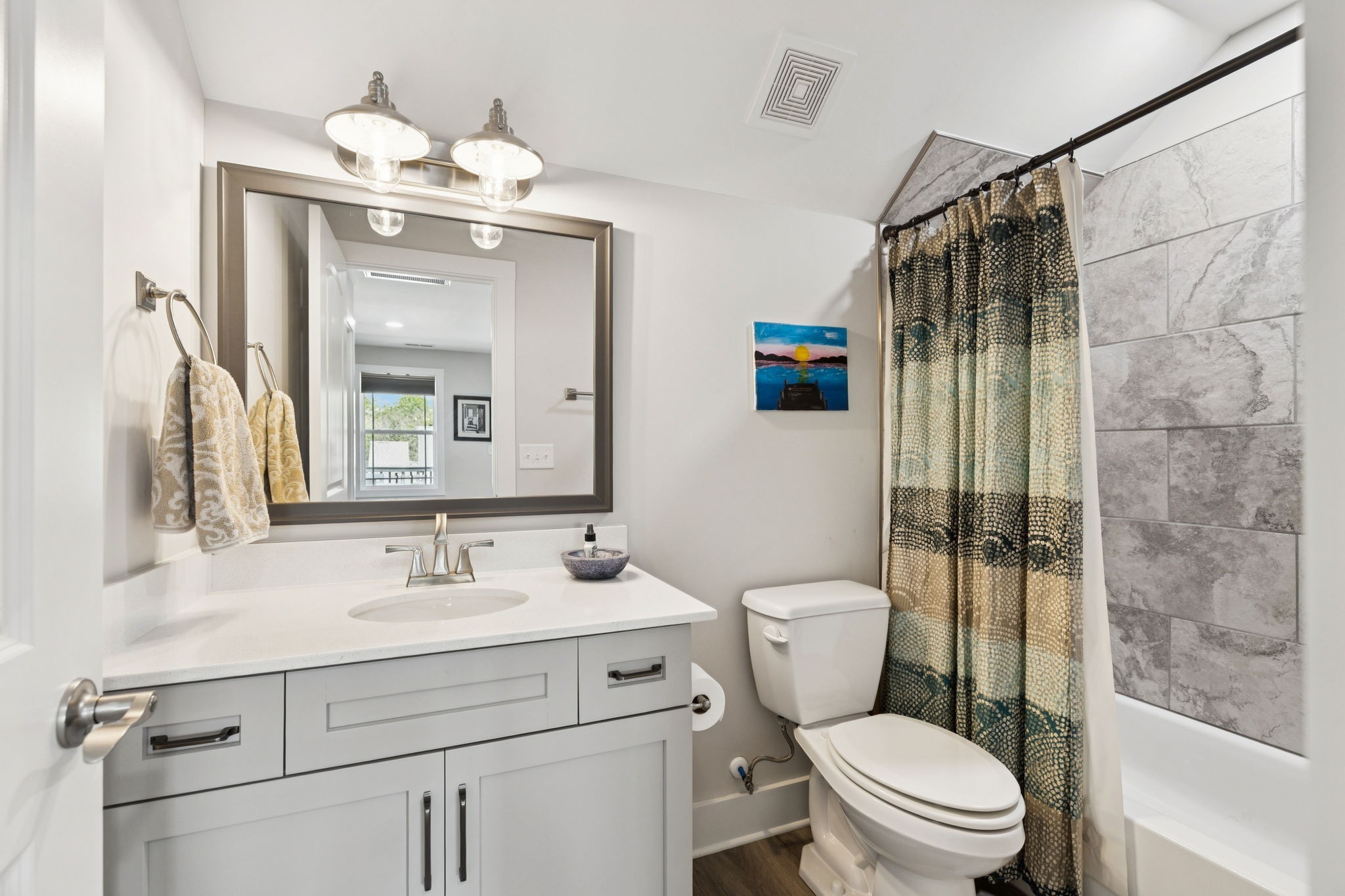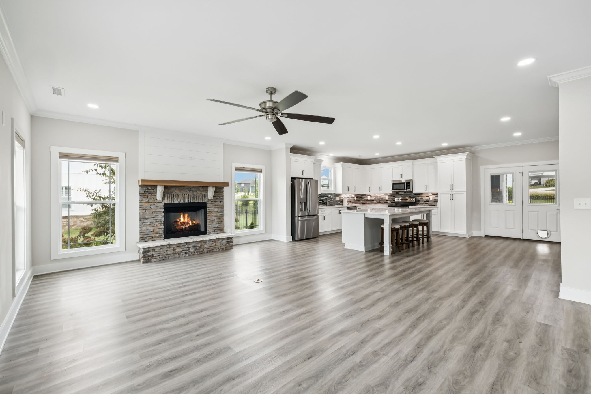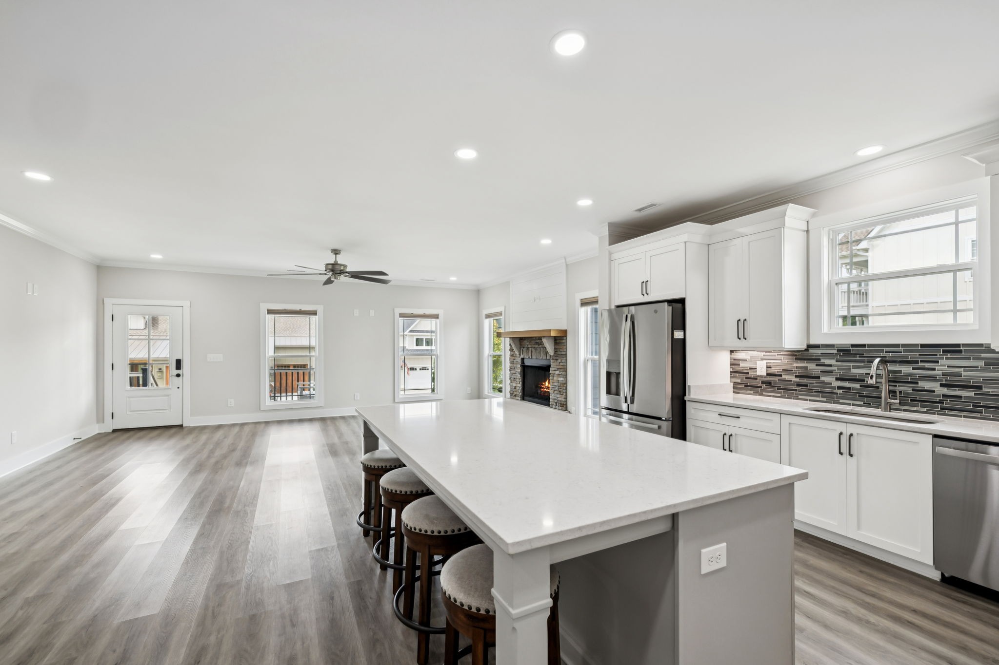Now for the house itself: perched on a corner lot, this craftsman beauty serves up lake views from both its upper and lower front porches. Imagine unwinding upstairs with a west facing sunset over the water or greeting the morning with coffee by the outdoor fireplace on the screened porch while the sun rises. Inside, there’s another fireplace to keep the cozy vibes going, plus durable LVP flooring where life happens most and cushy carpet where you’ll want it most, upstairs and in the bedrooms.