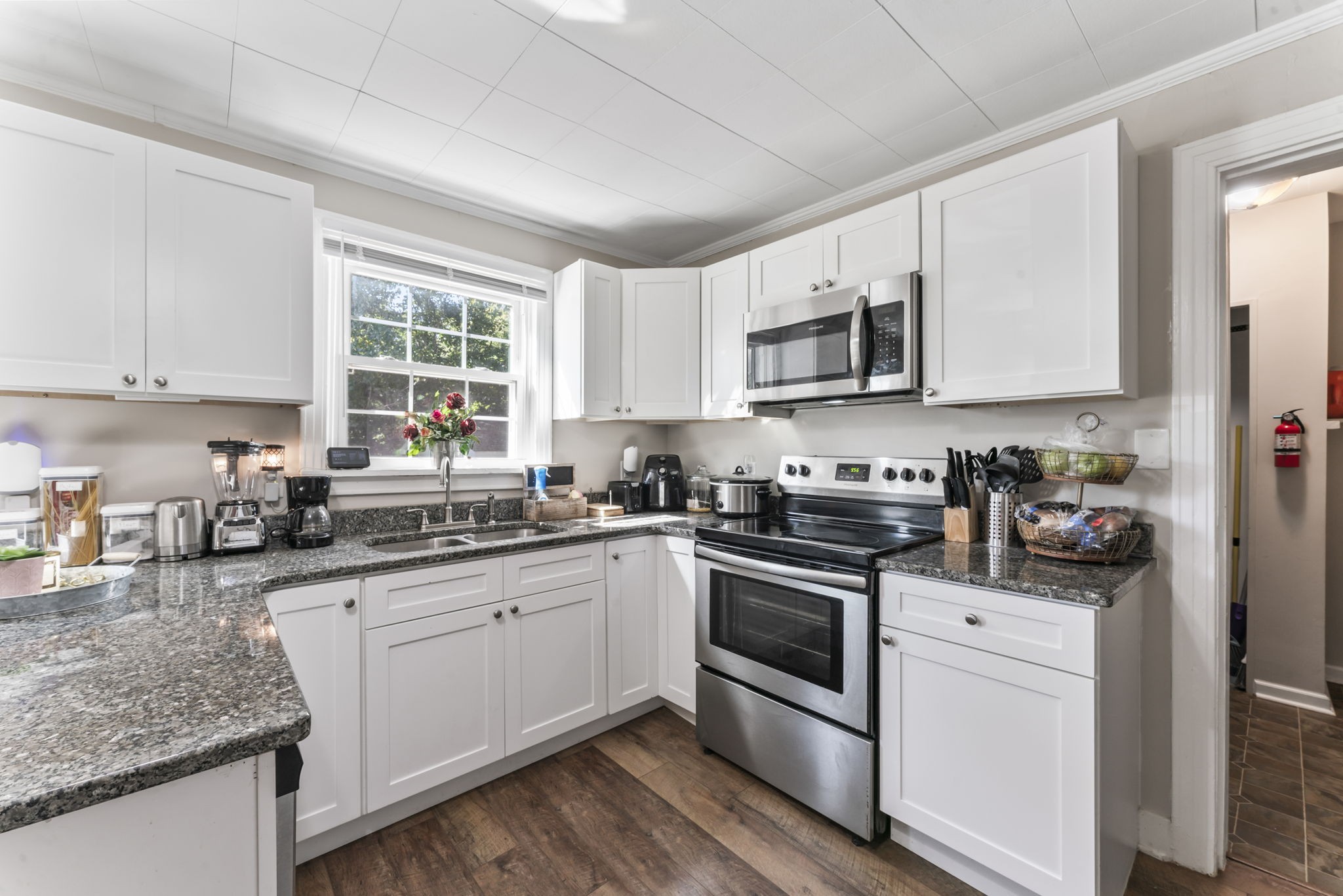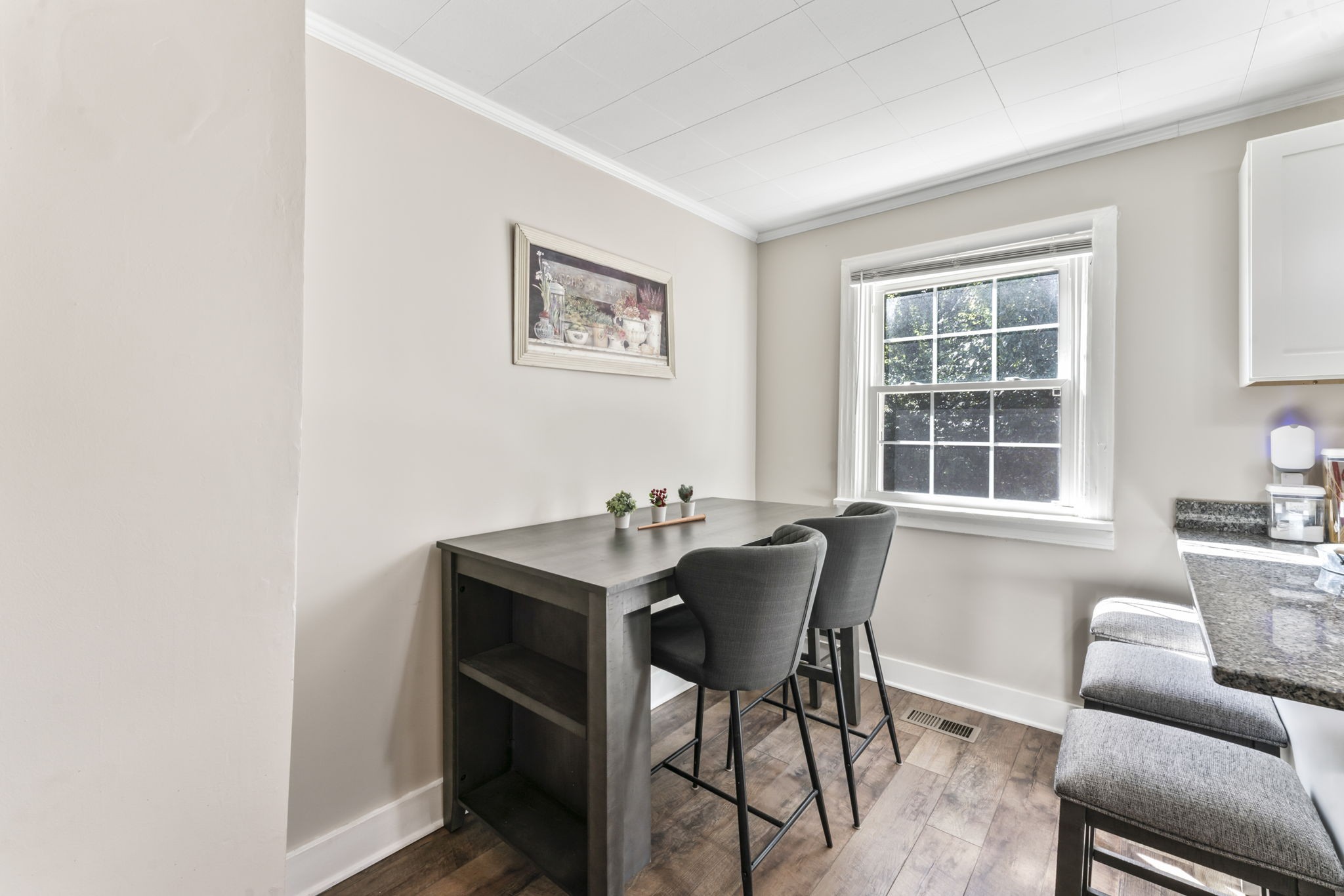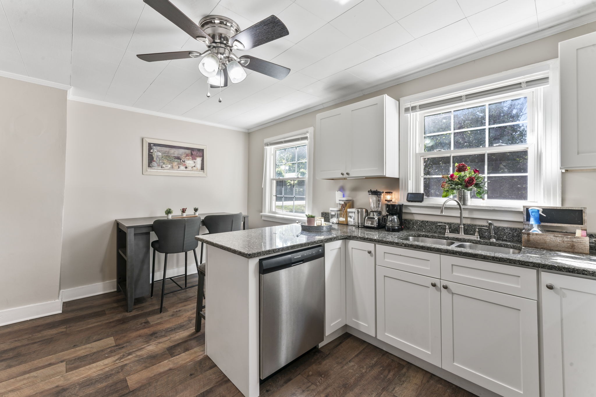 Step inside to find a sun-soaked living room that flows effortlessly into an open-concept kitchen and dining area—ideal for hosting friends or enjoying cozy nights in. Every corner of this home has been refreshed, giving it a clean, contemporary feel while maintaining its original character.