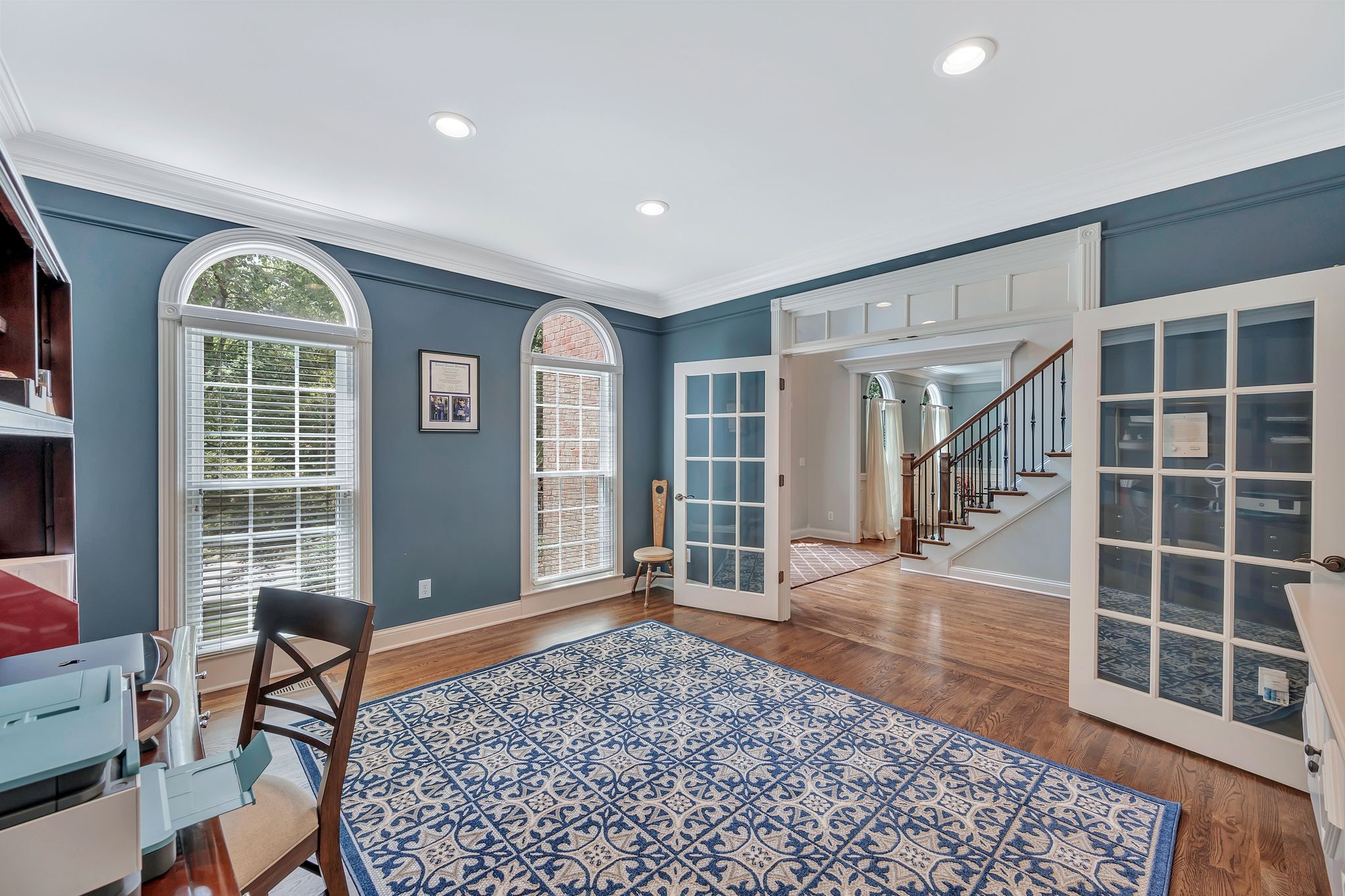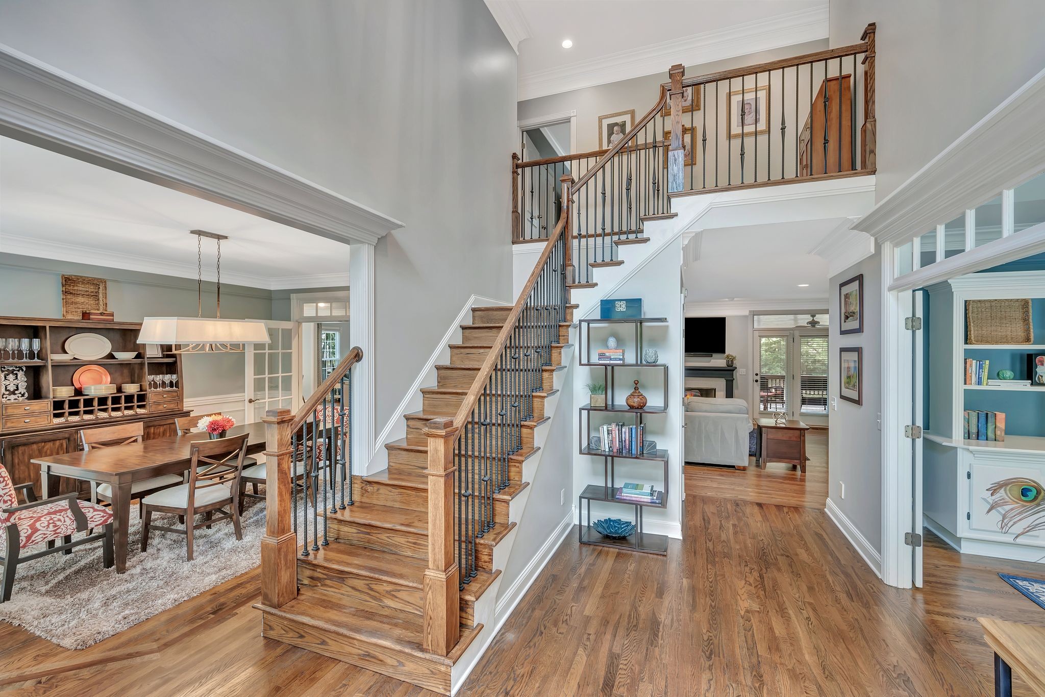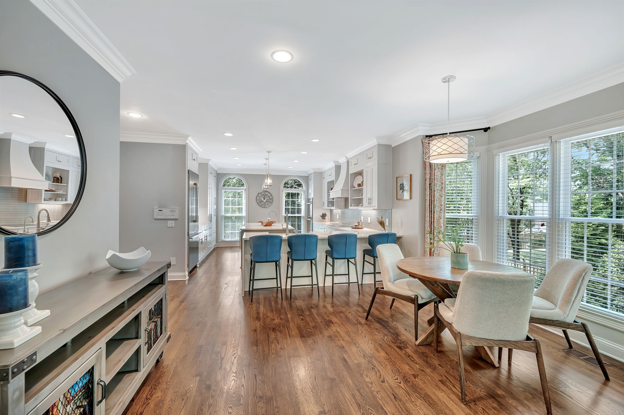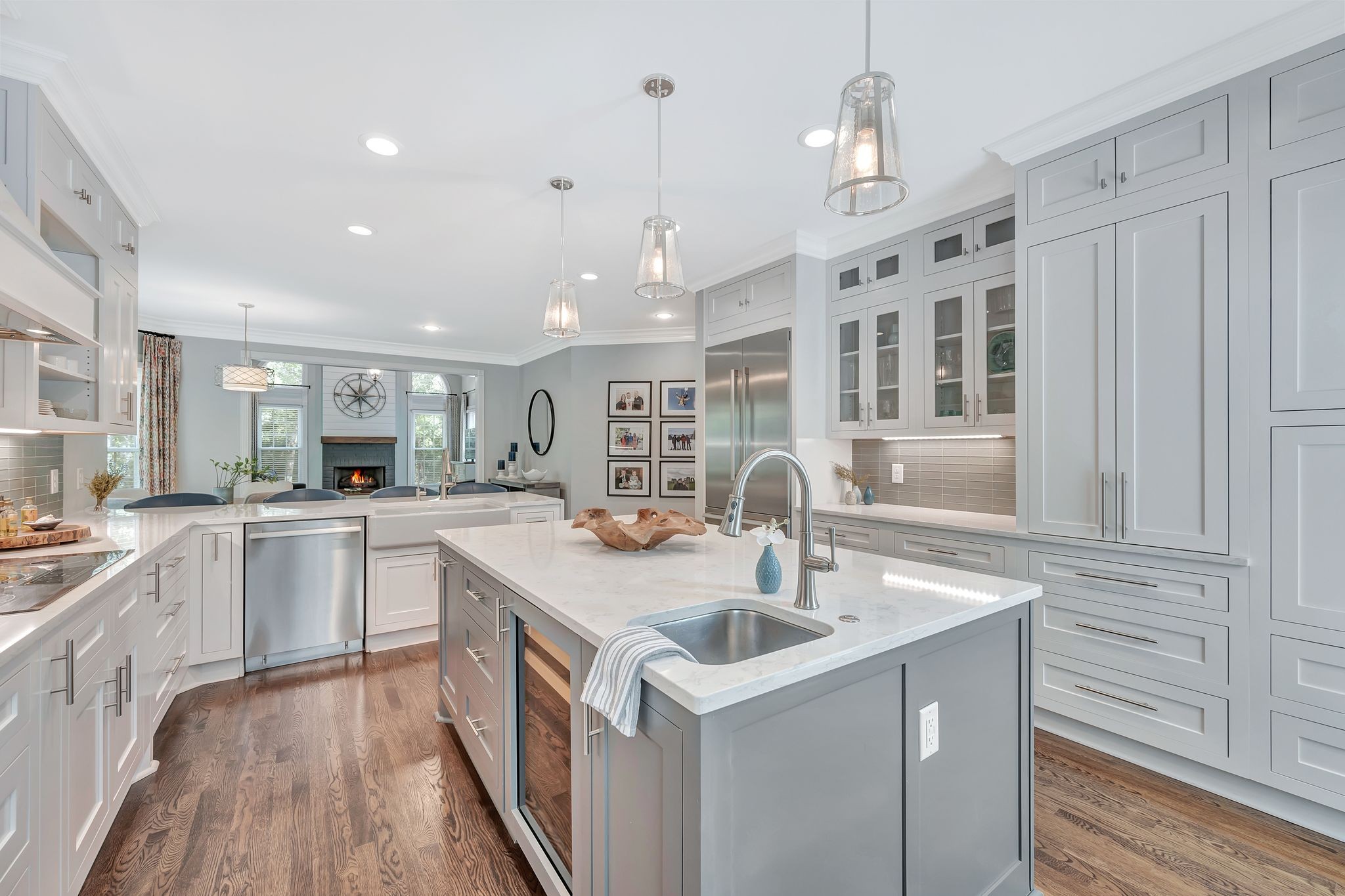 On the fully finished lower level, enjoy a stylish entertaining area with a custom wet bar, a full nanny/in-law suite, and a spacious workout/flex room. The 3.5-car garage includes epoxy floors and extra storage, perfect for all your needs.