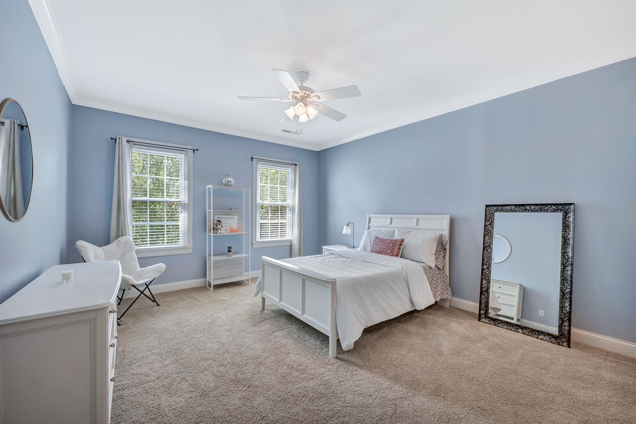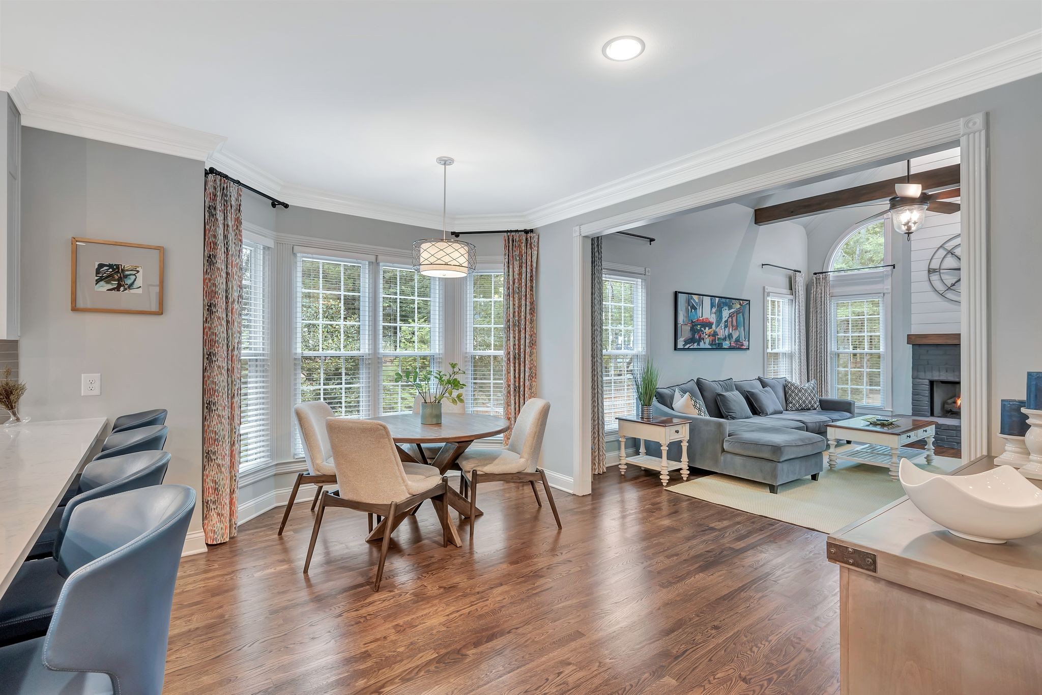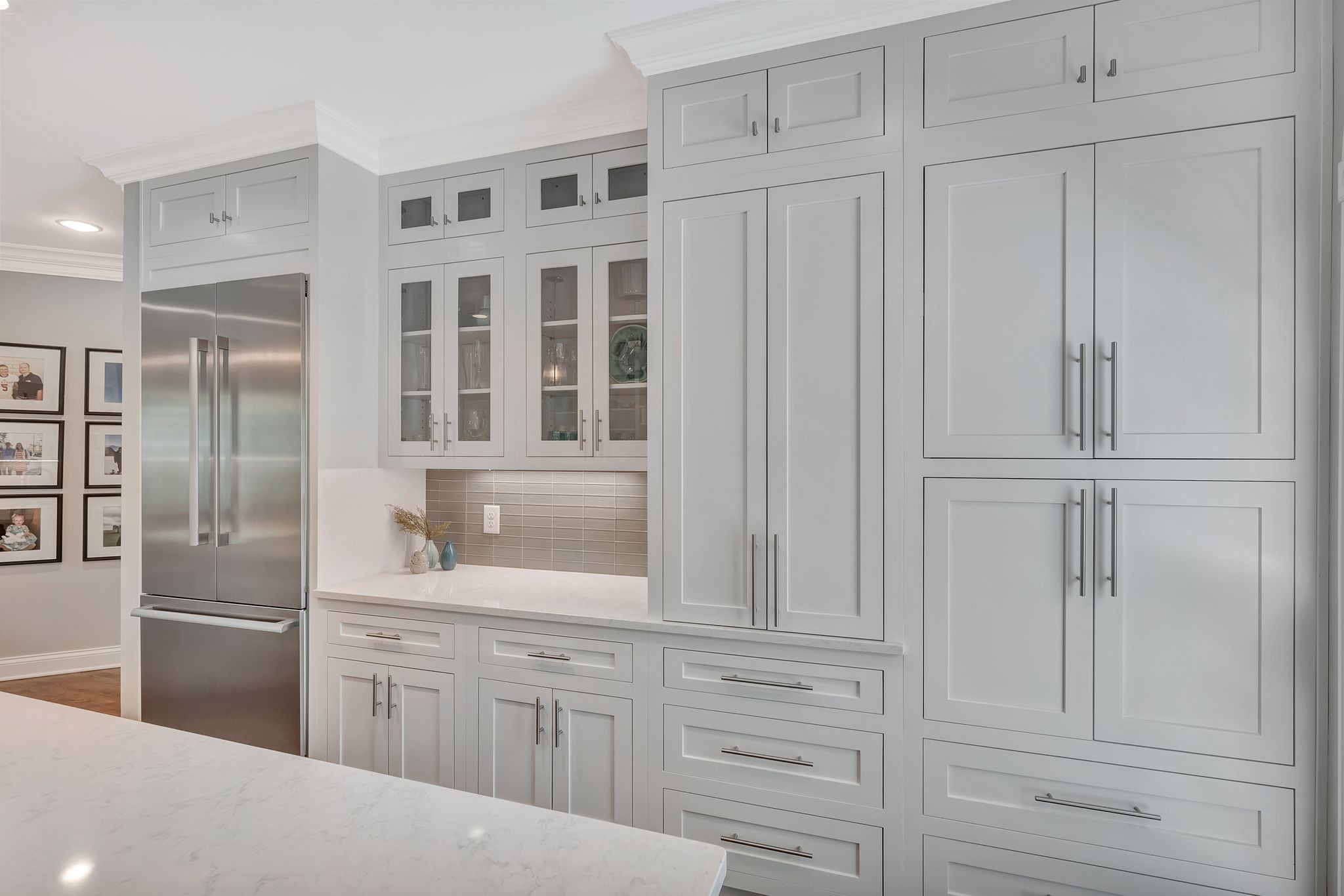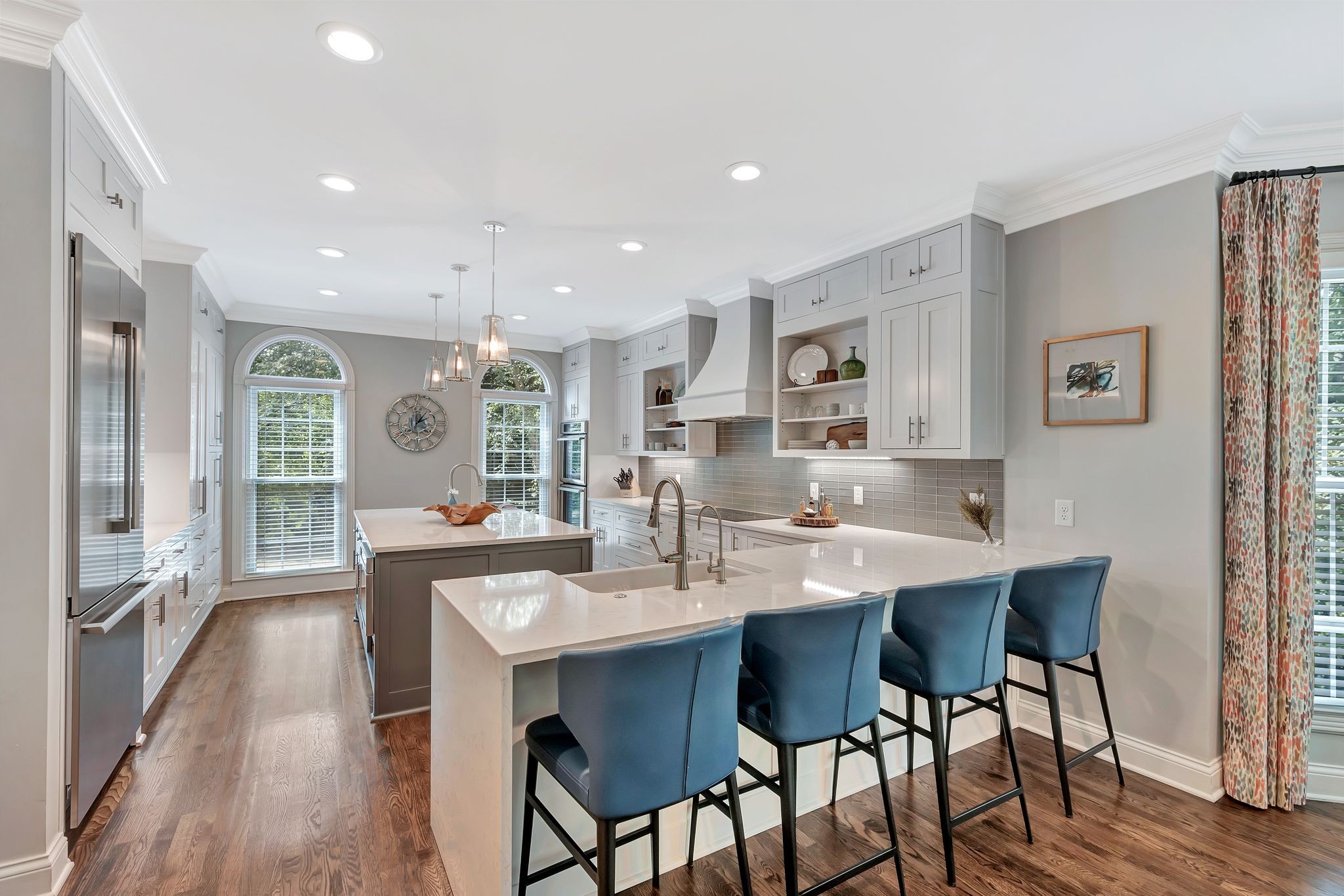 On the fully finished lower level, enjoy a stylish entertaining area with a custom wet bar, a full nanny/in-law suite, and a spacious workout/flex room. The 3.5-car garage includes epoxy floors and extra storage, perfect for all your needs.