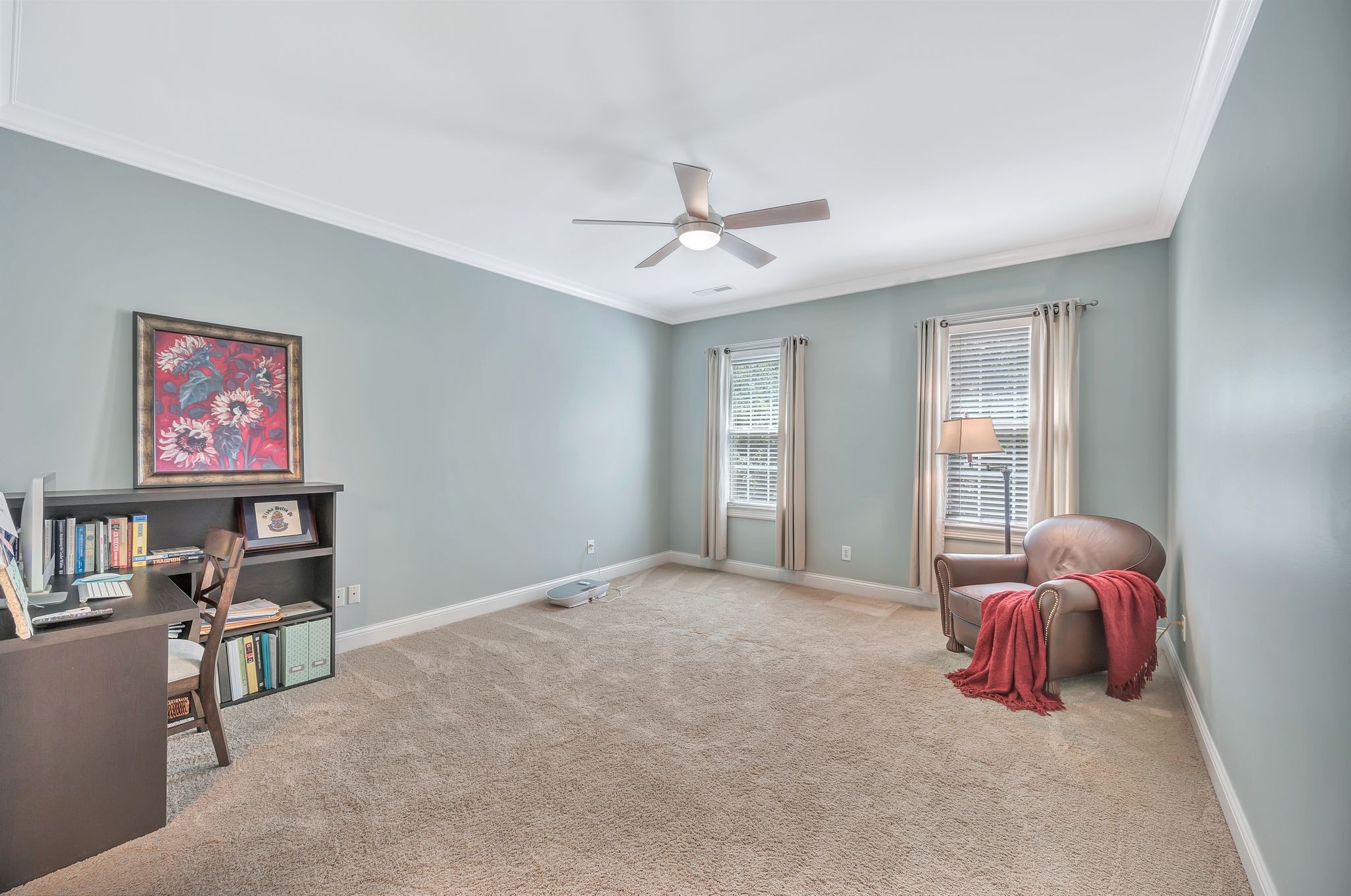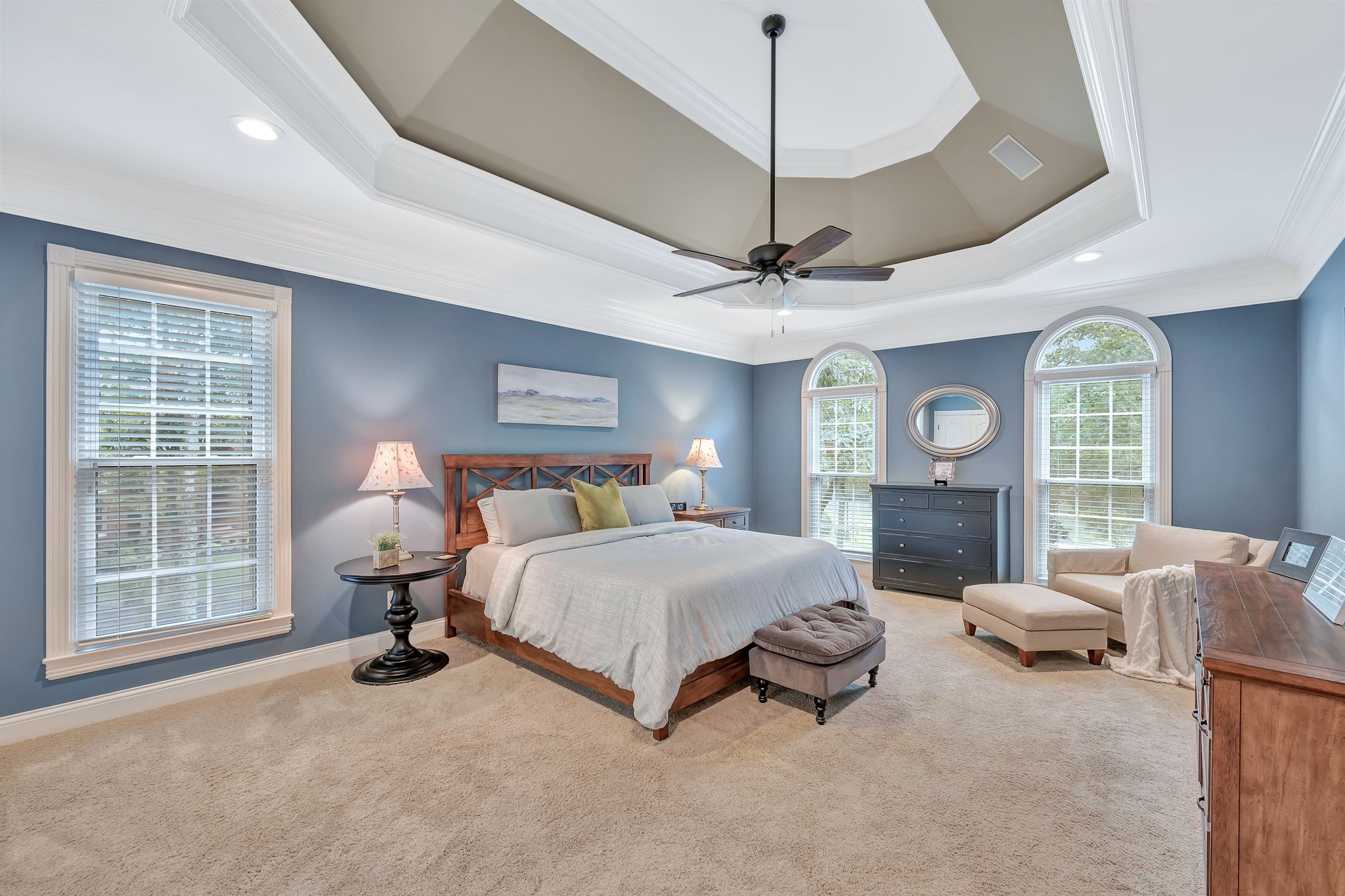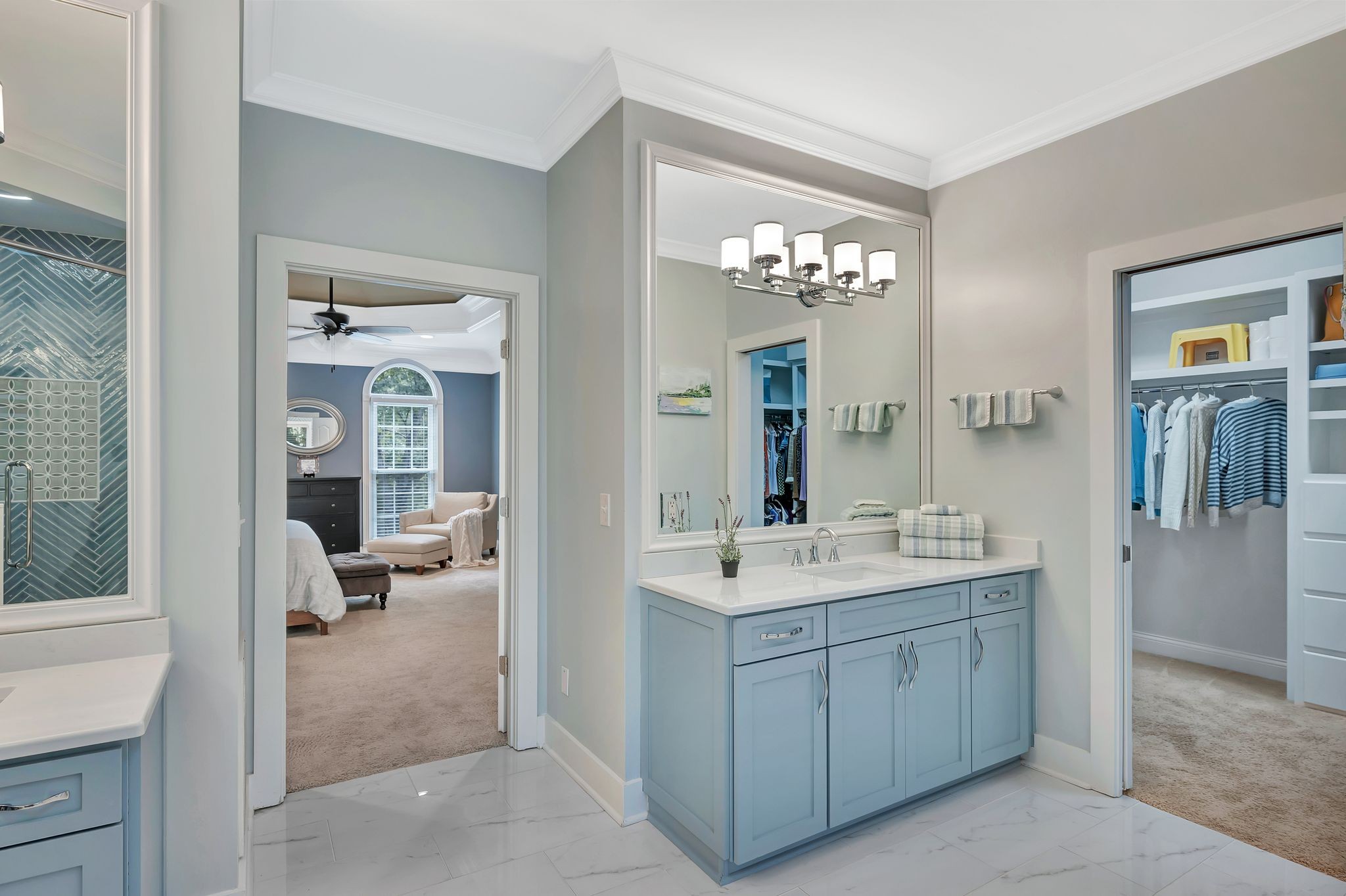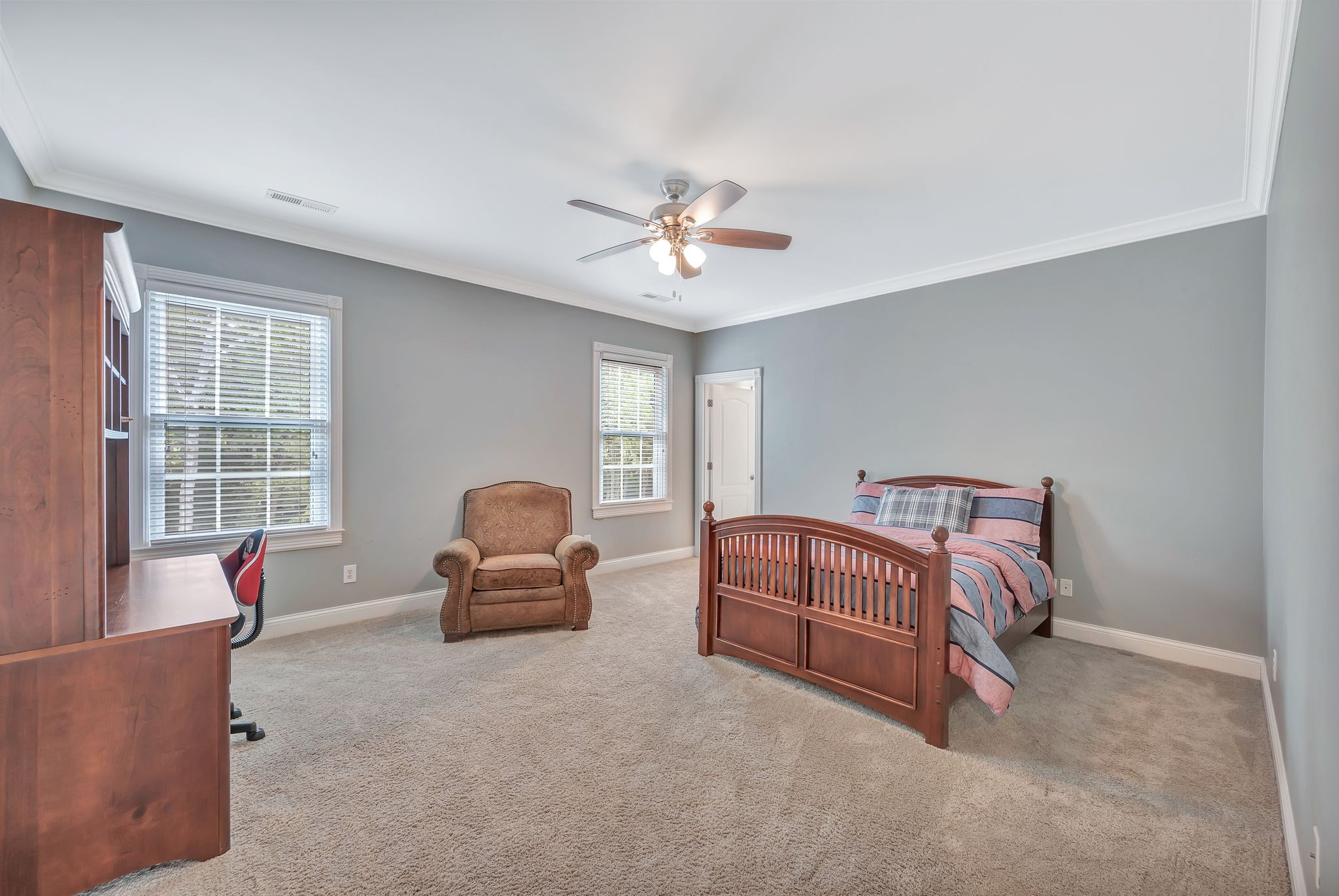 On the fully finished lower level, enjoy a stylish entertaining area with a custom wet bar, a full nanny/in-law suite, and a spacious workout/flex room. The 3.5-car garage includes epoxy floors and extra storage, perfect for all your needs.