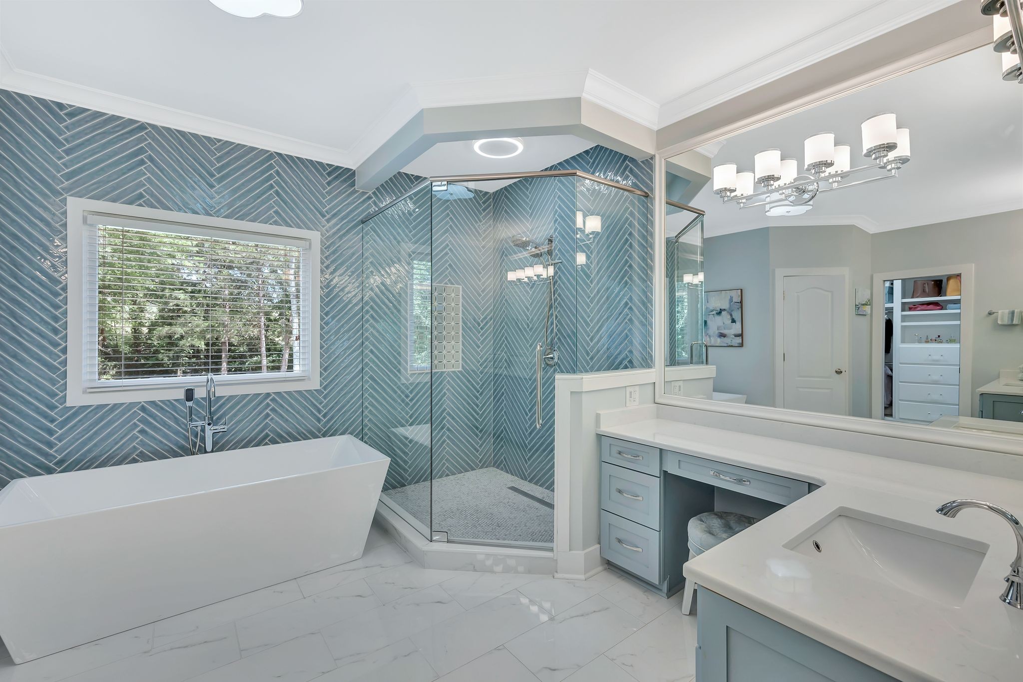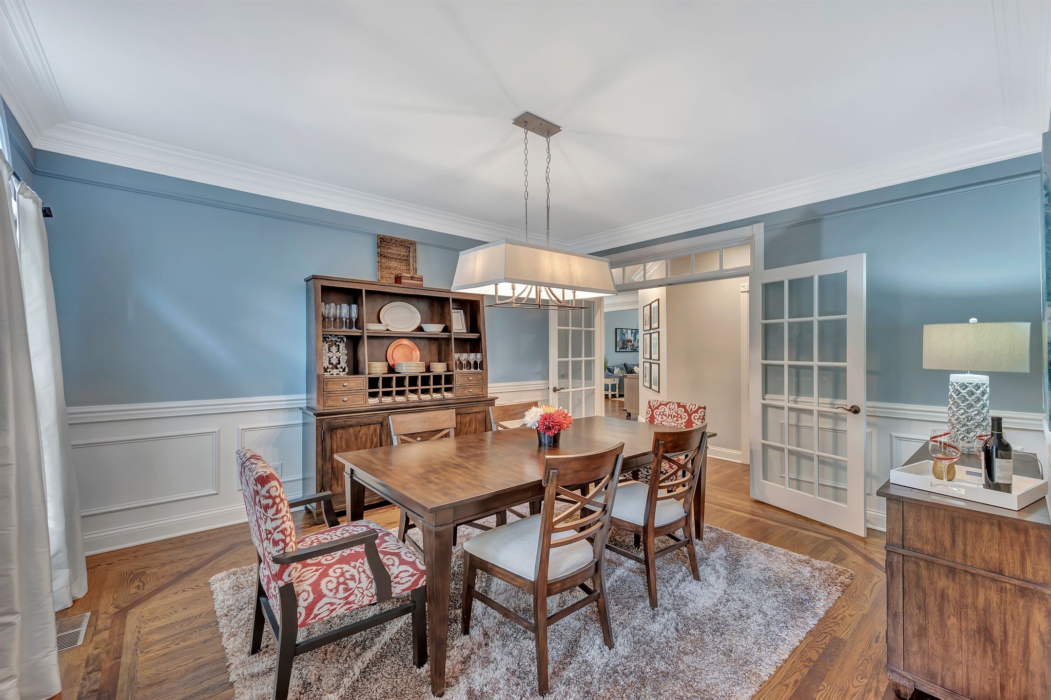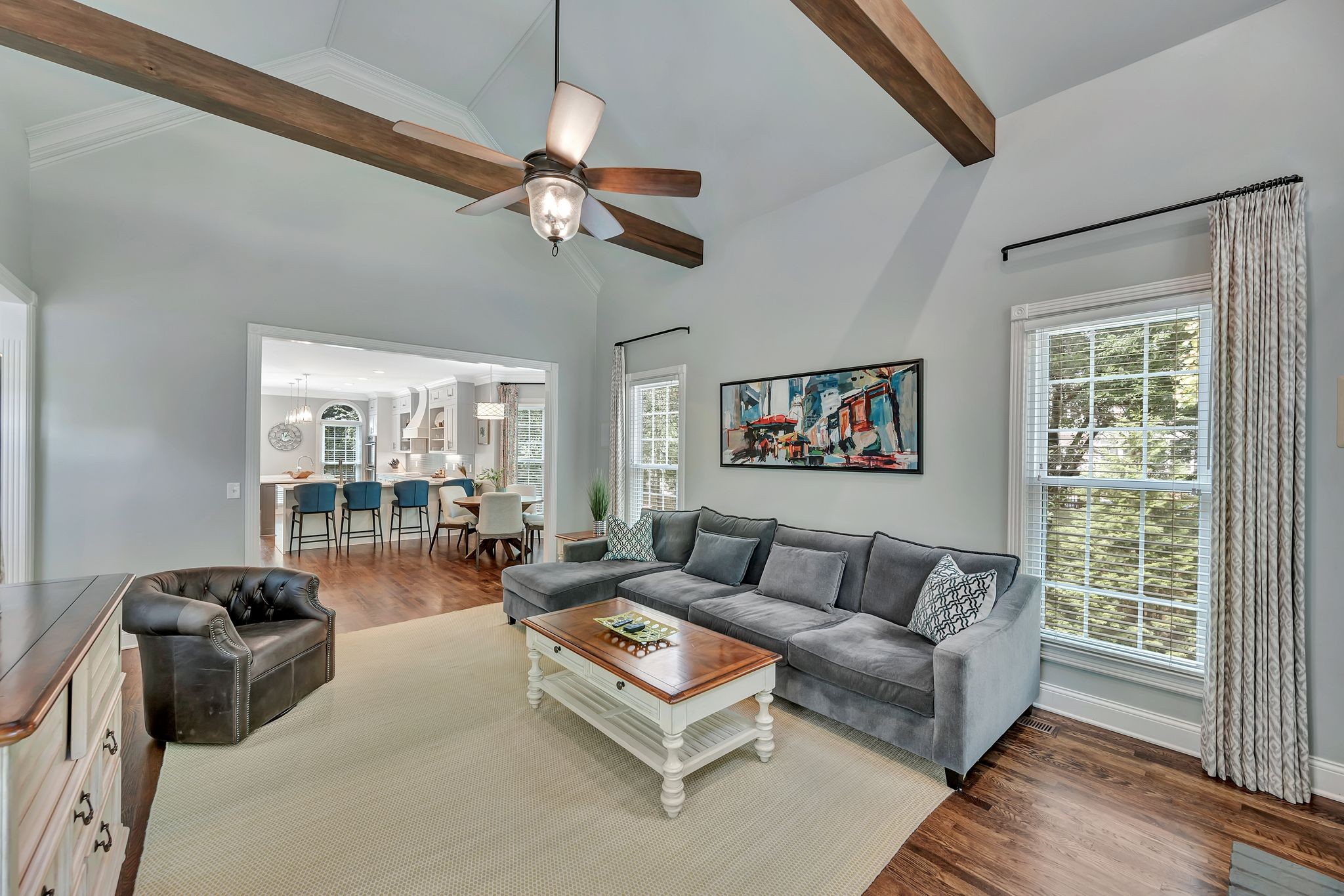 Step inside to over 6,000 square feet of refined living space, featuring a recent high-end renovation. With 5 oversized bedrooms and 5.5 luxurious baths, this home blends classic style with modern sophistication. The show-stopping living room boasts soaring ceilings, exposed wood beams, and abundant natural light. The heart of the home is the gourmet kitchen, complete with designer cabinetry, quartz countertops, and top-of-the-line Thermador appliances—a chef’s dream. The luxurious primary suite offers a true retreat, with a spa-inspired bath, featuring a freestanding soaking tub and a stunning oversized shower.
