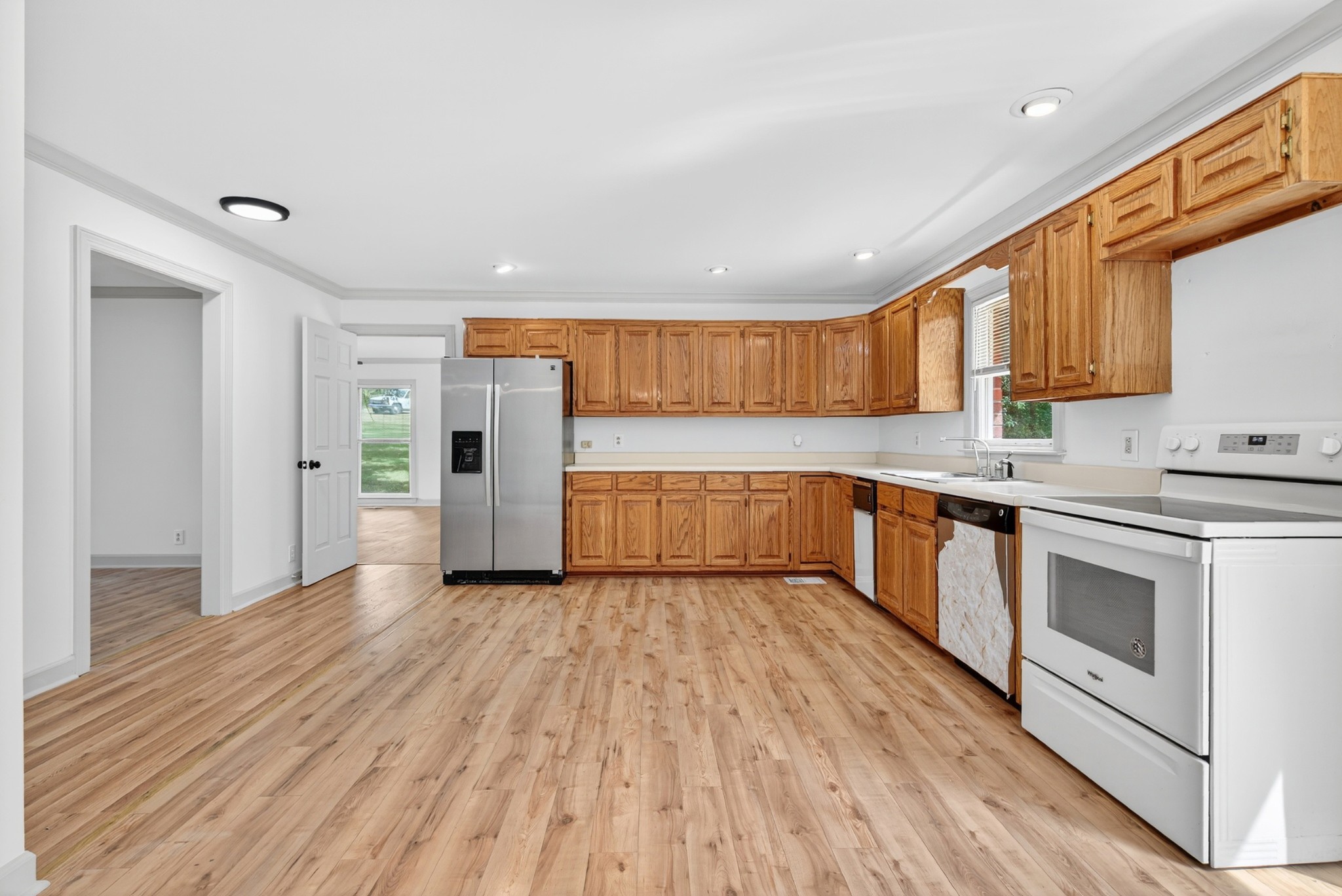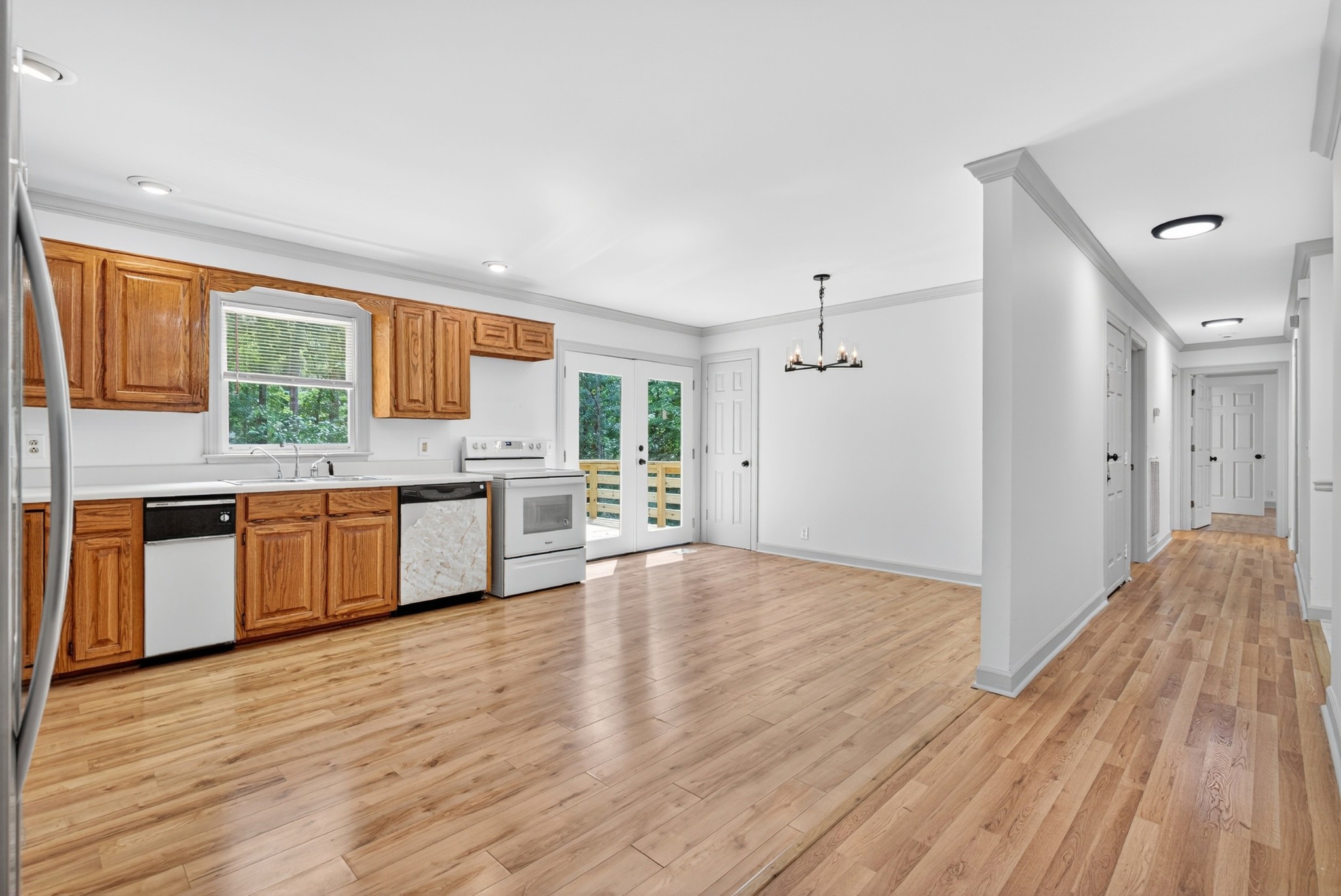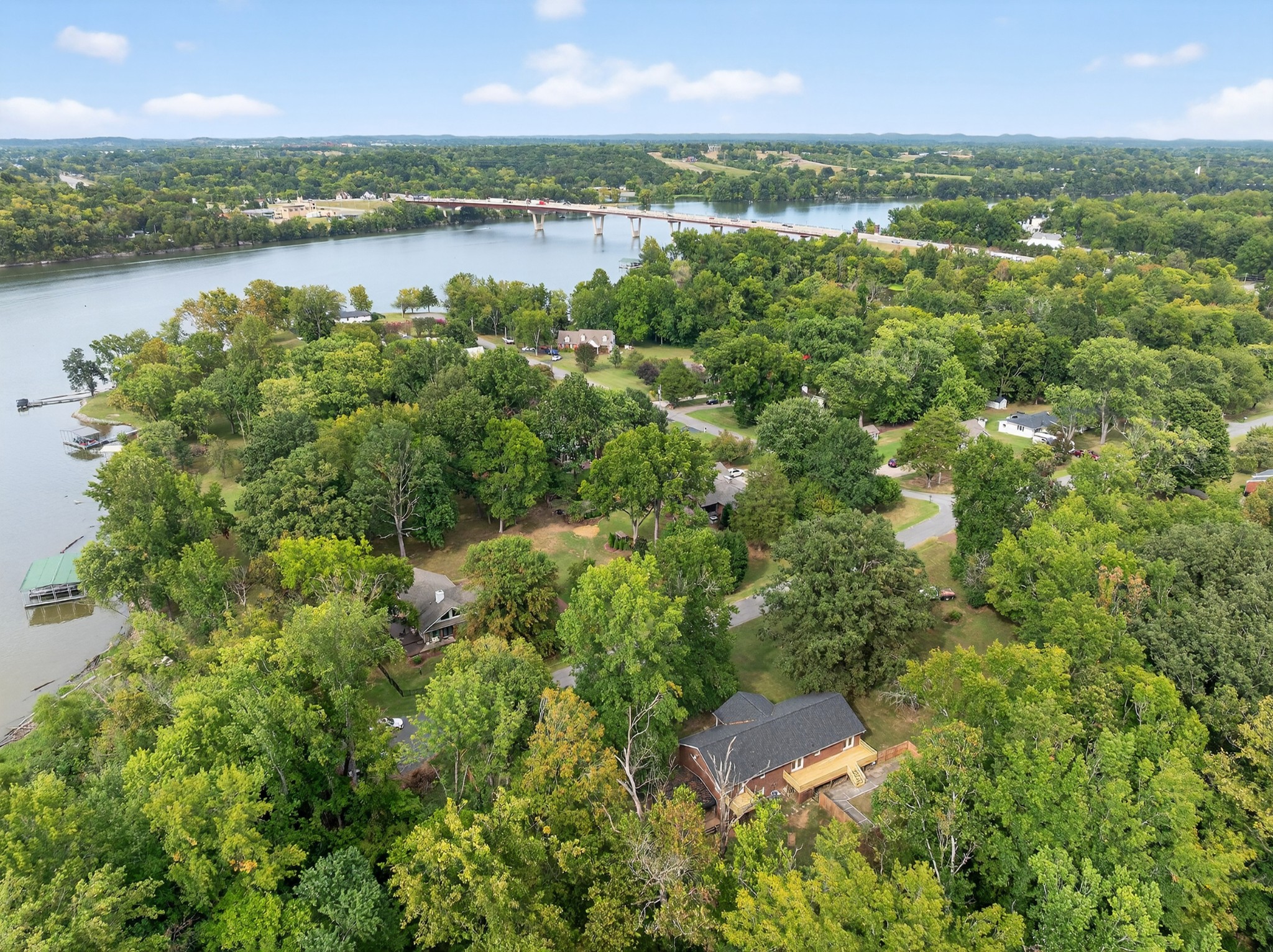 Lake front home. The corp property has is grown over.. This remodeled one level brick ranch home with a full unfinished basement and two car garage backs up to the corps of engineers property! View the main channel view of the lake from the front porch! Boat launch and recreation area are located at the end of the street New LVP flooring put down, new decks, and repainted throughout! Come check it out!
