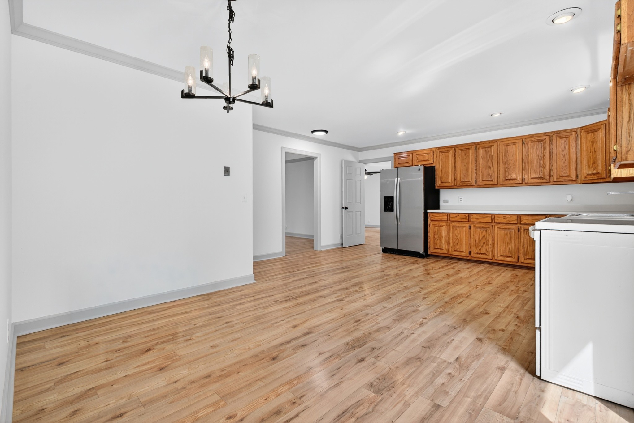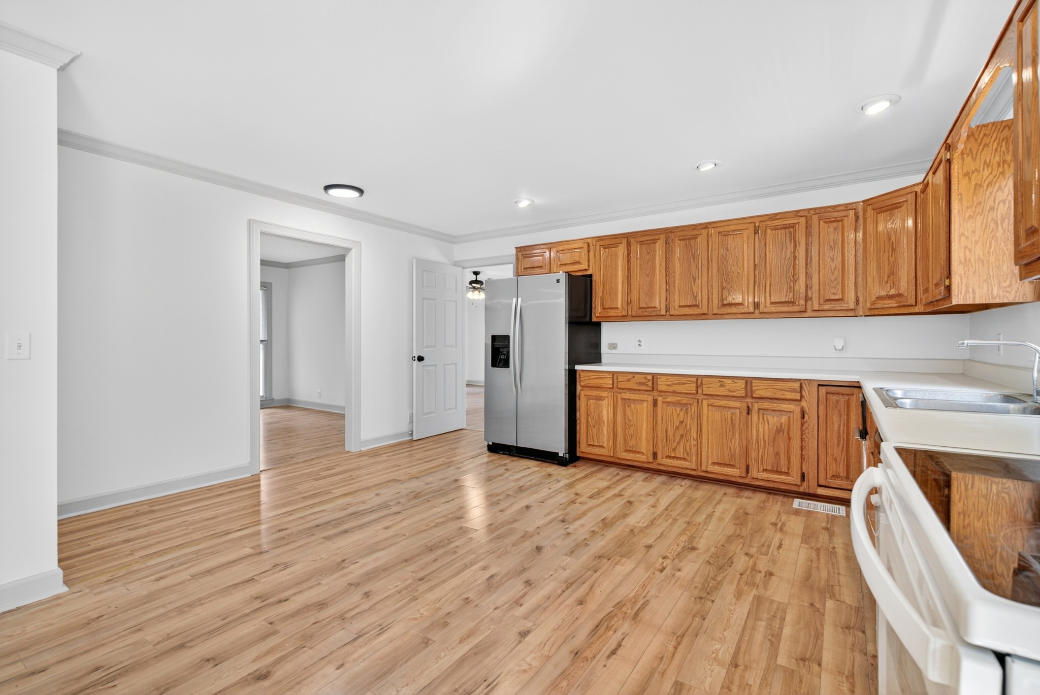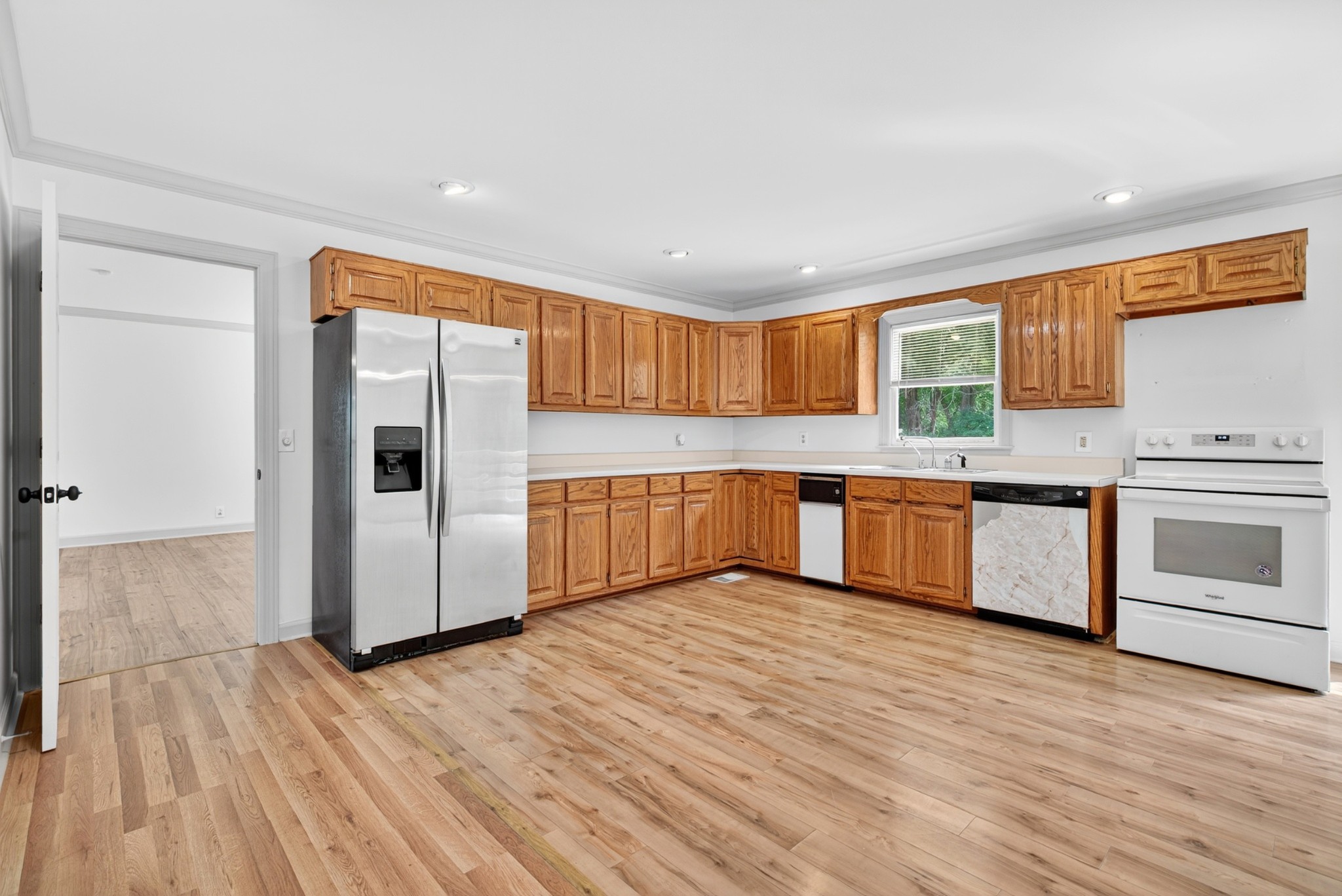 Lake front home. The corp property has is grown over.. This remodeled one level brick ranch home with a full unfinished basement and two car garage backs up to the corps of engineers property! View the main channel view of the lake from the front porch! Boat launch and recreation area are located at the end of the street New LVP flooring put down, new decks, and repainted throughout! Come check it out!