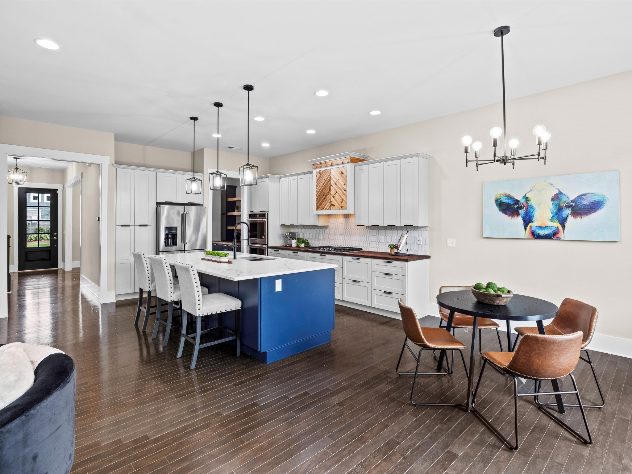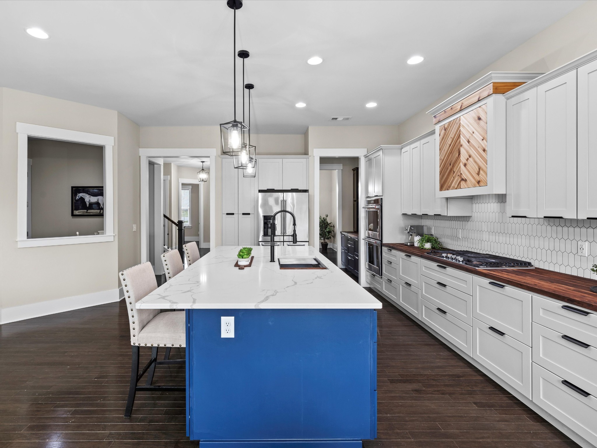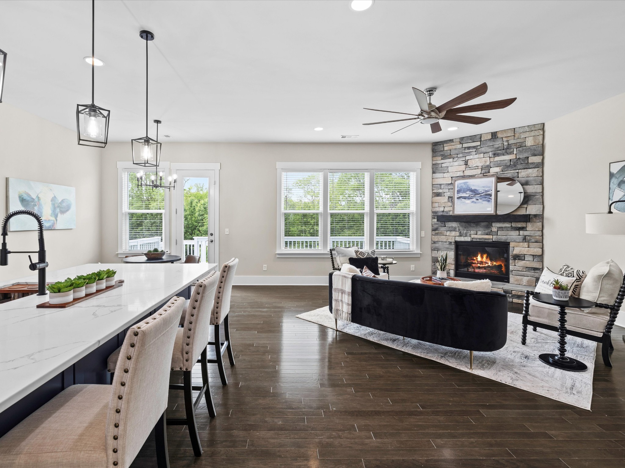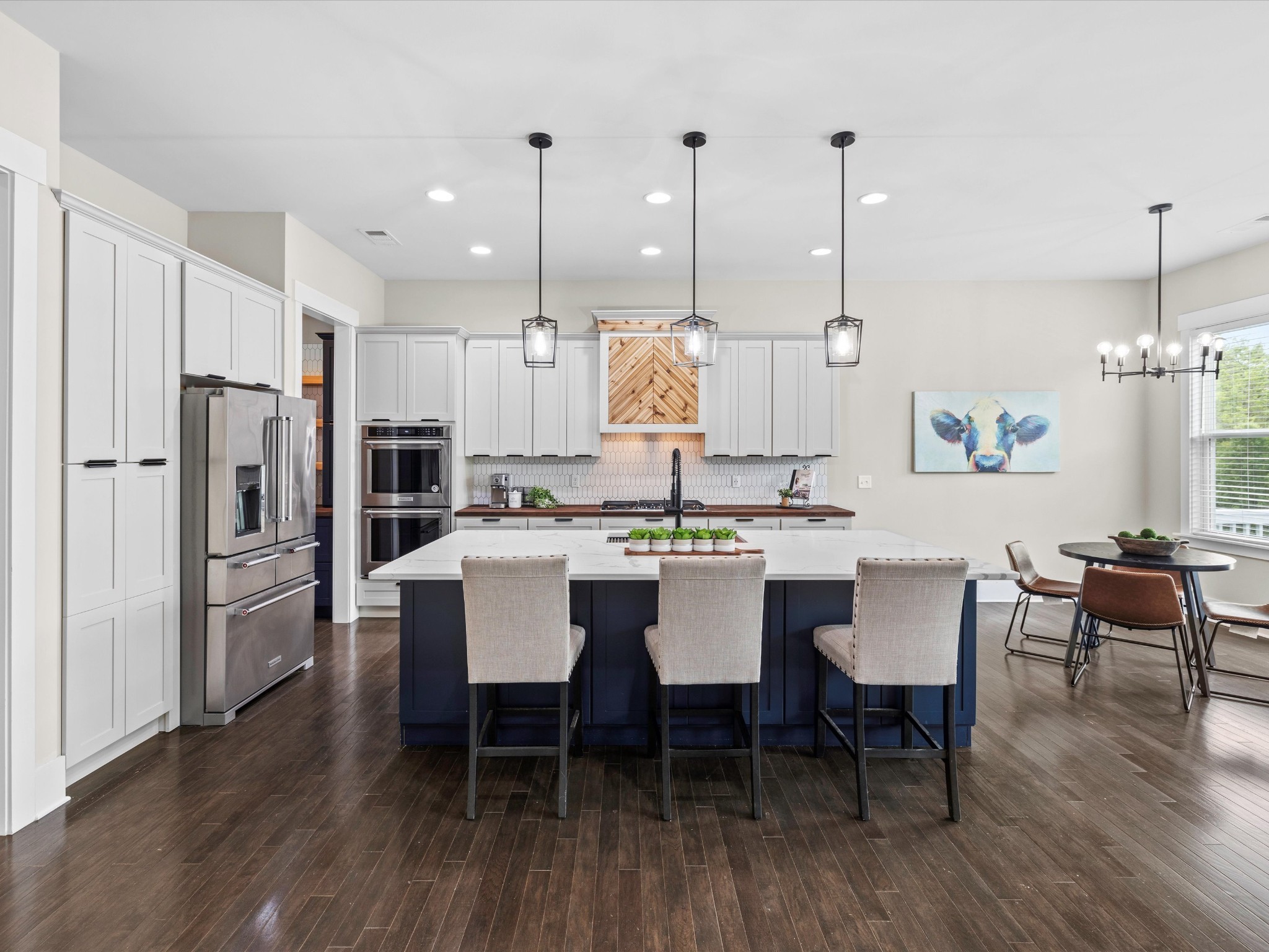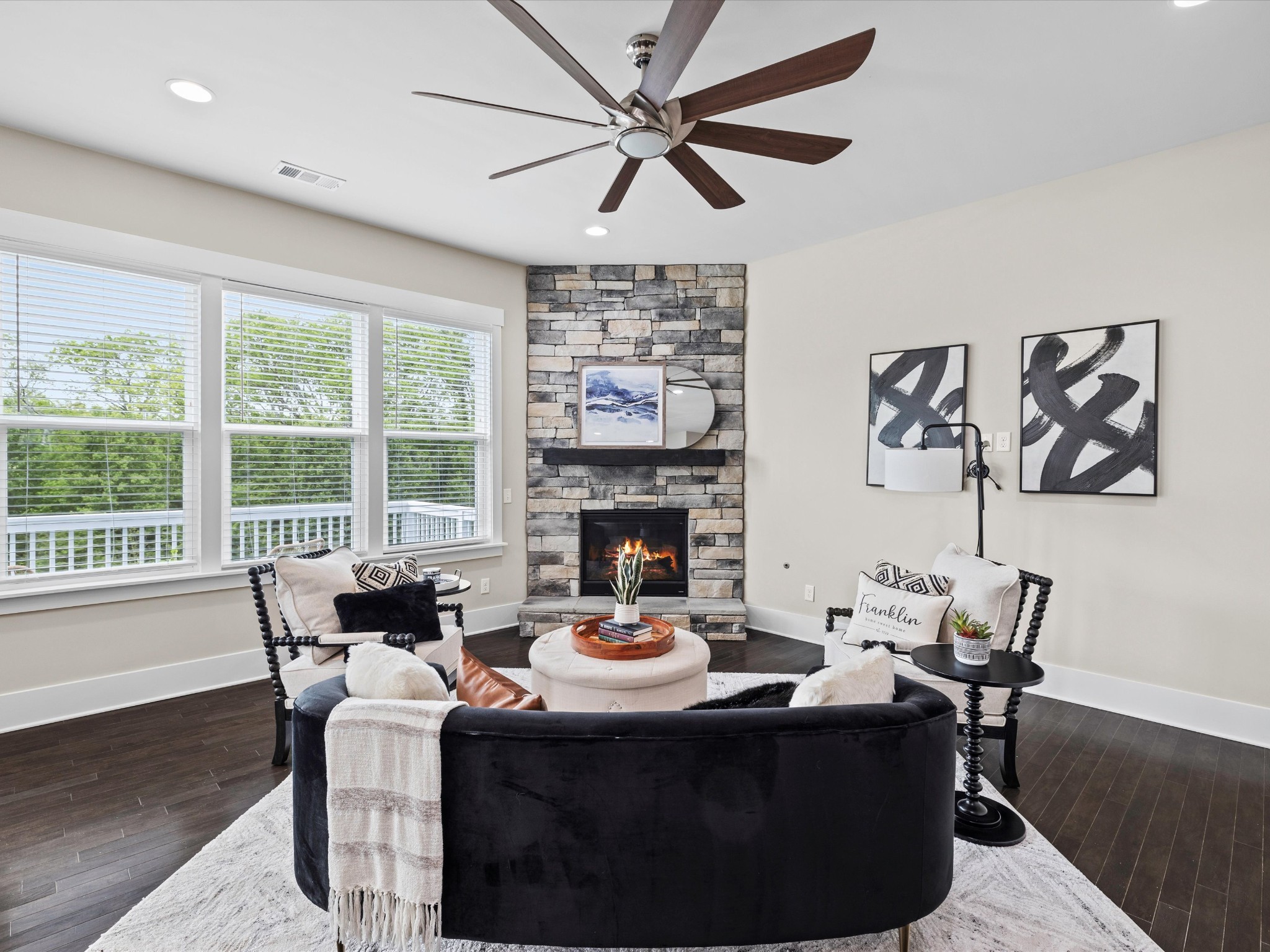 $10,000 incentive being offered to buyers! Welcome to 1068 Amelia Park Drive, a stunning home in the heart of Franklin, TN, that perfectly blends farmhouse charm with modern comfort. This beautifully crafted residence offers 4,251 square feet of thoughtfully designed living space, featuring 5 spacious bedrooms and 3.5 luxurious bathrooms. A 12x10 room in the basement offers flexibility as a possible 6th bedroom. Step inside to an open floor plan with soaring 10-foot ceilings, abundant natural light, and high-end finishes throughout. The main living area features a cozy fireplace and hardwood floors that flow seamlessly into the recently renovated gourmet kitchen. Designed for the culinary enthusiast, the kitchen includes stainless steel appliances, a gas cook top, double ovens, quartz countertops, a large island, and custom cabinetry. An adjacent eating area is perfect for everyday meals, while a separate dining room sets the stage for more formal gatherings. Between the kitchen and dining room, a butler's pantry and a walk-in pantry offer convenient storage. A centrally located command center provides a perfect workspace for managing the home or completing schoolwork. A private home office completes the main level. Upstairs, the primary suite is a private retreat with a spa-like bath, featuring separate vanities, a soaking tub, shower, and two generous walk-in closets. Three additional bedrooms and a versatile bonus room—ideal for movies or gaming—complete the second floor. The basement adds even more living space with a large recreational room, an exercise room, extra storage, and outdoor access. Enjoy relaxing or entertaining on the covered patio or step up to the expansive deck overlooking a serene, tree-lined backyard. Located in the desirable Amelia Park community, this home offers proximity to Cool Springs, downtown Franklin, I-65, and top-rated schools. Experience the best of luxury living in one of Franklin’s most sought-after neighborhoods.