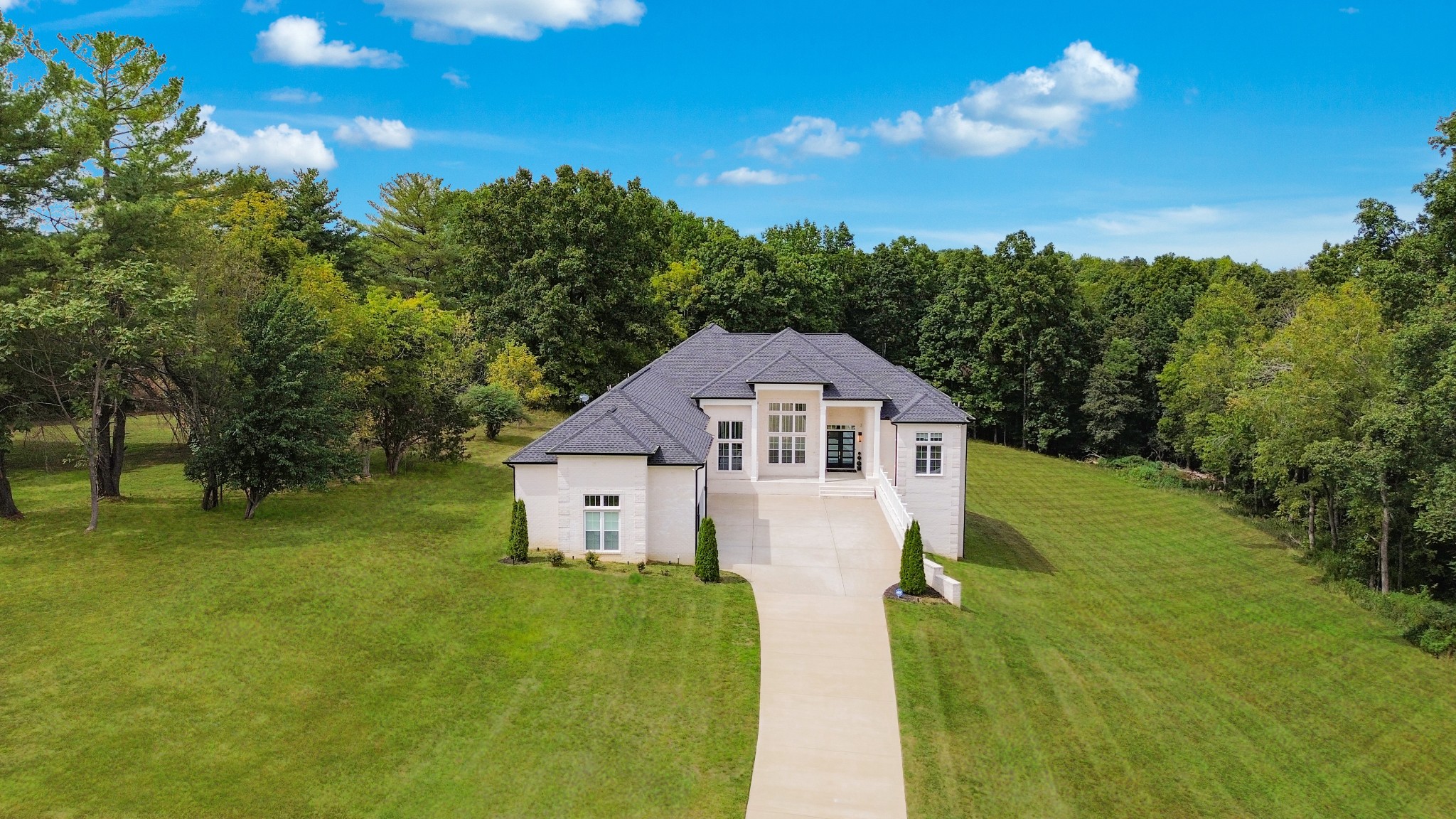 Enjoy outdoor living on the expansive screened-in patio (already plumbed for an outdoor kitchen) or relax on the private balcony off the primary bedroom. A 4-car attached garage with a Tesla charger, encapsulated crawl space with dehumidifier, and a long private concrete driveway complete this rare offering. Offering unmatched privacy, luxury, and convenience all within just 40 minutes of Nashville means this home won't last long!