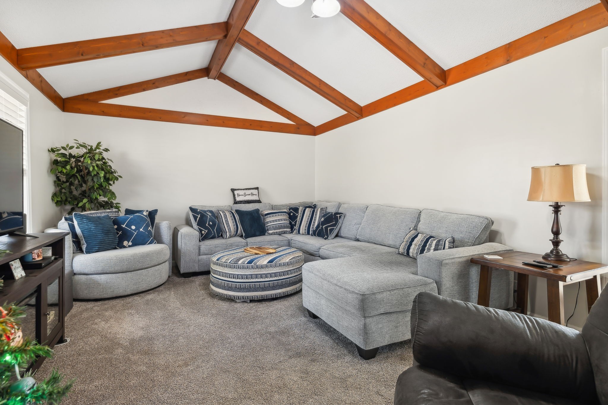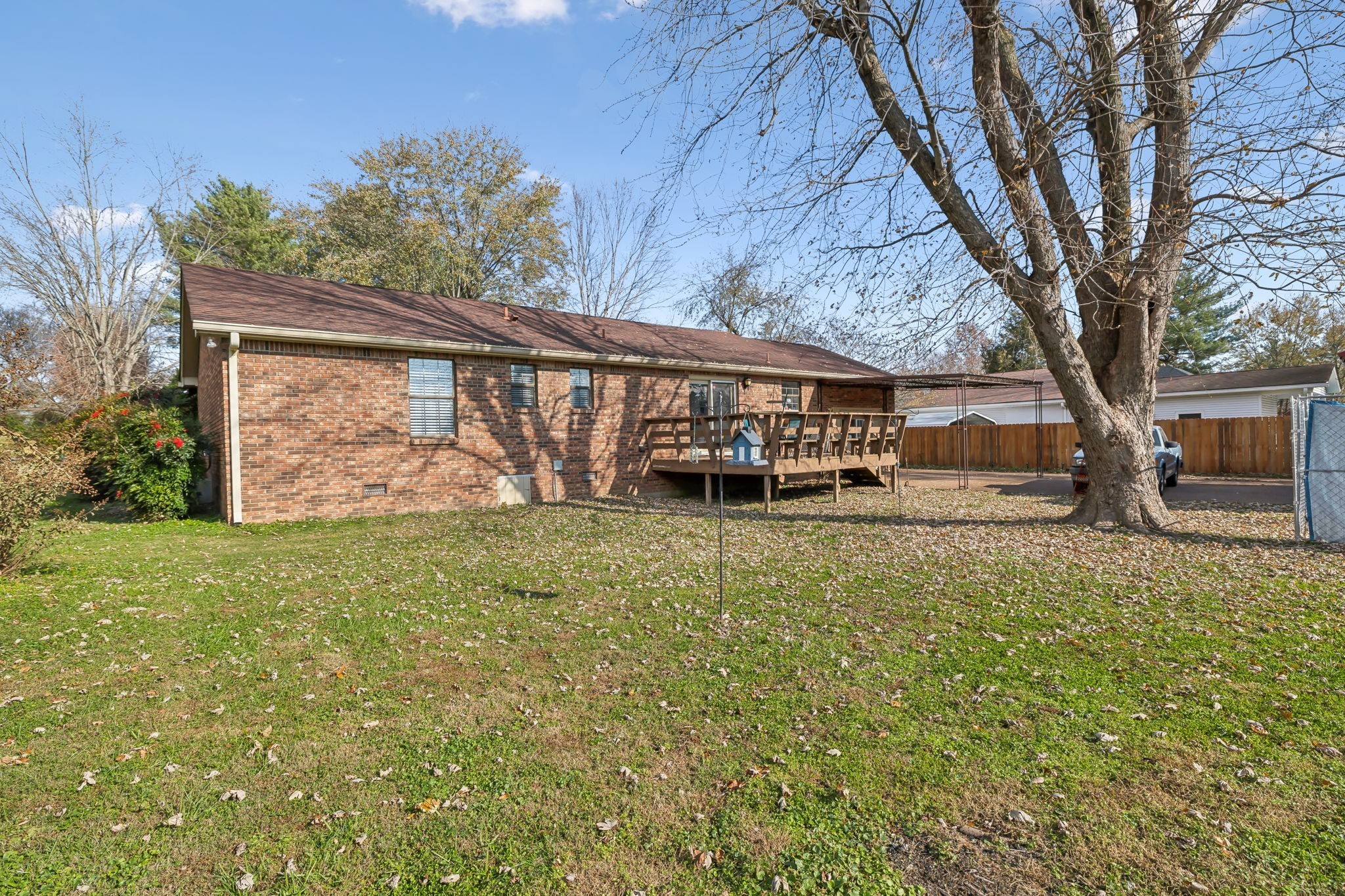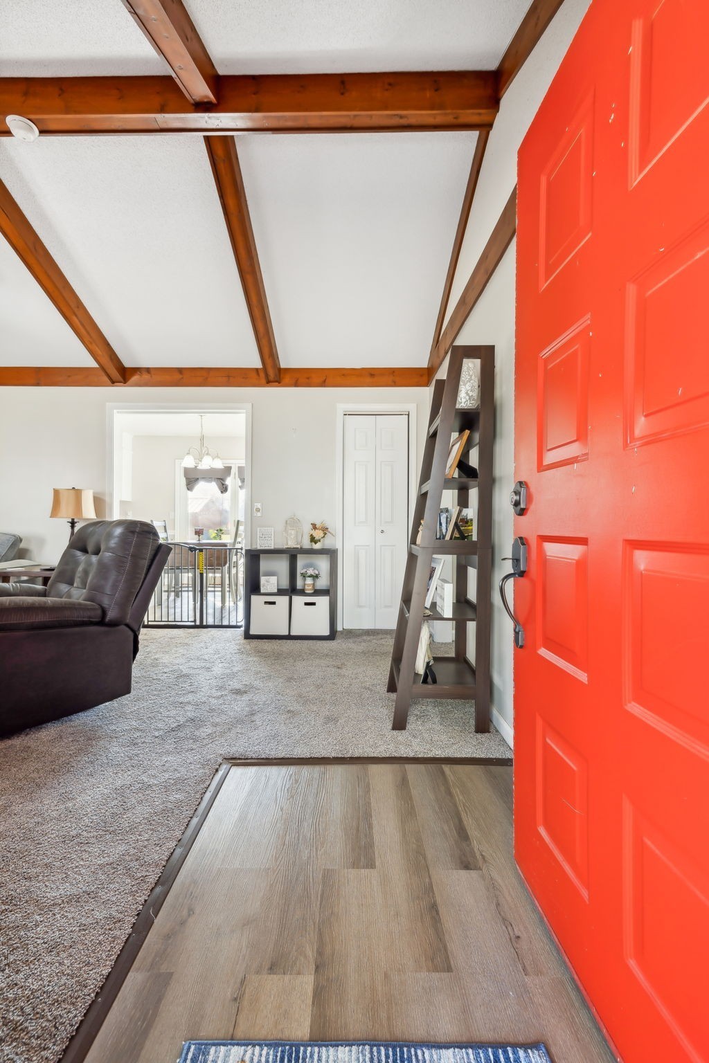 Inside, the living room shines with open wood beams, giving you that cozy Great Room vibe everyone loves. Step out front and sip sweet tea on your rocking chair porch, or head to the back deck overlooking a spacious yard that’s perfect for cookouts, pets, or a pickup soccer game. An attached carport and backyard storage building add plenty of everyday convenience.