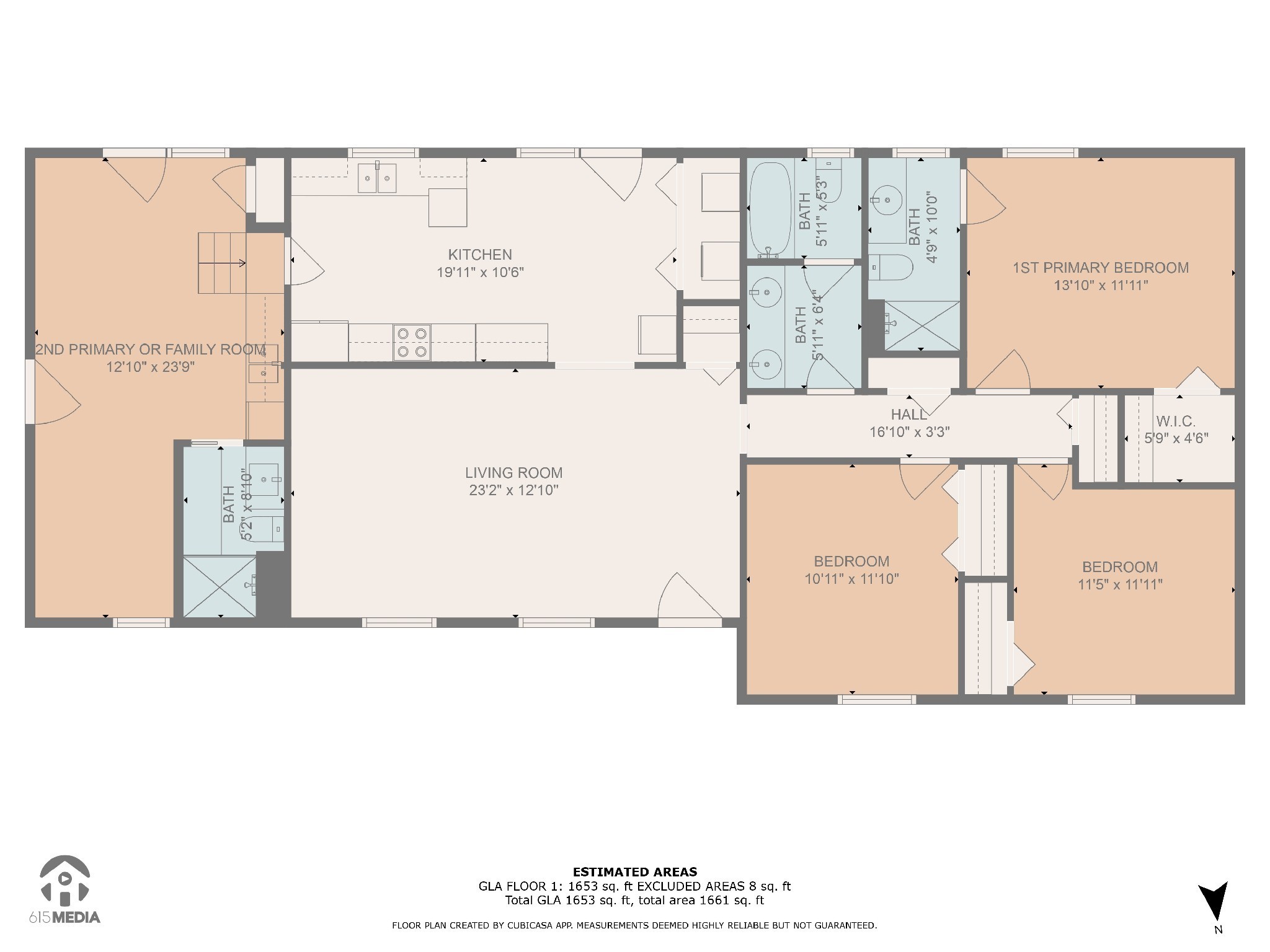 3 full baths 1,653sq. ft.