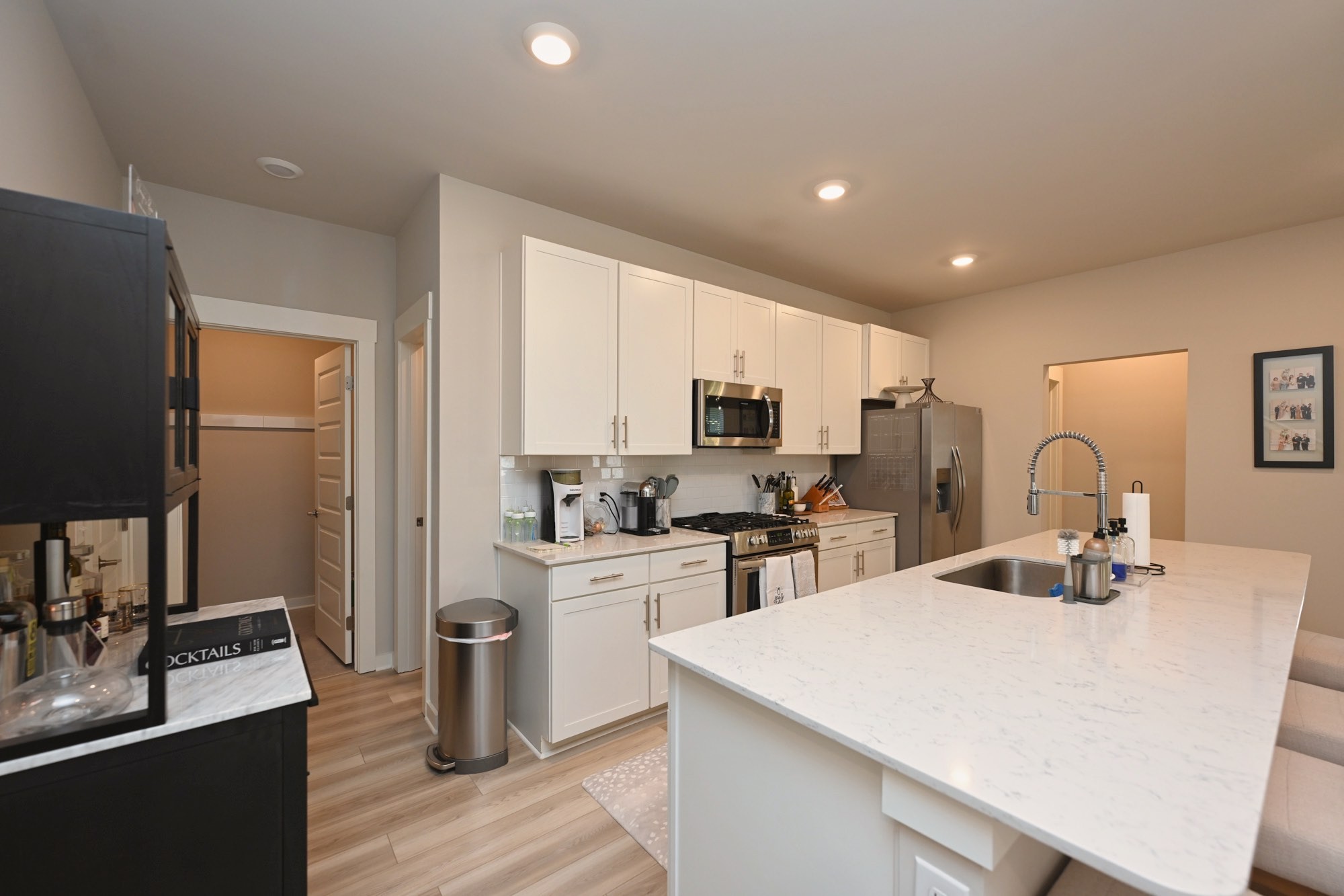 This stylish open-concept villa is designed for modern living, offering seamless flow between the spacious living, dining, and kitchen areas—perfect for entertaining. The chef’s kitchen features quartz countertops, stainless steel appliances, a gas stove, and a large island that is ideal for gathering. The main-level primary suite provides a relaxing retreat with a spa-like bath that includes a walk-in shower, double vanity, and walk-in closet. Also on the main level, you’ll find a second bedroom, full bath, and dedicated office, while upstairs an oversized bonus room offers flexible space that can be used as a bedroom, media room, or playroom. Luxury vinyl plank flooring runs throughout the main level for a clean and modern finish.