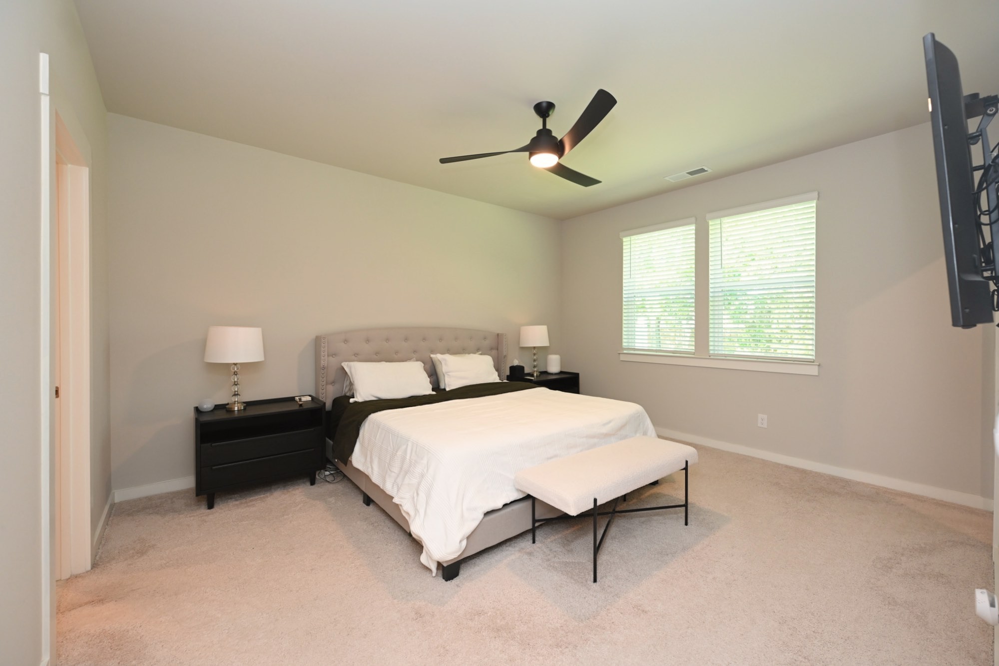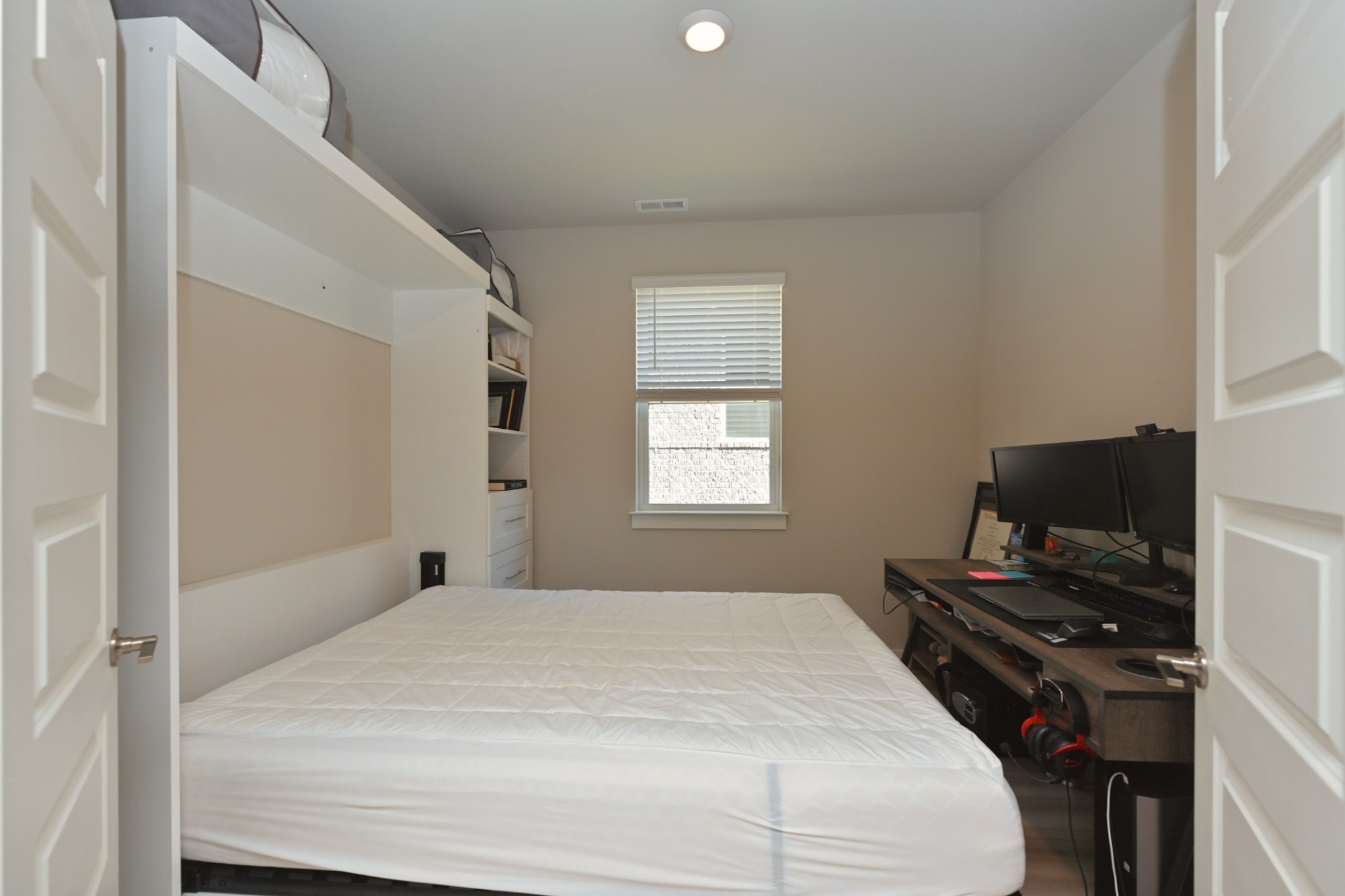 Lawn care is included, and pets will be considered on a case-by-case basis. The home comes with smart features including a garage door opener compatible with Amazon Key, a Ring alarm system with window and door sensors, keypad, motion detector, outdoor cameras, motion-detection floodlights, and a Ring doorbell. A Murphy bed in the office will remain with the built-in bookshelf and drawers (mattress not included), and an EV charger is installed in the garage for convenience.