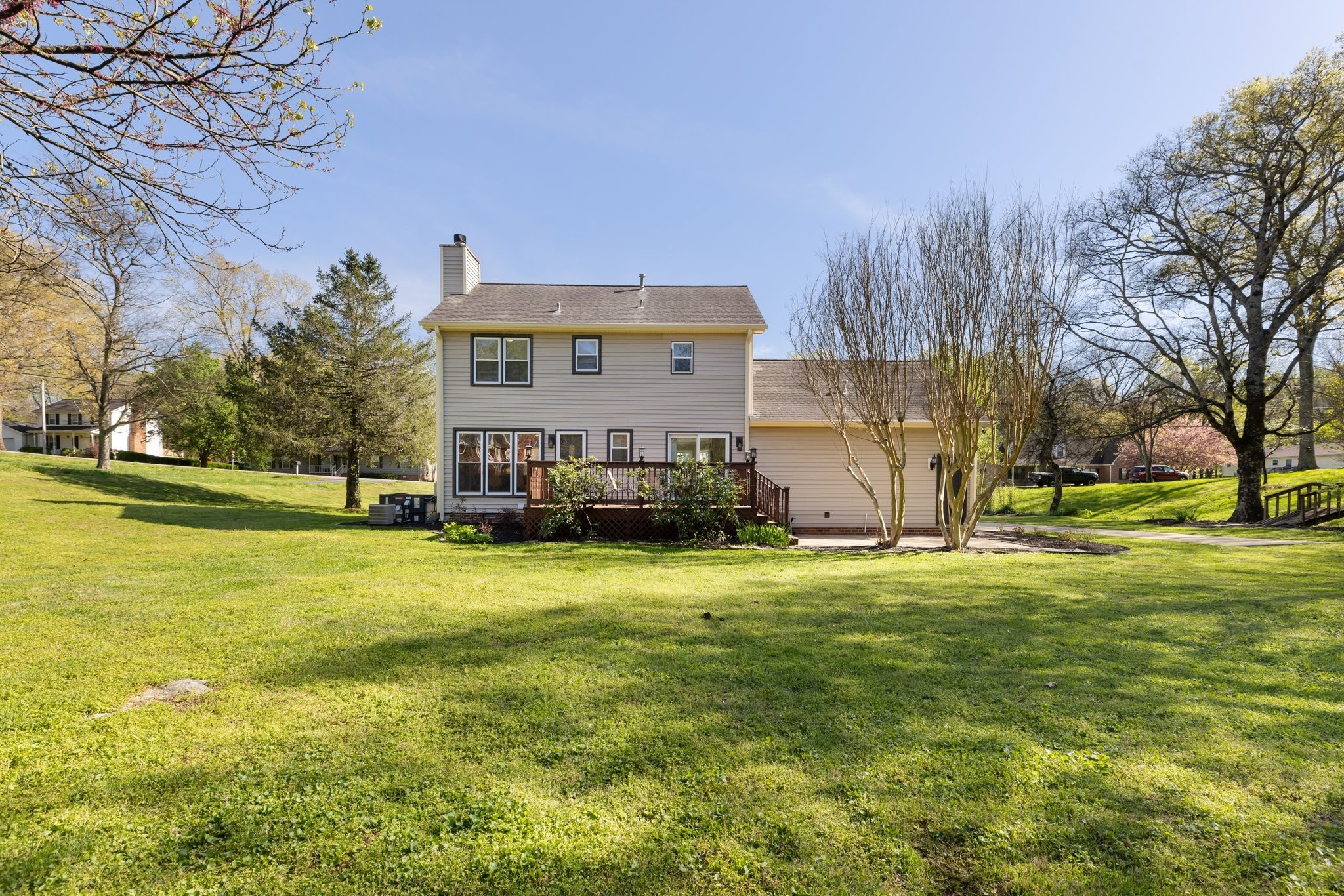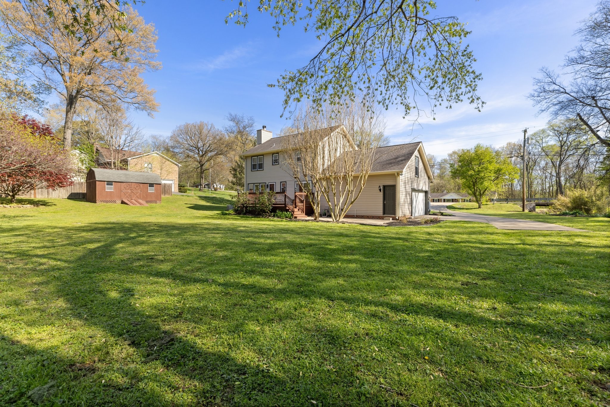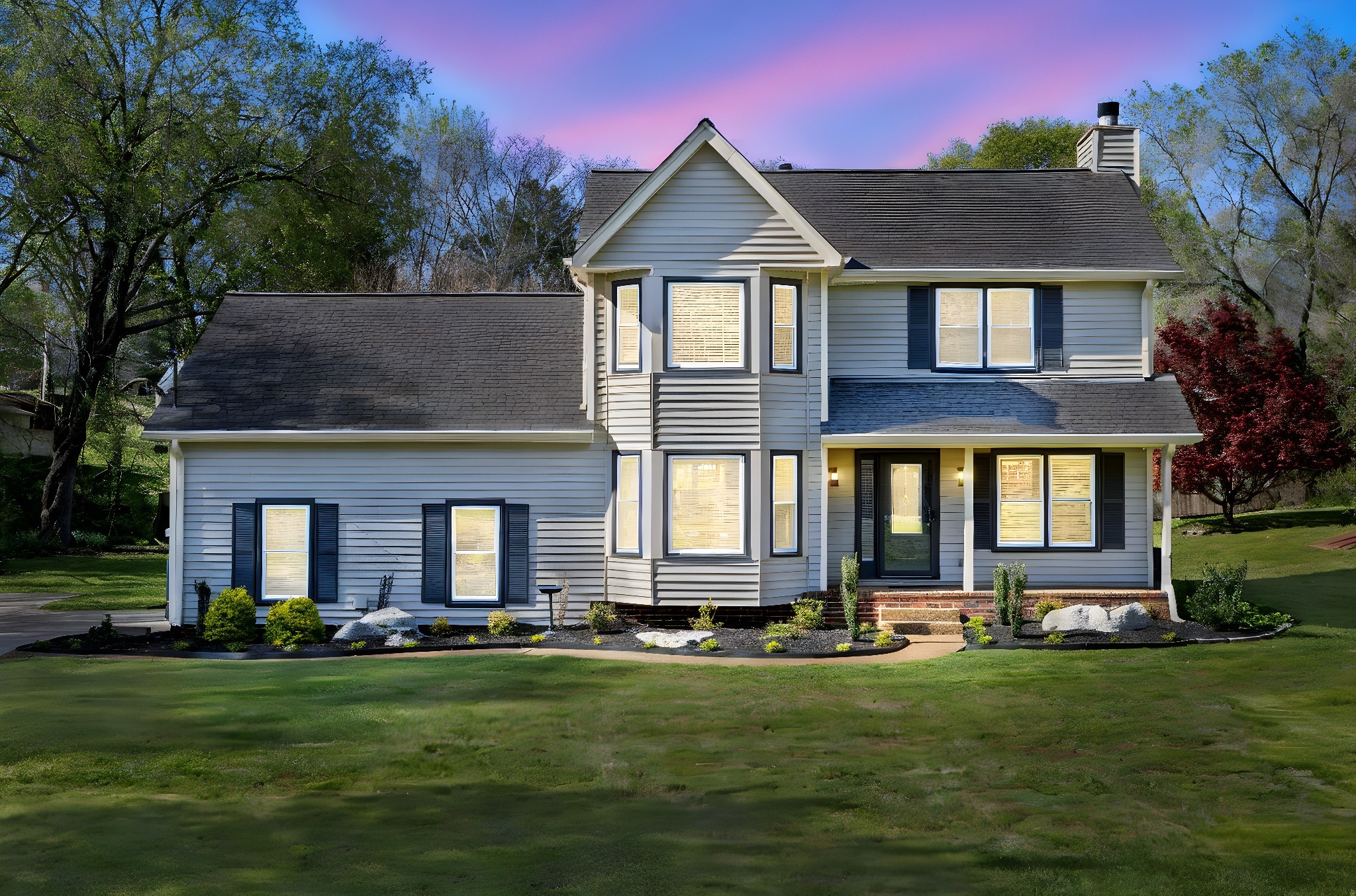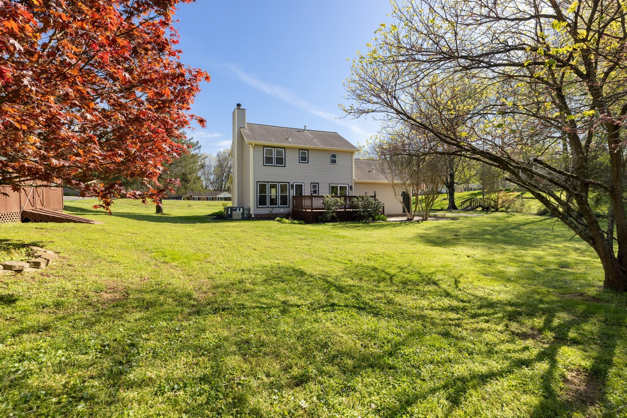 Immaculate Renovation on Over Half an Acre with Bonus Room & Year-Round Creek! Amazing Location 10 minutes to 65 and Downtown Columbia! Welcome to this beautifully renovated 3-bedroom, 2.5-bath home with 2,065 sqft of upgraded living space and a large bonus room above the garage, perfect as a fourth bedroom, home office, or media room with a separate, private staircase. Situated on just over half an acre with new landscaping with mature trees and a serene year-round creek, this property offers the perfect blend of modern updates and natural charm. Renovation features refinished hardwoods, fresh new paint throughout, all bathrooms renovated, new flooring upstairs, lighting throughout. Brand new kitchen with eat in area including custom kitchen cabinets, granite countertops, backsplash, stainless steel appliances, lighting, sink, and more! Primary bedroom features two closets and an oversized custom shower in the primary. Enjoy peaceful mornings on the covered front porch, entertain on the spacious back deck and patio, and take in the sights and sounds of the private creekside setting with a charming footbridge. Walk-in shed remains. Full renovation list in the media section.
