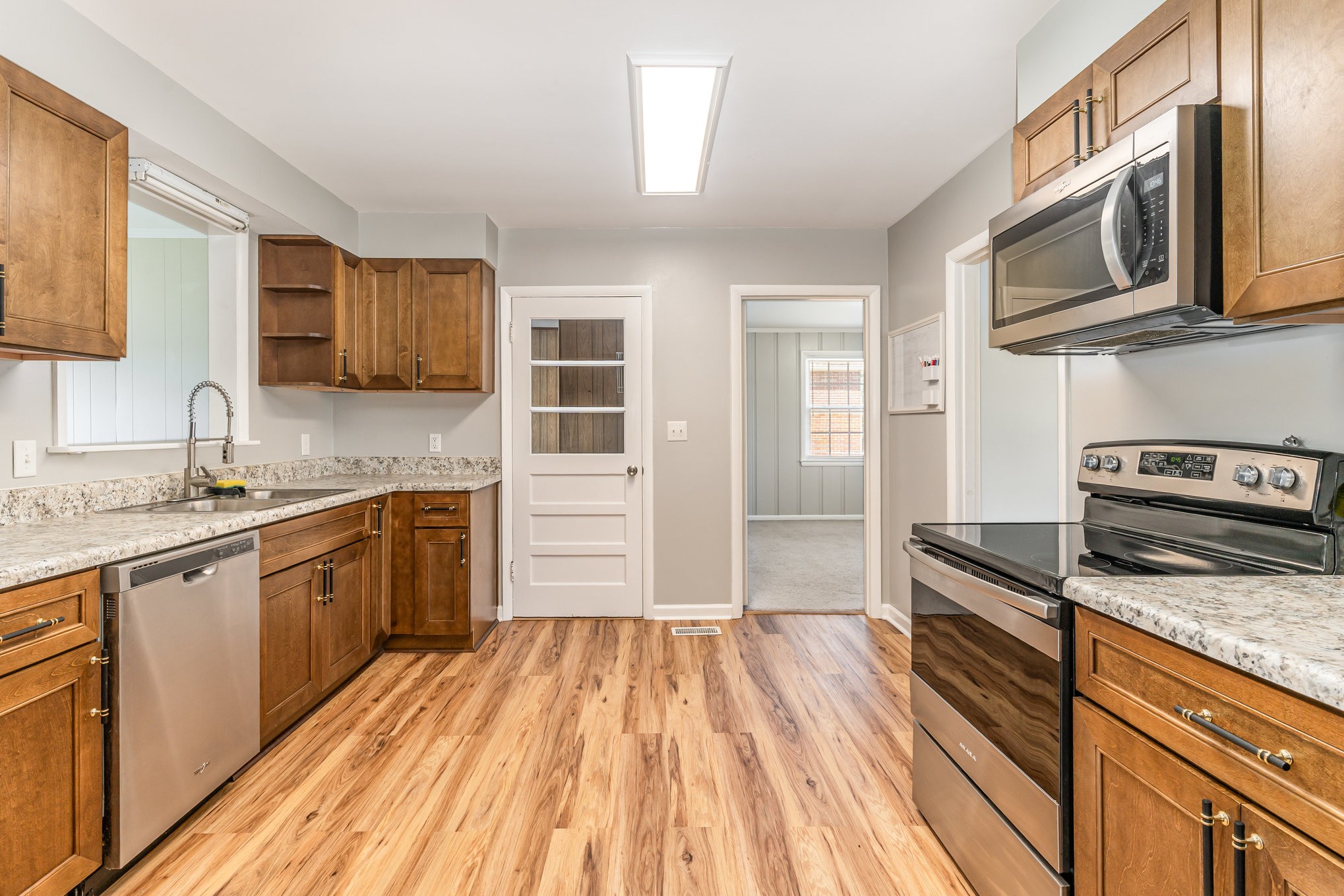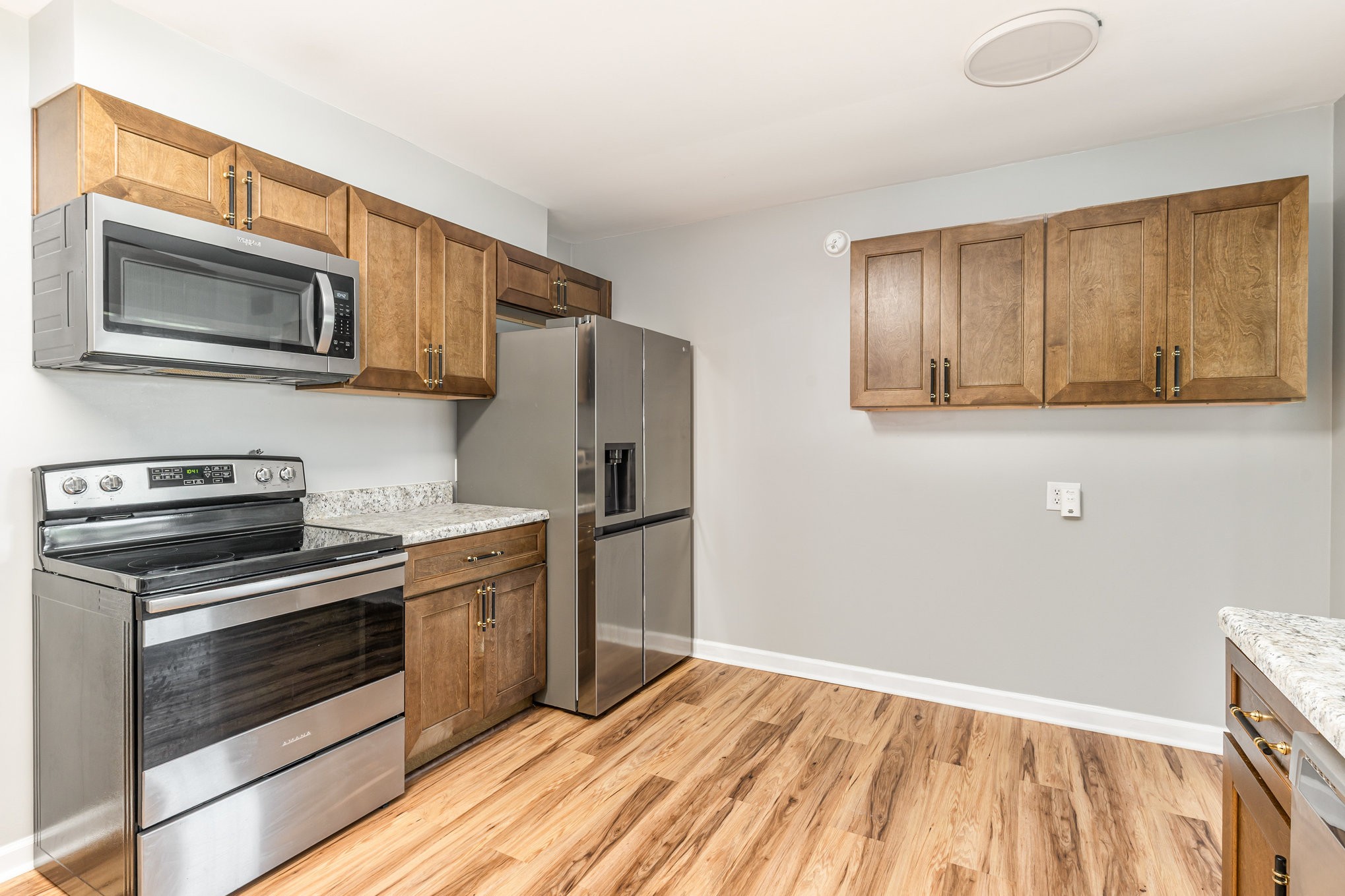 - AppliancesElectric Oven, Built-In Electric Range, Dishwasher, Dryer, Microwave, Refrigerator, Stainless Steel Appliance(s), Washer
