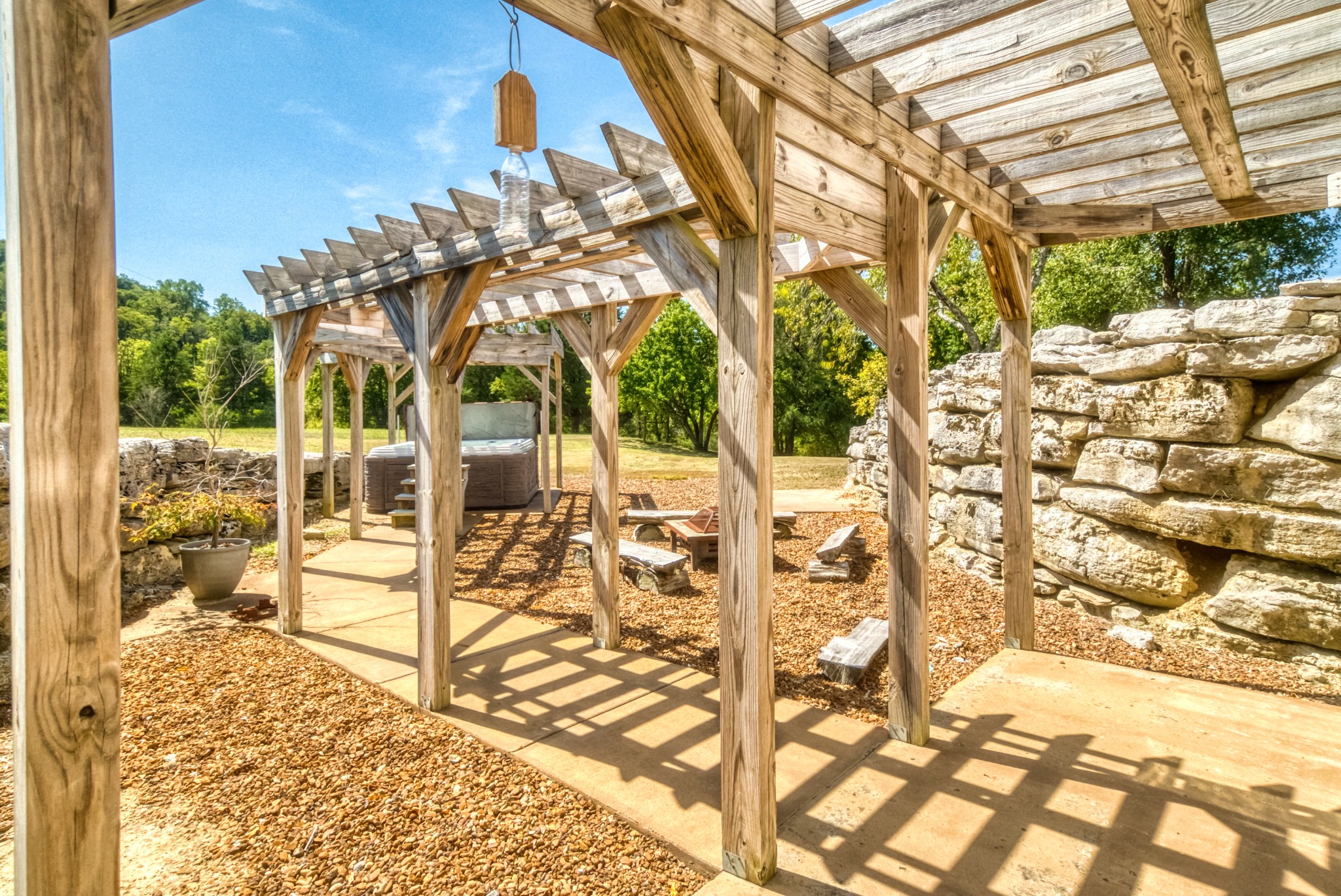 Step outside to a private outdoor retreat complete with a pergola, hot tub, fire pit, and plenty of room for entertaining under the stars. Approximately one acre is already fenced with wire, and the land offers ample opportunity for farming, recreation, and peaceful living.