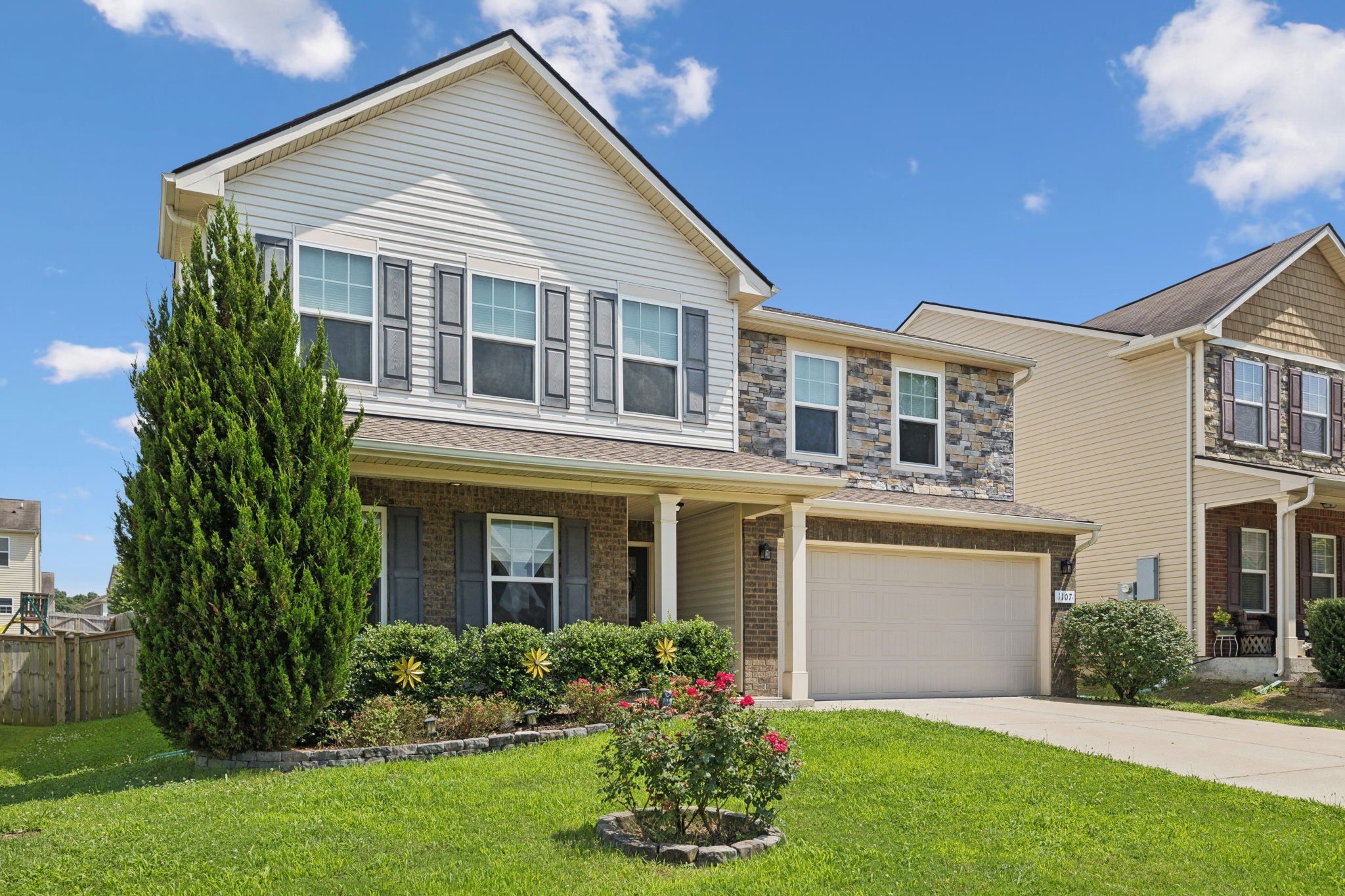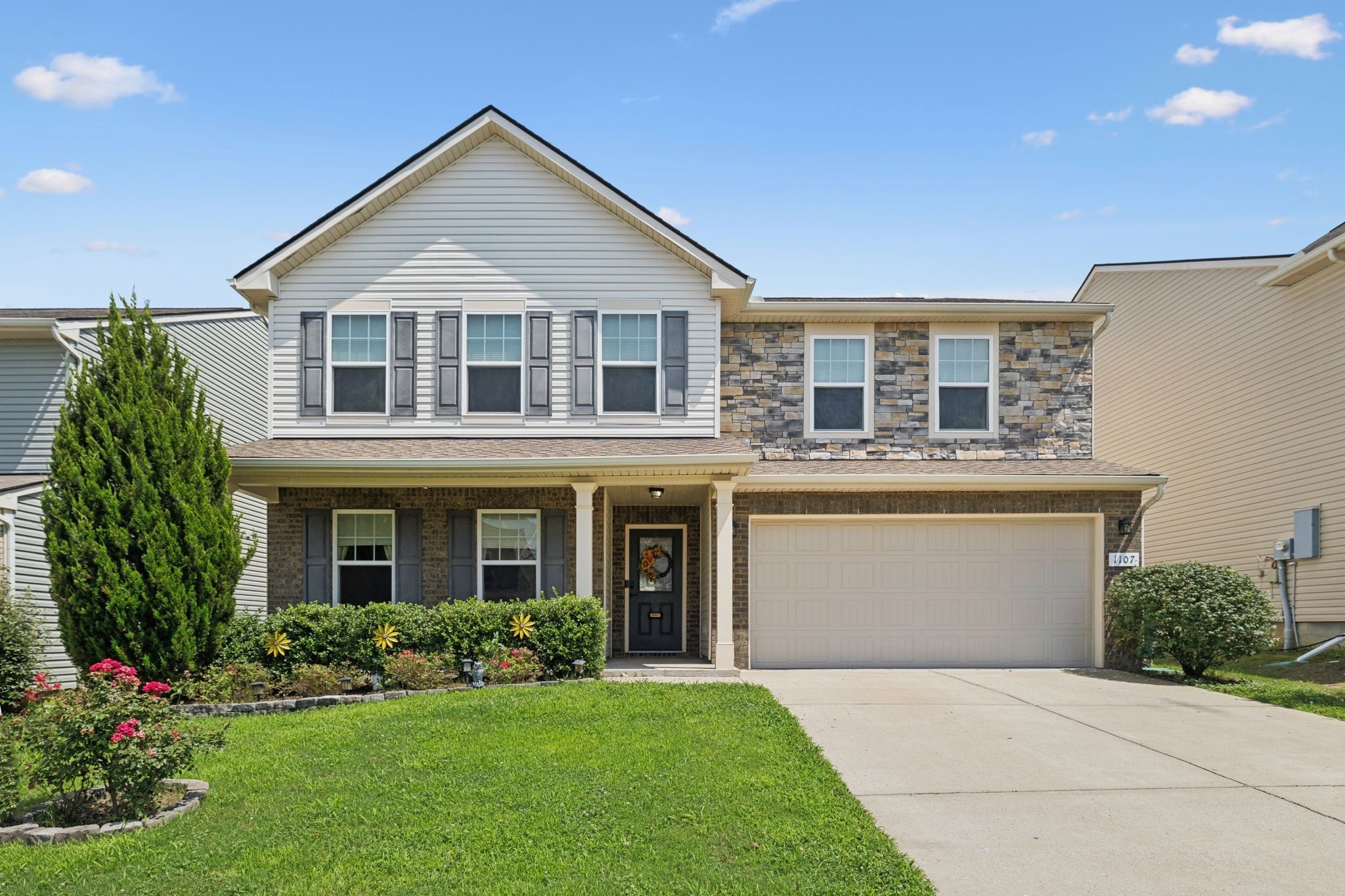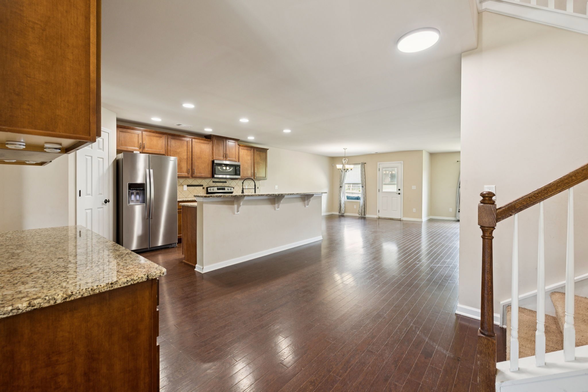 This 5 bedroom open concept beauty offers plenty of space for everyone Downstairs features impressive kitchen w/granite, island and coffee bar. Downstairs bedroom can be office/study, living room, Formal dining room, separate breakfast nook. Upstairs offers 20x13 primary suite, 3 additional bedrooms, rec room. Fenced back yard with covered patio. Community pool, clubhouse, walking trail, Wilson County Schools. Some Photos have been staged to provide perspective.
