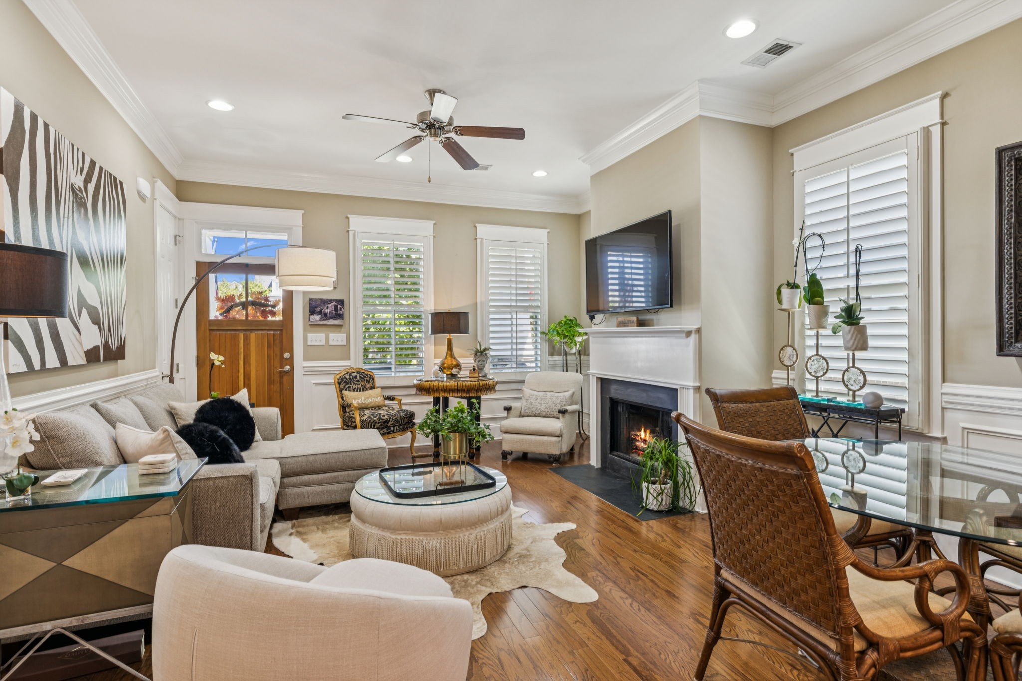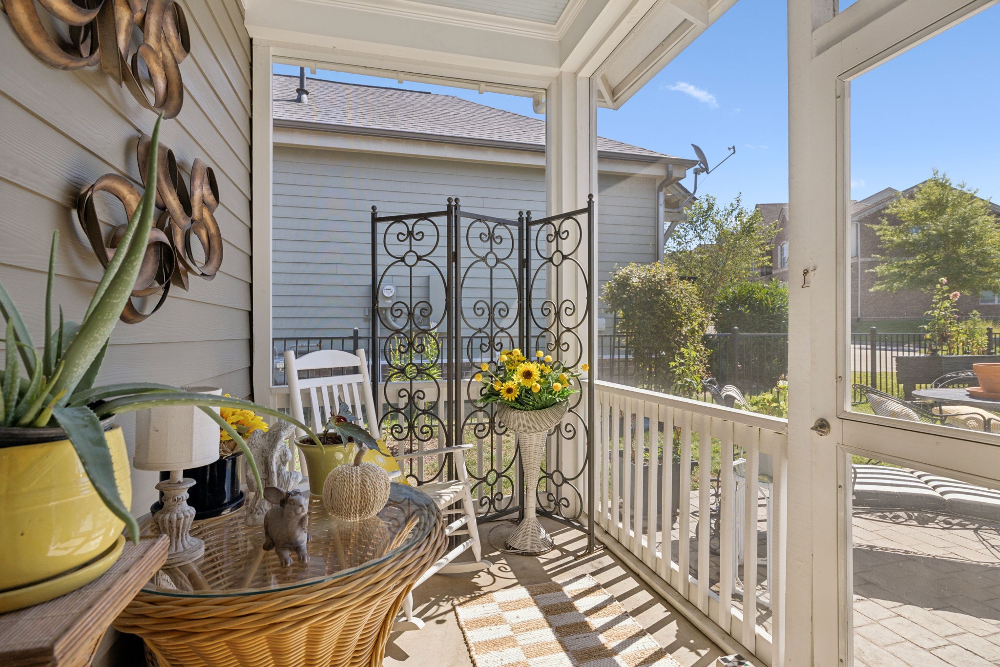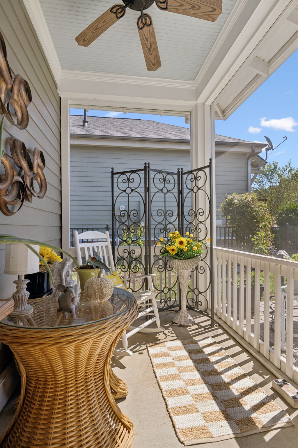One Level 2 bedroom / 2 bathroom single family home in Tollgate Village ~ 2 car garage w/ extra long driveway ~ Fenced yard w/ brick pillars ~ Screened Porch ~ Plantation Shutters ~ Wood Floors ~ Open floorplan ~ Firepace w/ gas logs ~ Spacious kitchen w/ island & pantry ~ Under cabinet lights ~ Stainless appliances ~ Granite counters ~ Drop Zone ~ Laundry Room ~ Direct access from garage into home w/ no steps ~ Generous front porch ~ Gas heat ~ Home situated on cul-de-sac & faces large green space ~ Fabulous community w/ retails shops, restaurants, coffee, clubhouse, tennis courts, pools, volleyball, fitness center, dog park, sidewalks, buried utilities & walking trails.