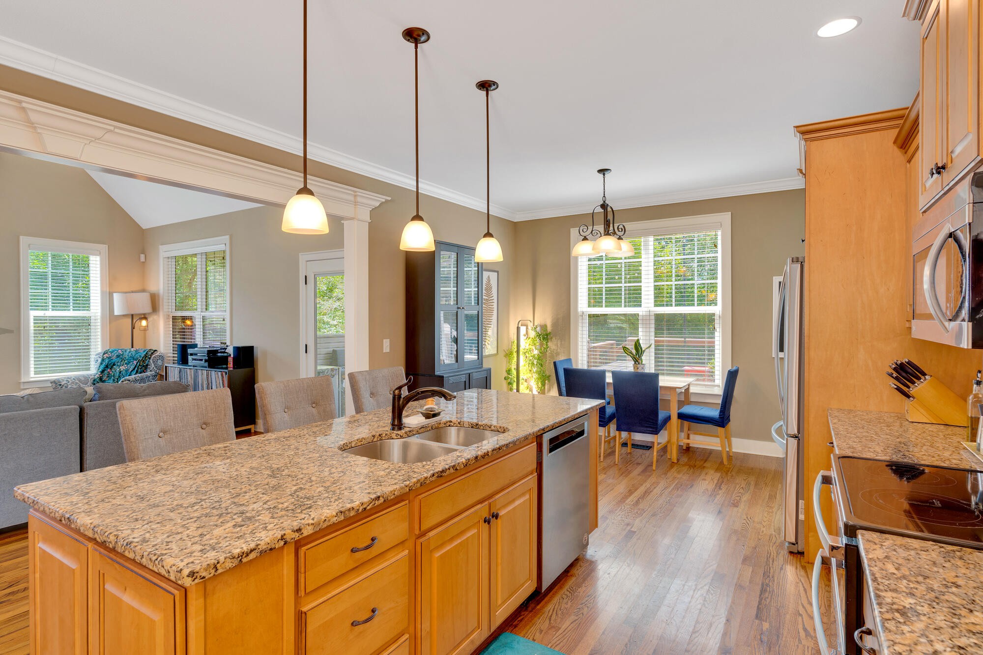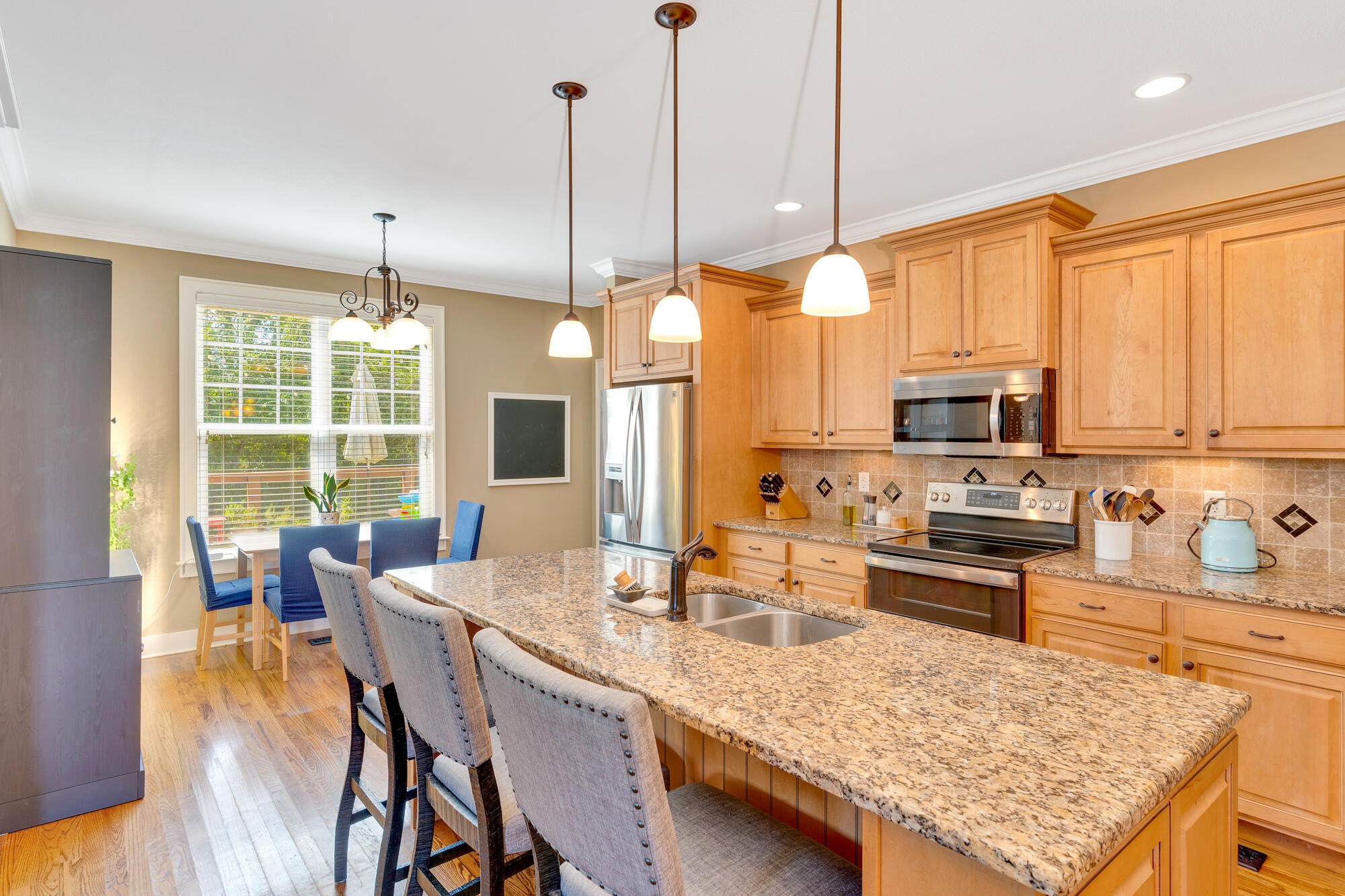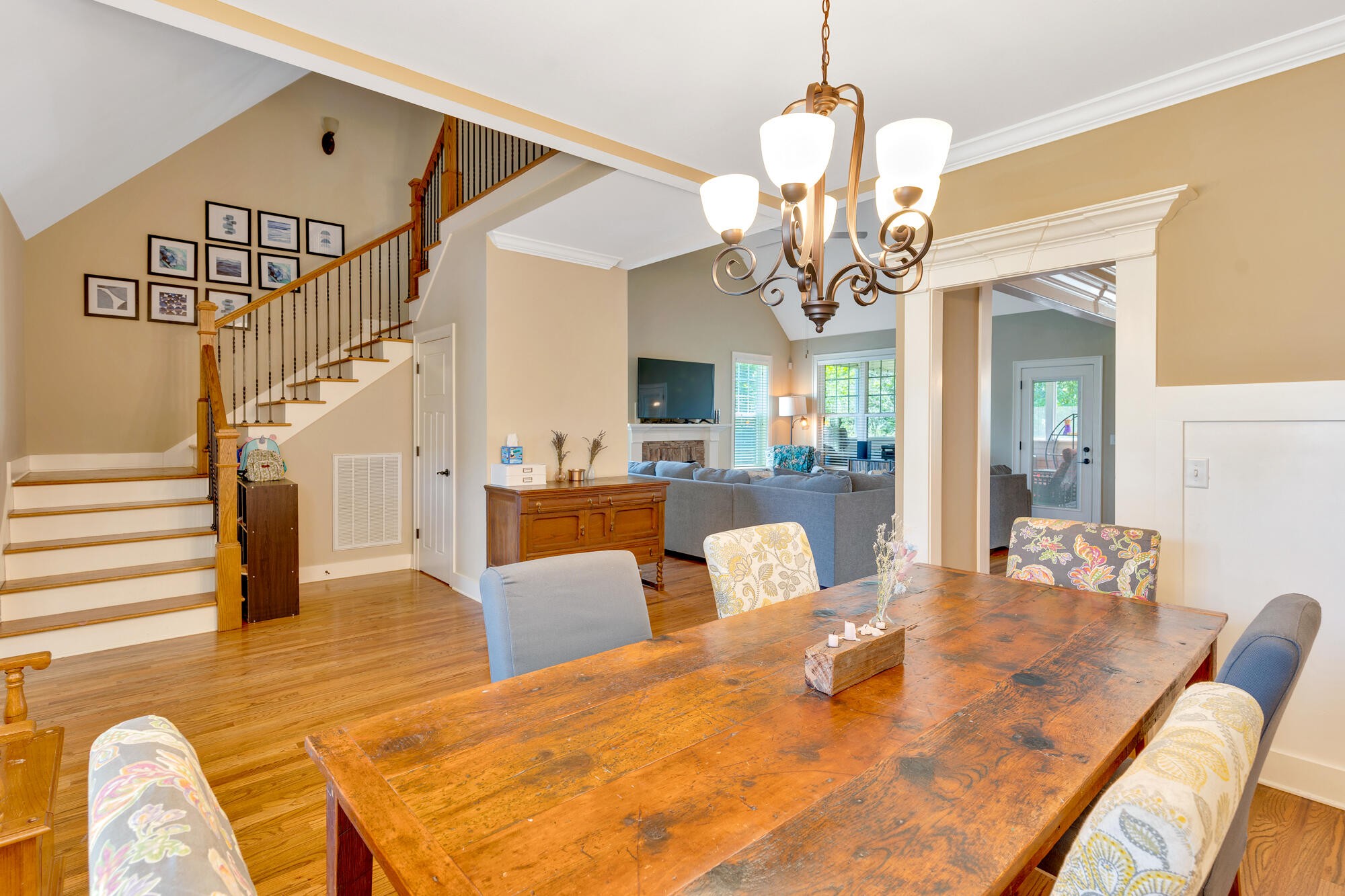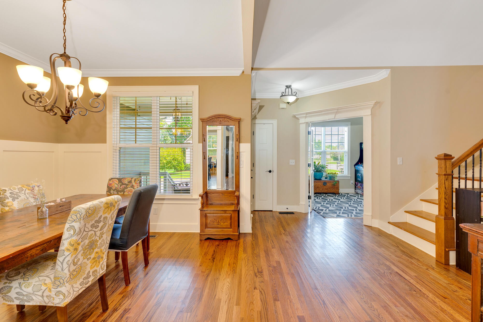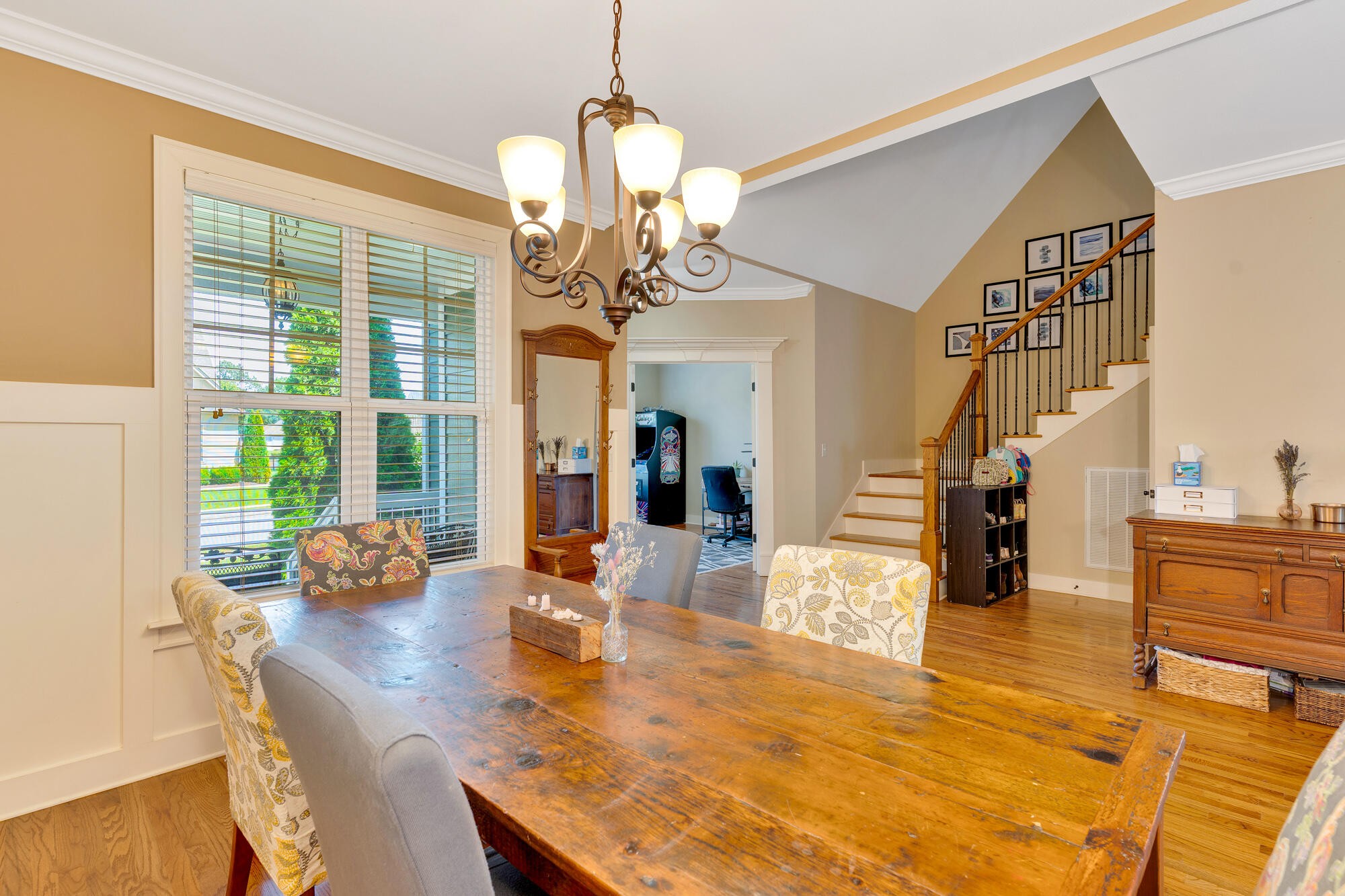 Upstairs, you'll find three additional bedrooms and a full bath, providing plenty of room for family and guests. The neighborhood is perfect for walkers with sidewalks throughout, and the home is just minutes from grocery stores, dining, shopping, Chester Frost Park, and lake access.